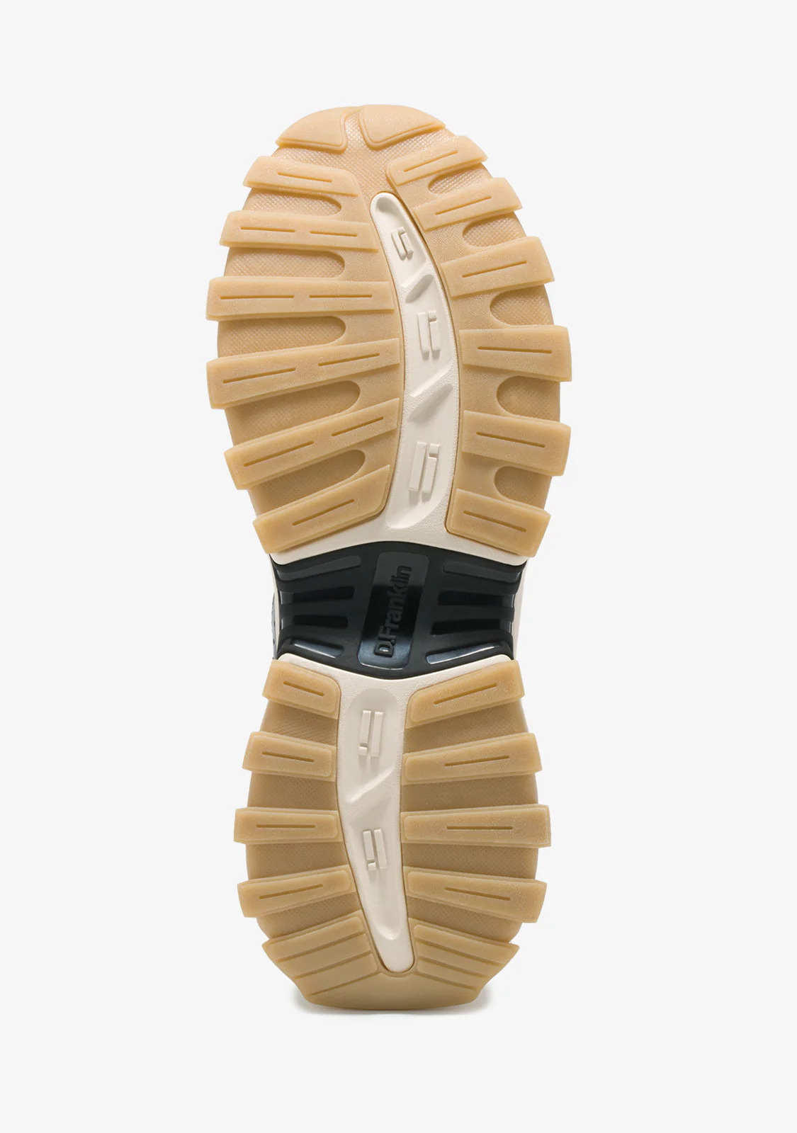 Le 347 Flame Black / Gold di D.Franklin si distinguono per la combinazione di nero e oro brillante, creando una sneaker elegante e sofisticata. Perfetta per chi cerca un design audace con un tocco di lusso.