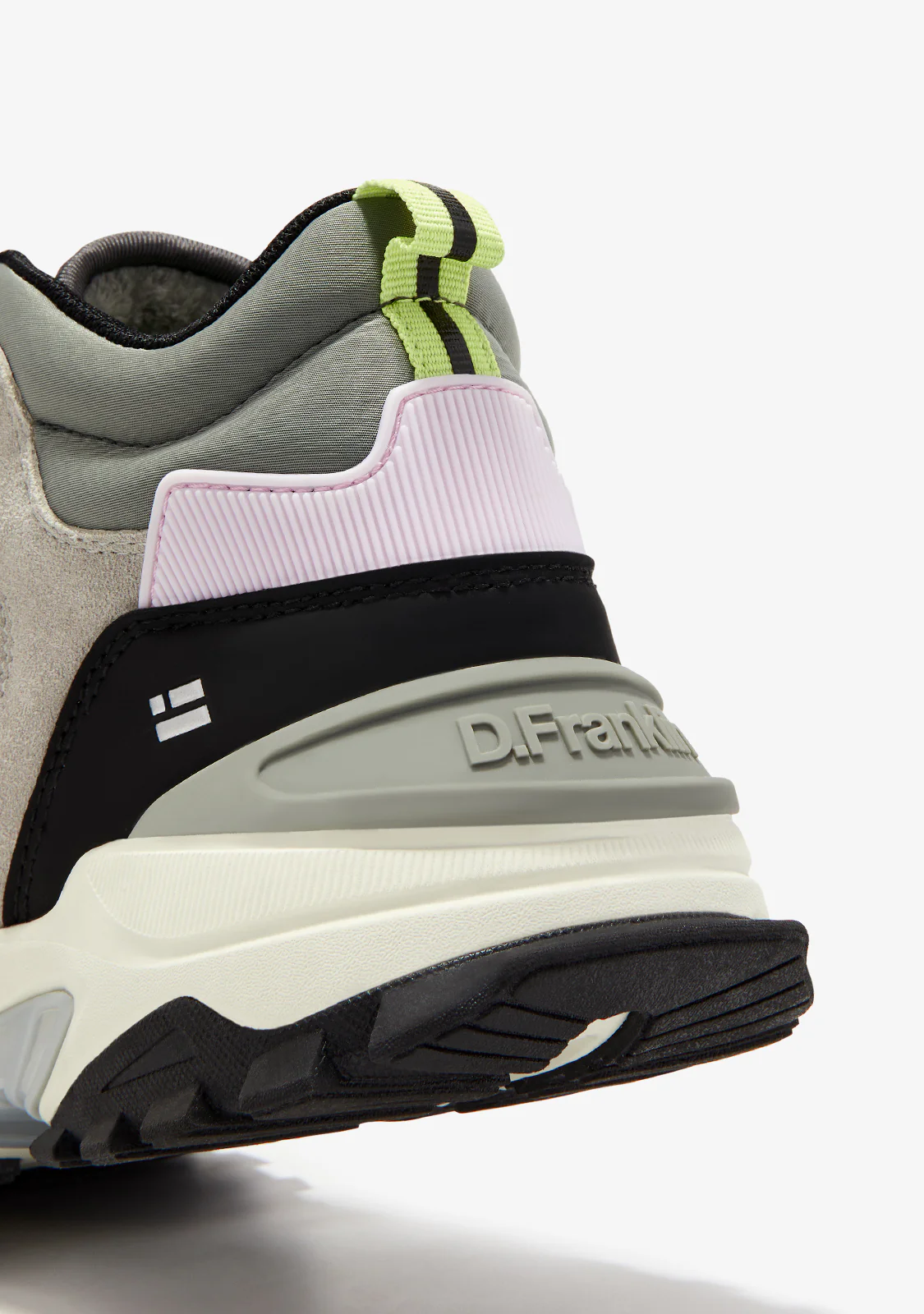 Scarpe da ginnastica stile D.Franklin. Trasformiamo l’estetica dei sentieri in un design aggiornato. Texture, colori e dettagli raffinati si fondono per creare un’estetica contrastante.