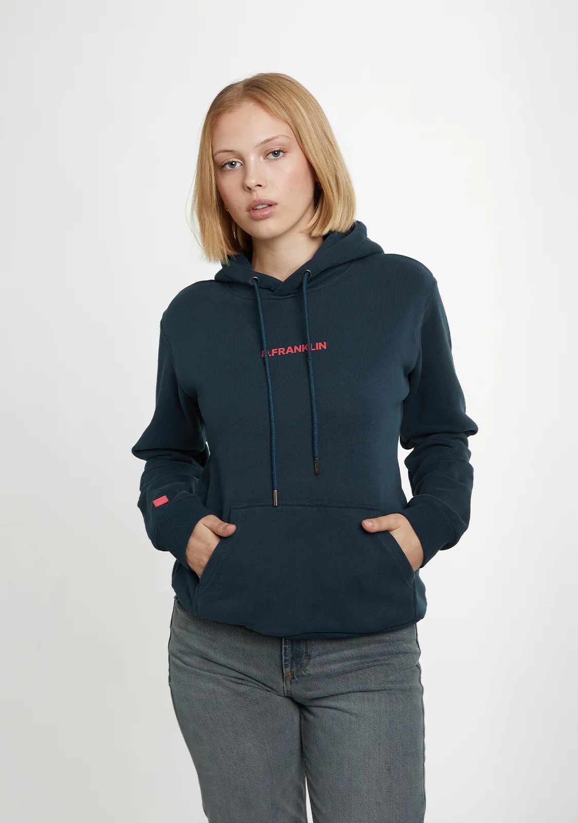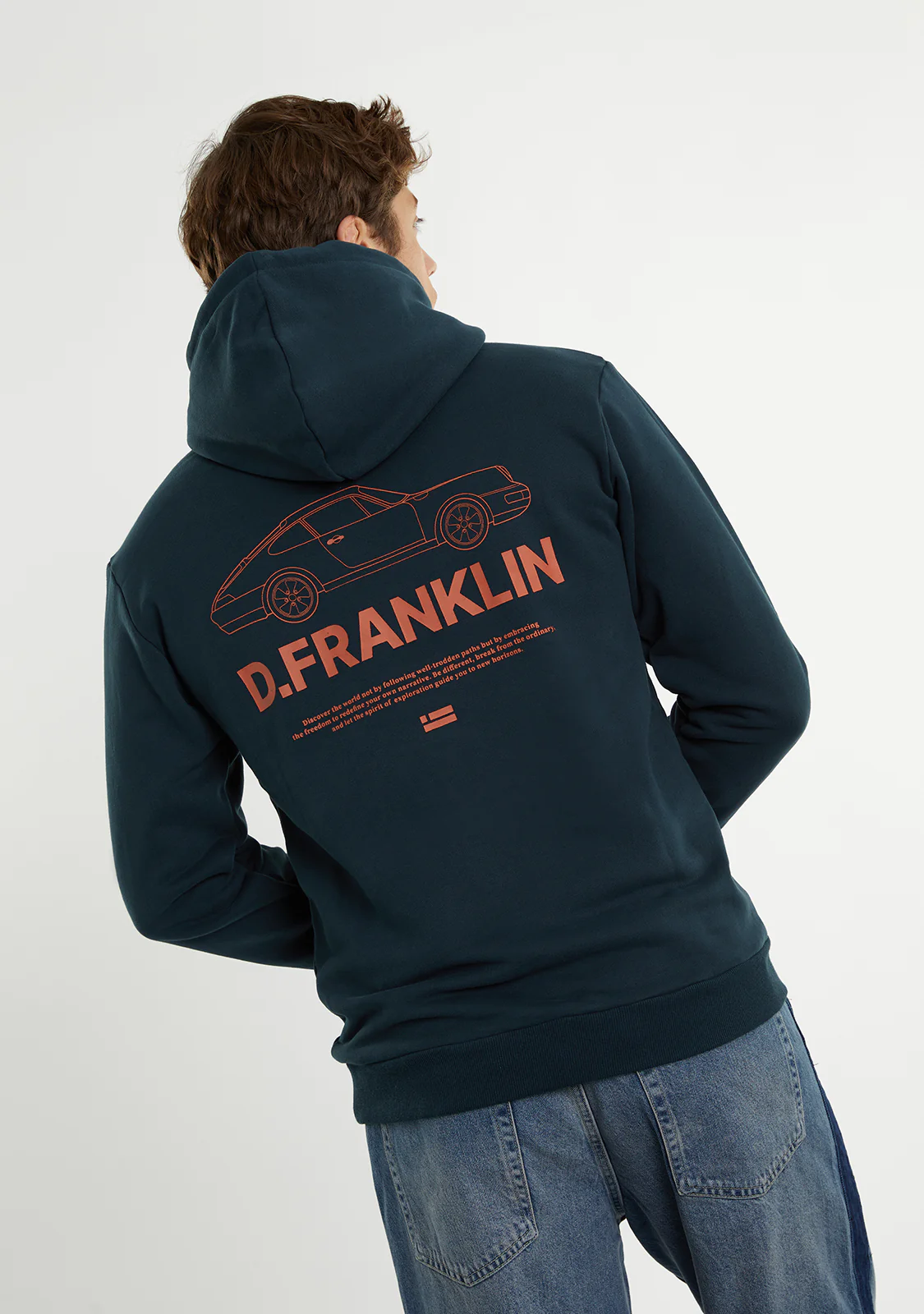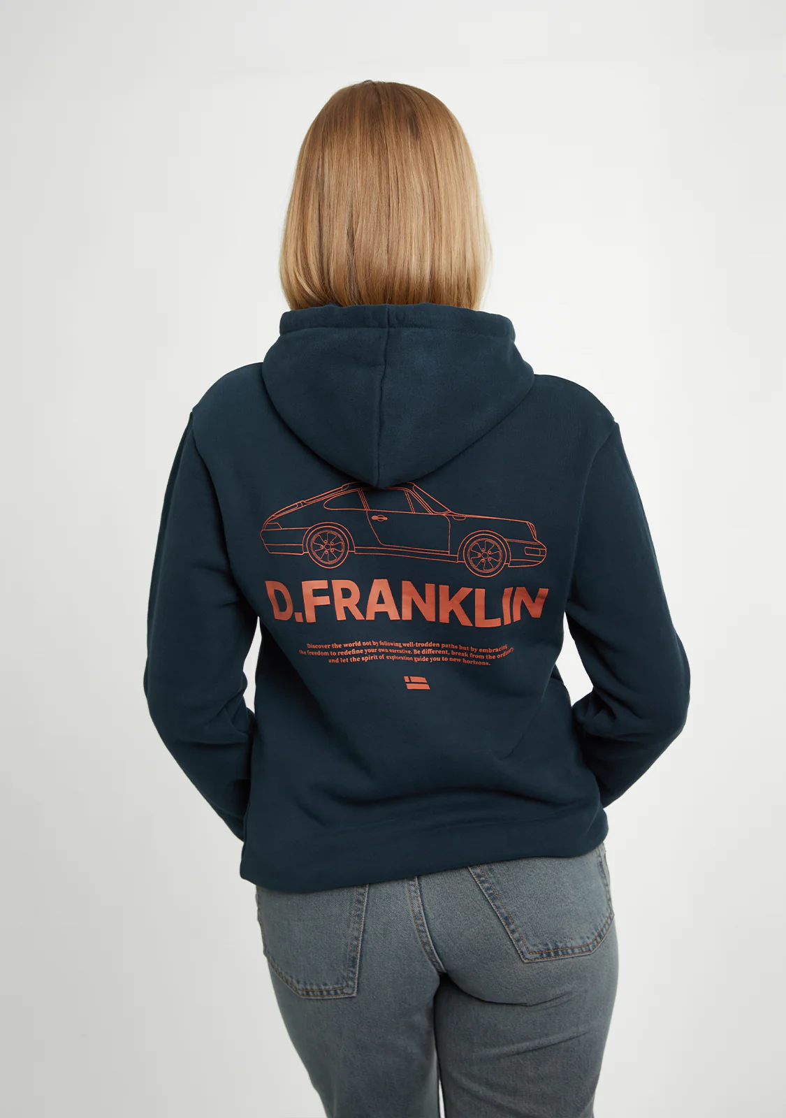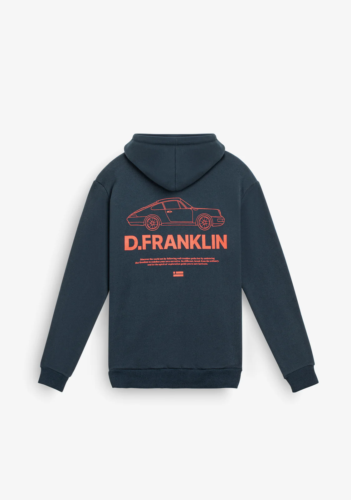Questa felpa grigia con cappuccio presenta il logo D.Franklin sul davanti in rosso a contrasto. Il retro della felpa ha un design esclusivo dello stesso colore.