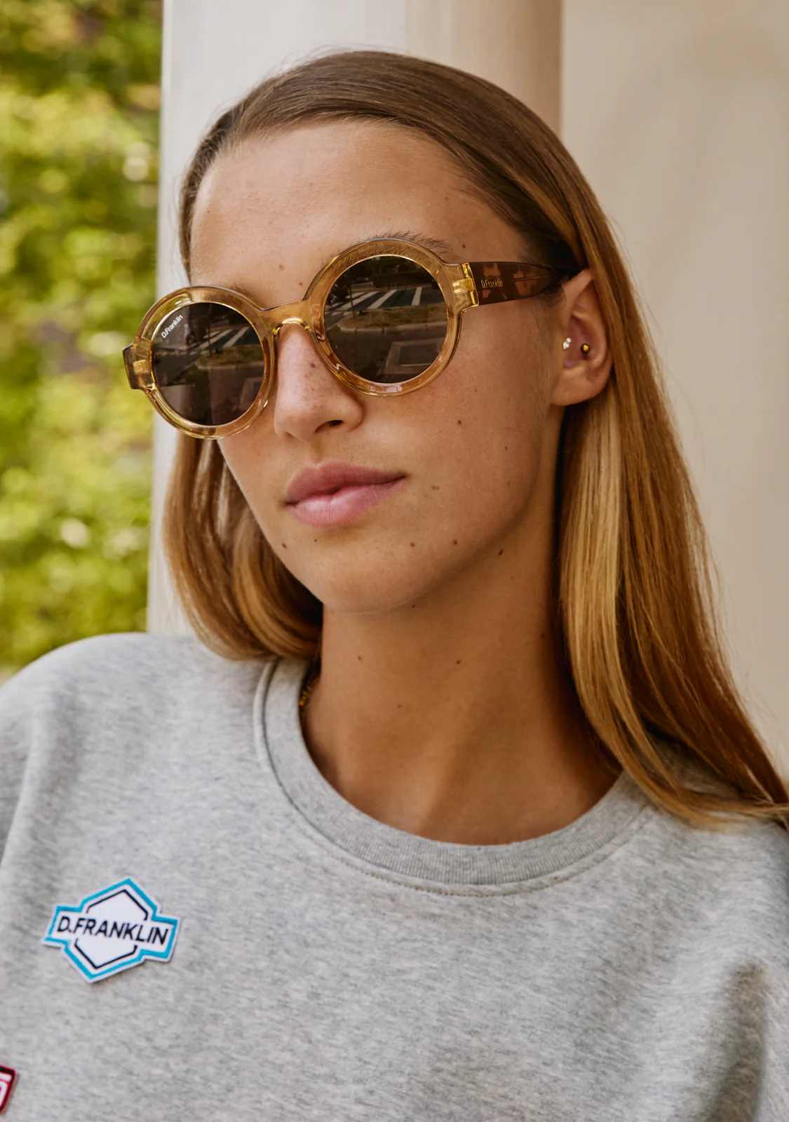 Occhiali da sole a montatura rotonda con una finitura trasparente in toni di marrone. Un pezzo distintivo per i tuoi outfit più audaci. Il nostro modello 913 ha i dettagli caratteristici del marchio D.Franklin, il logo inciso sulle tempie e l’emblema sulla lente. La larghezza della lente è di 48 mm e la parte frontale […]