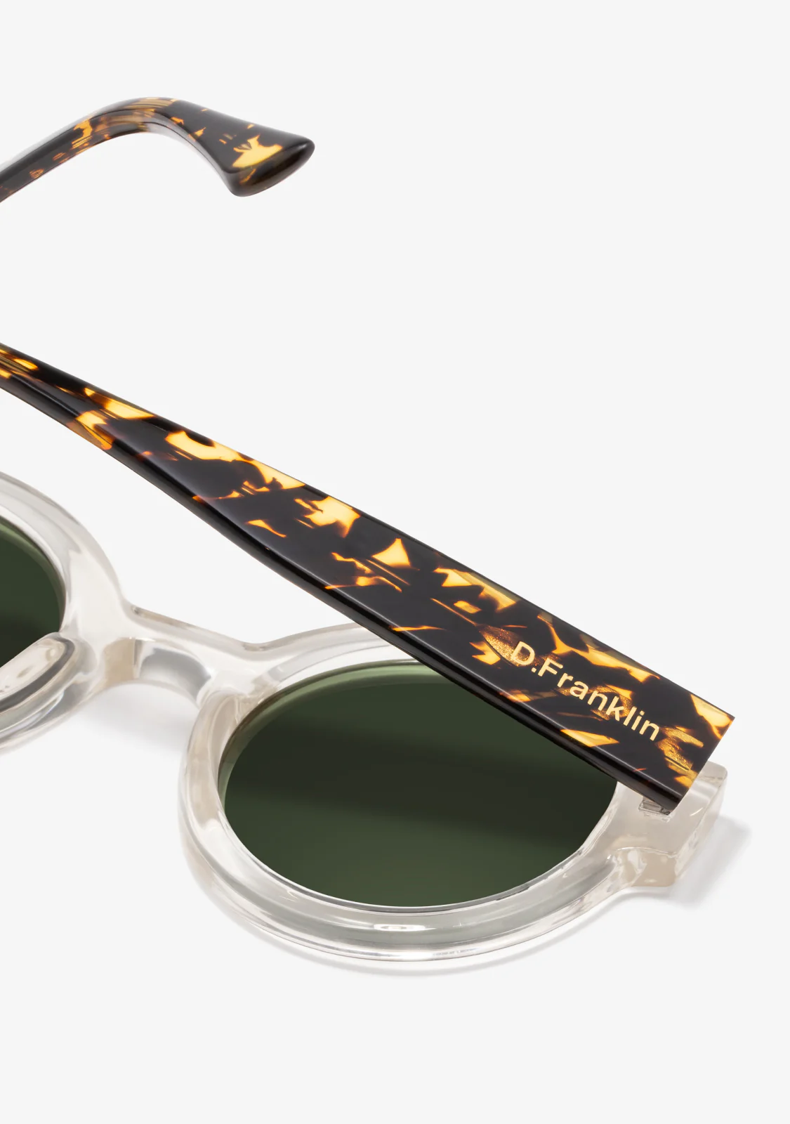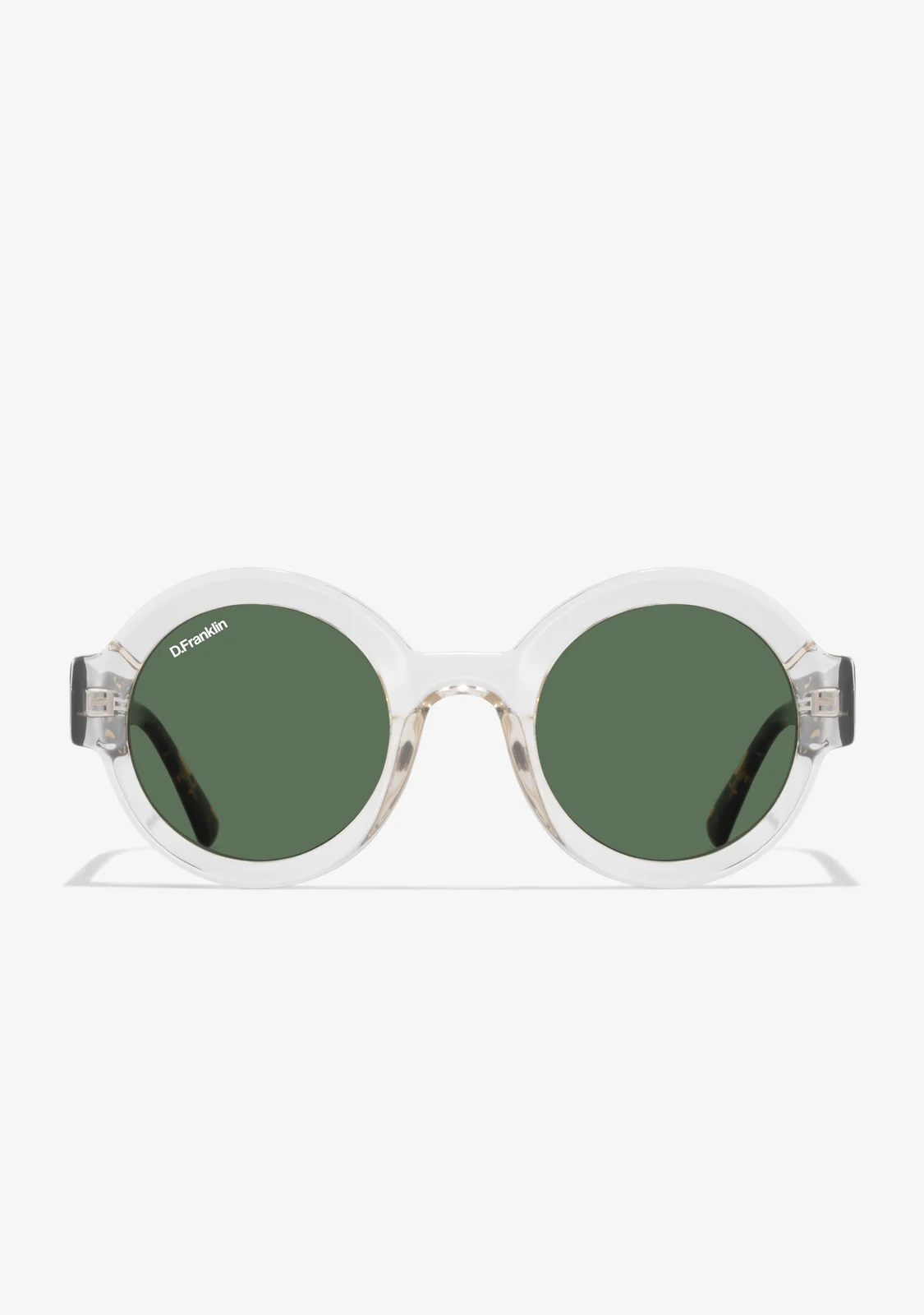 Occhiali da sole con montatura rotonda e finitura trasparente in tonalità di verde. Un pezzo distintivo per i tuoi outfit più audaci. Il nostro modello 913 ha i dettagli caratteristici del marchio D.Franklin, il logo inciso sulle aste e l’emblema sulla lente. La larghezza della lente è di 48 mm e la parte frontale è […]