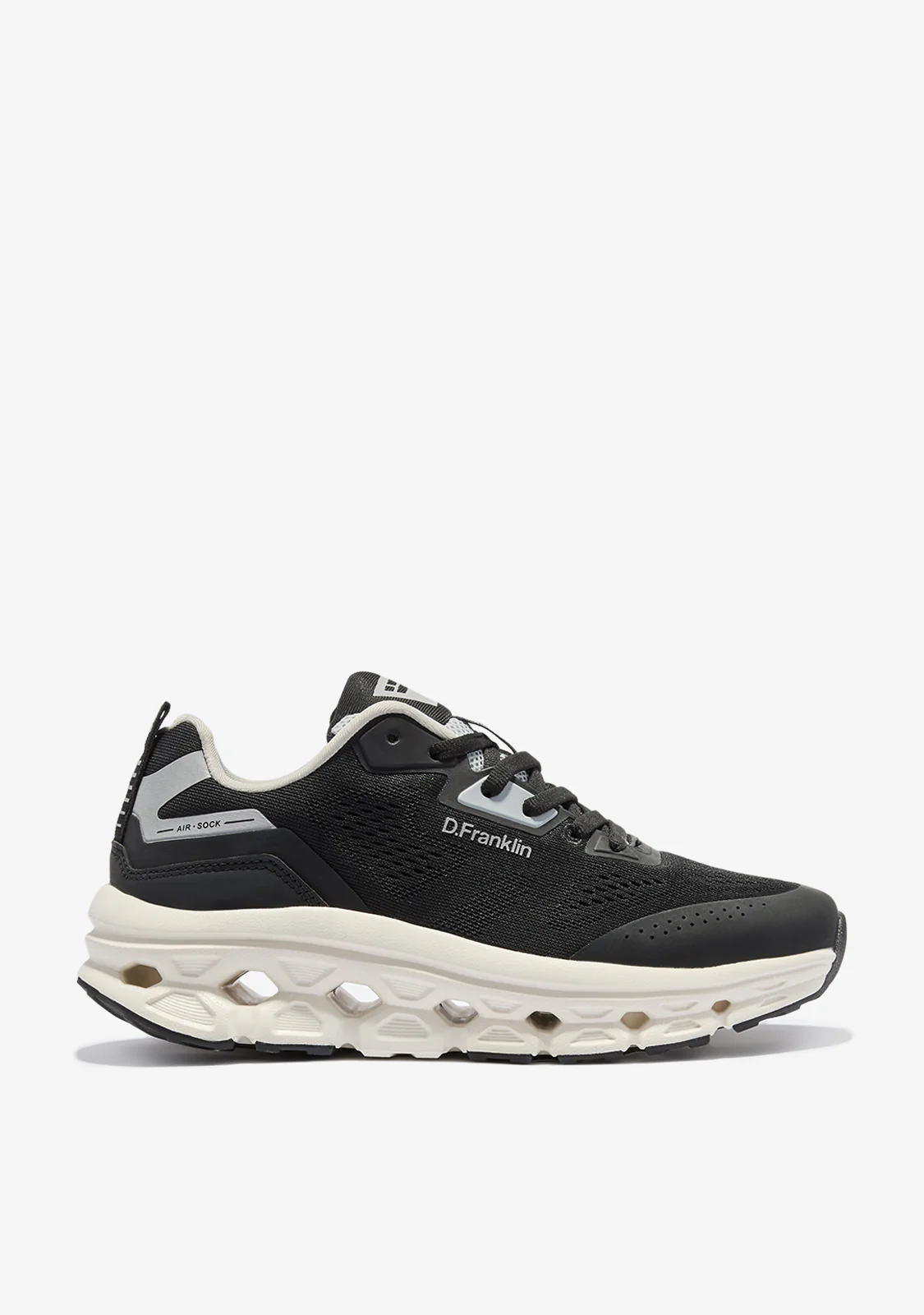 Le Aero Dual Black / Off White di D.Franklin sono progettate per la corsa e l’allenamento quotidiano, con una vestibilità regolare e chiusura con lacci per una tenuta sicura. La suola piattaforma offre un sollevamento stabile, supportato dalla Validazione del Comfort Biomeccanico nella Corsa.