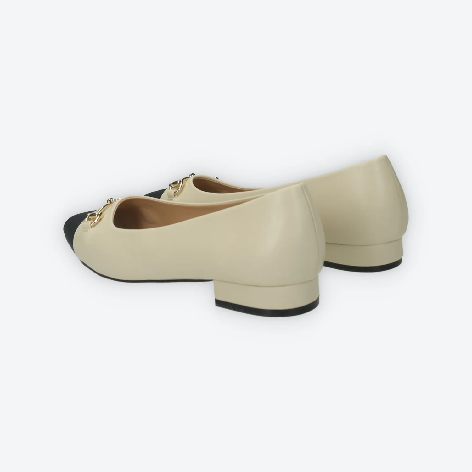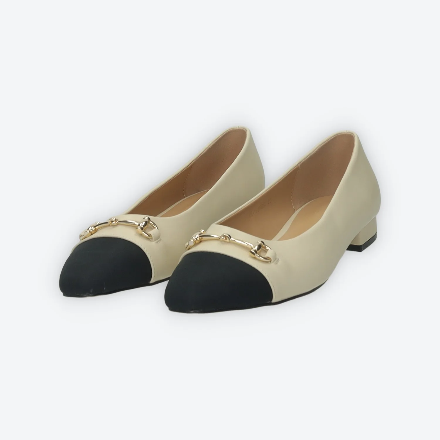 Ballerine a punta in ecopelle con morsetto sul davanti.Dettaglio contrasto sulla punta del piede.