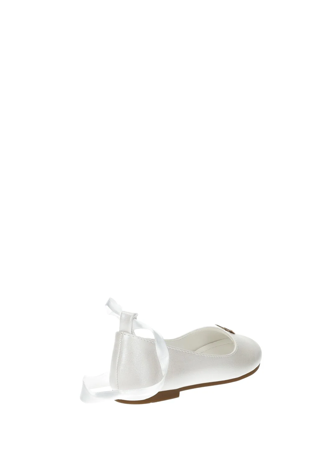 Ballerine effetto pelle con nastro e fondo in gomma.