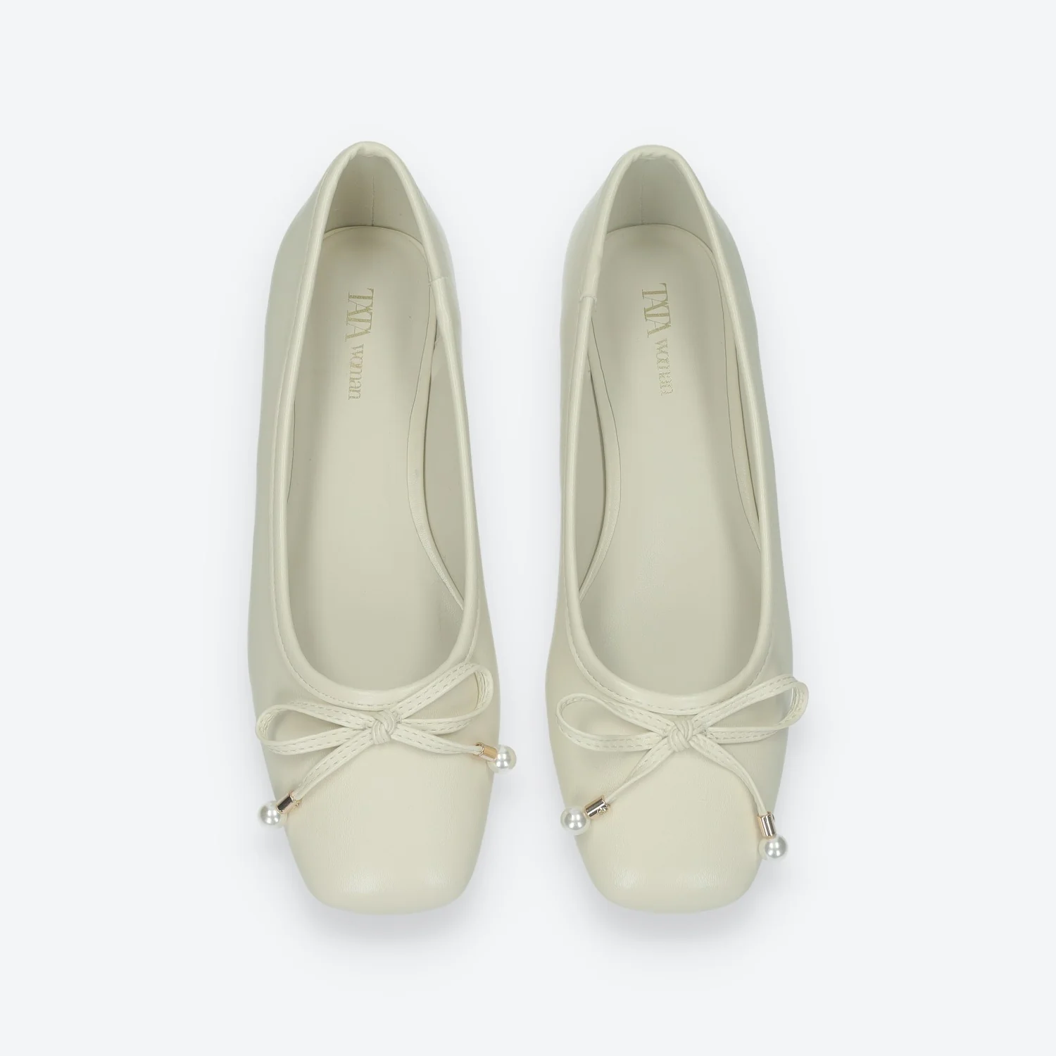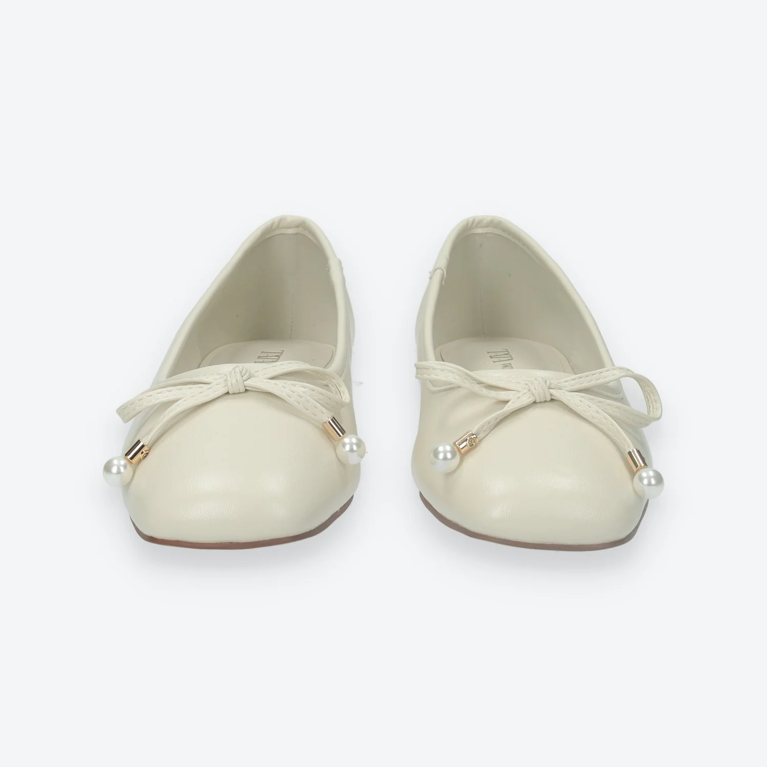 Ballerine a punta rotonda con dettaglio sulla parte anteriore.