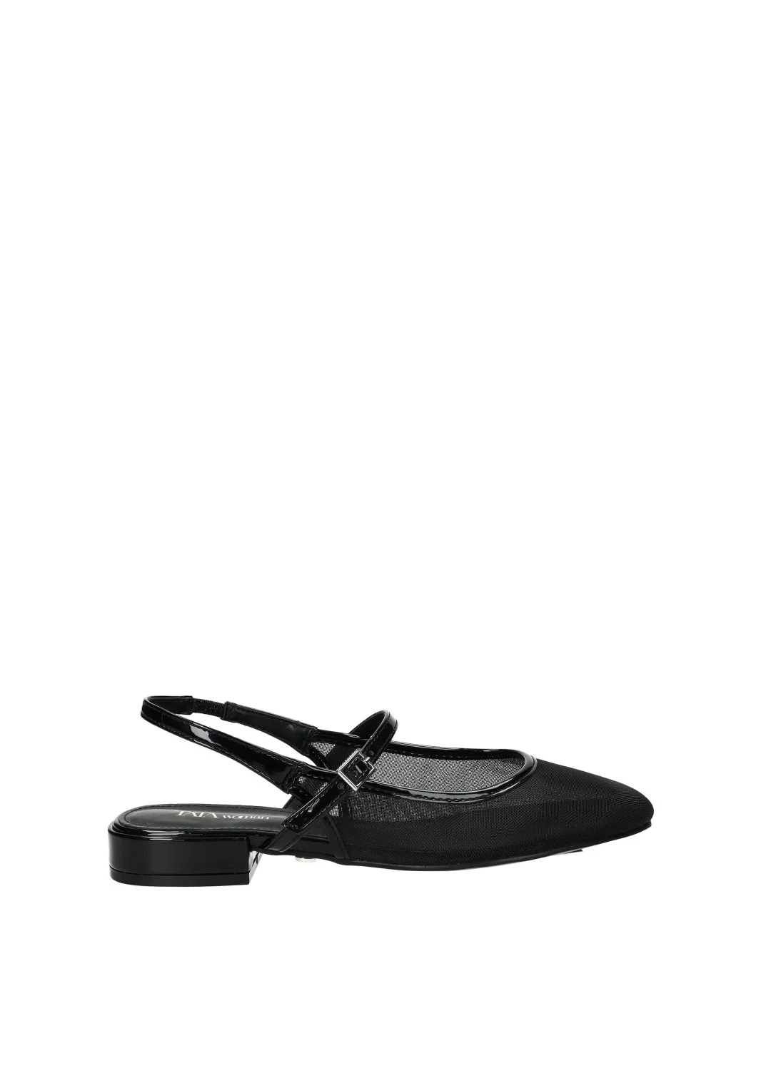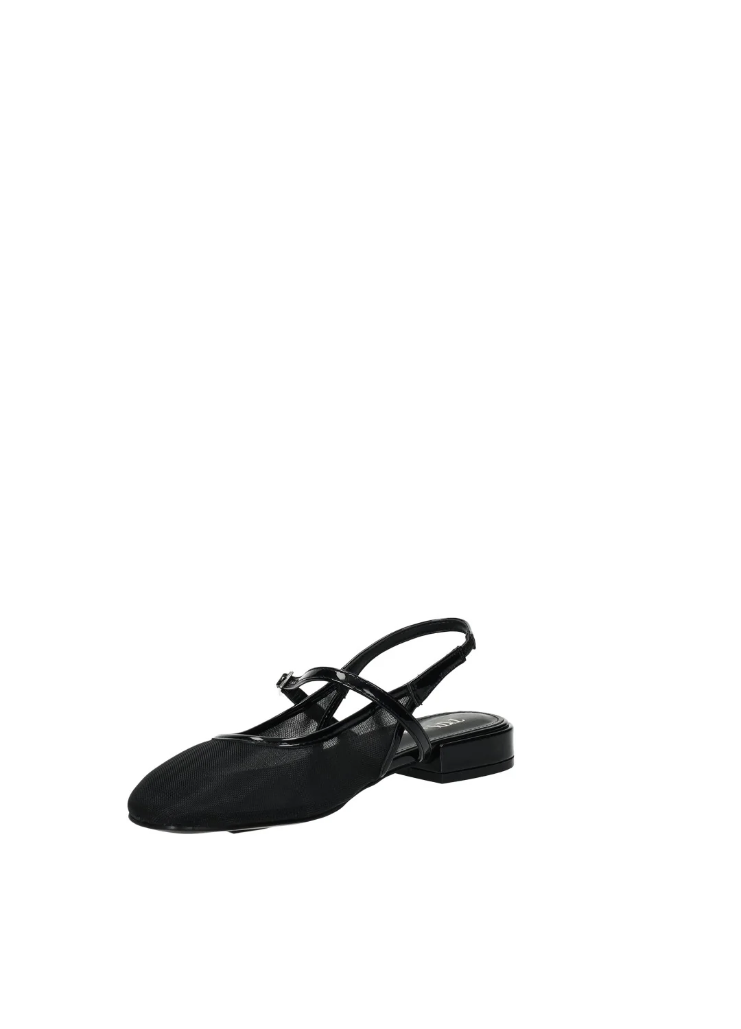 Ballerine in vernice e rete con fondo in gomma.