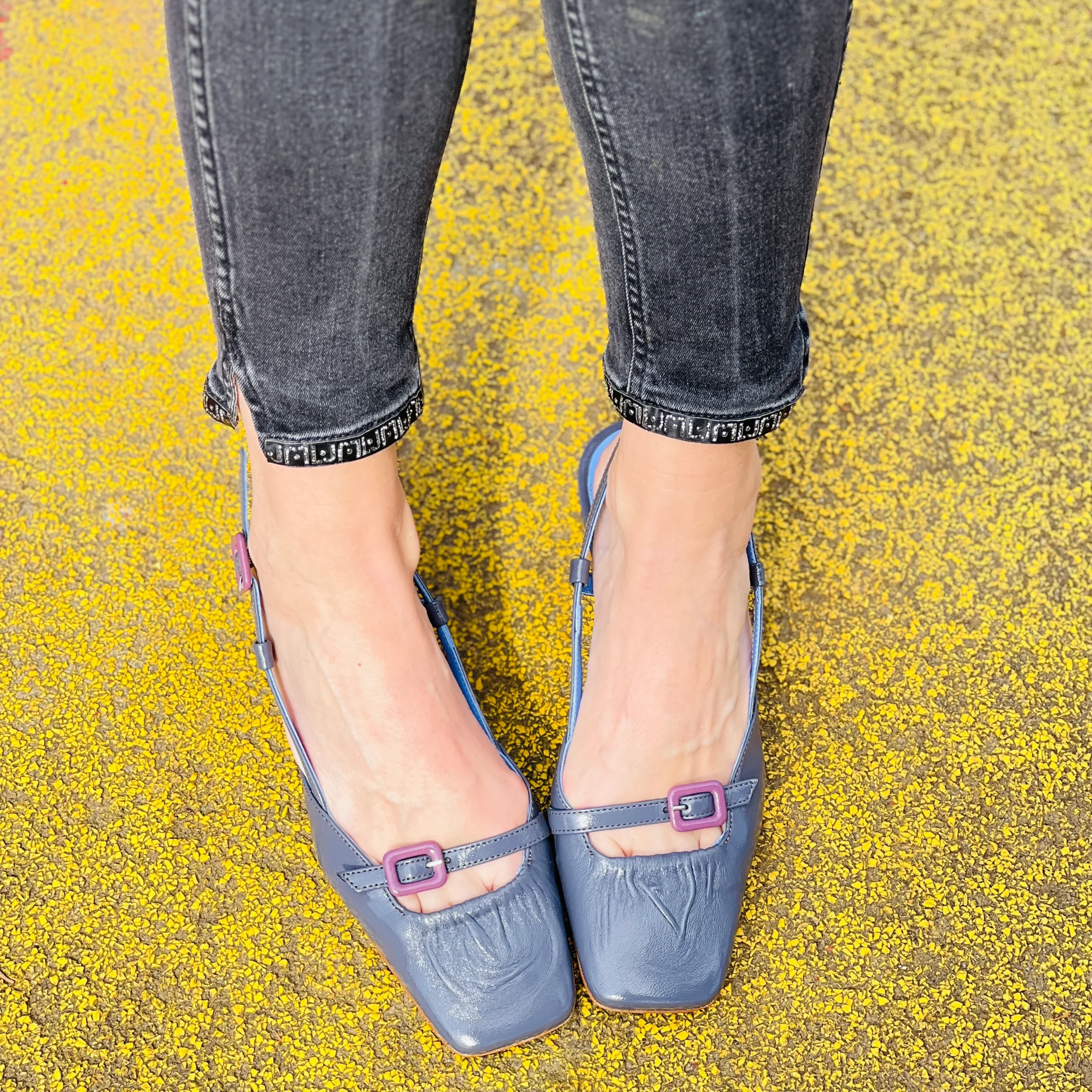 Babu Navy ballerina in nappa blu tacco 1.5 artigianale
