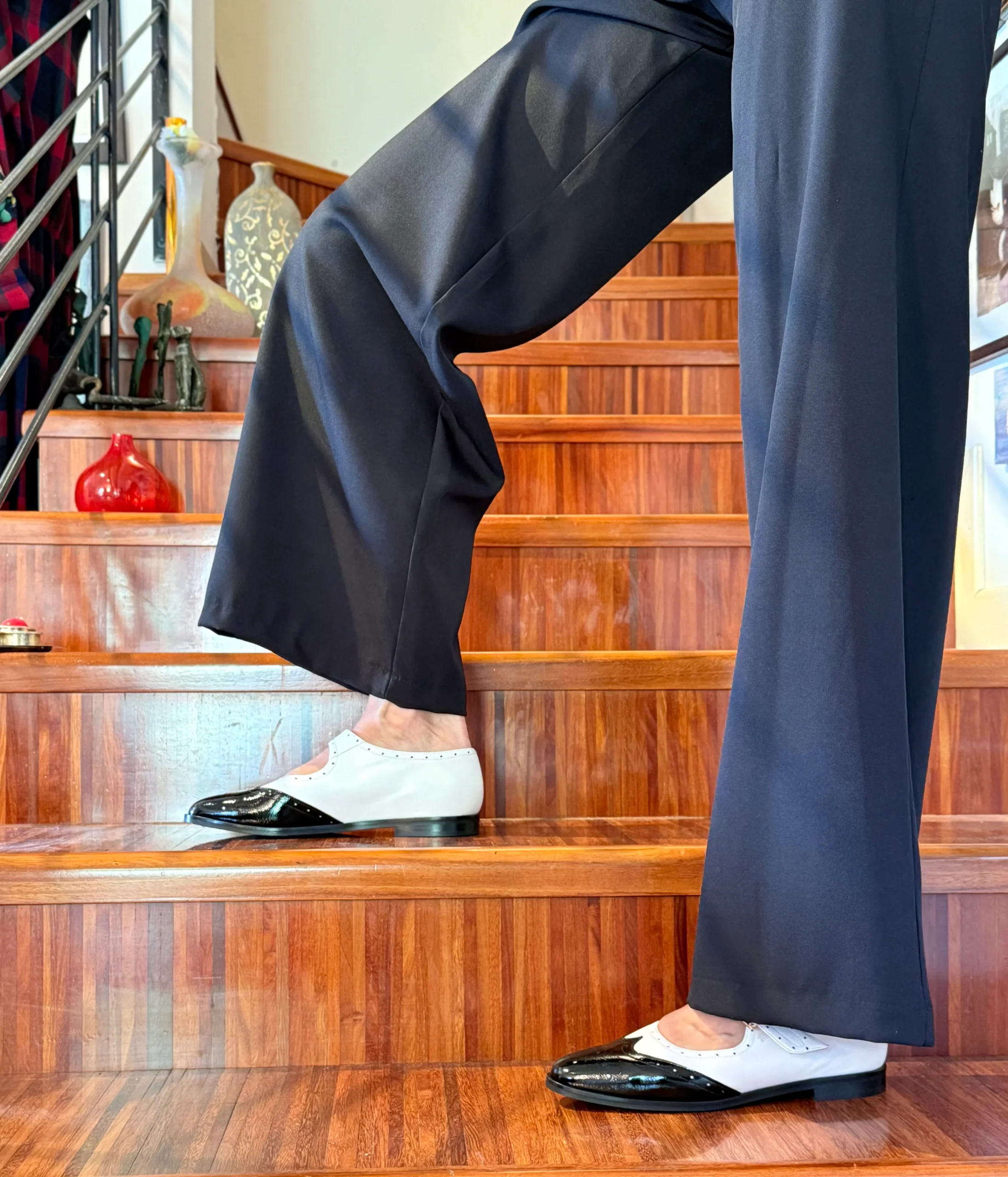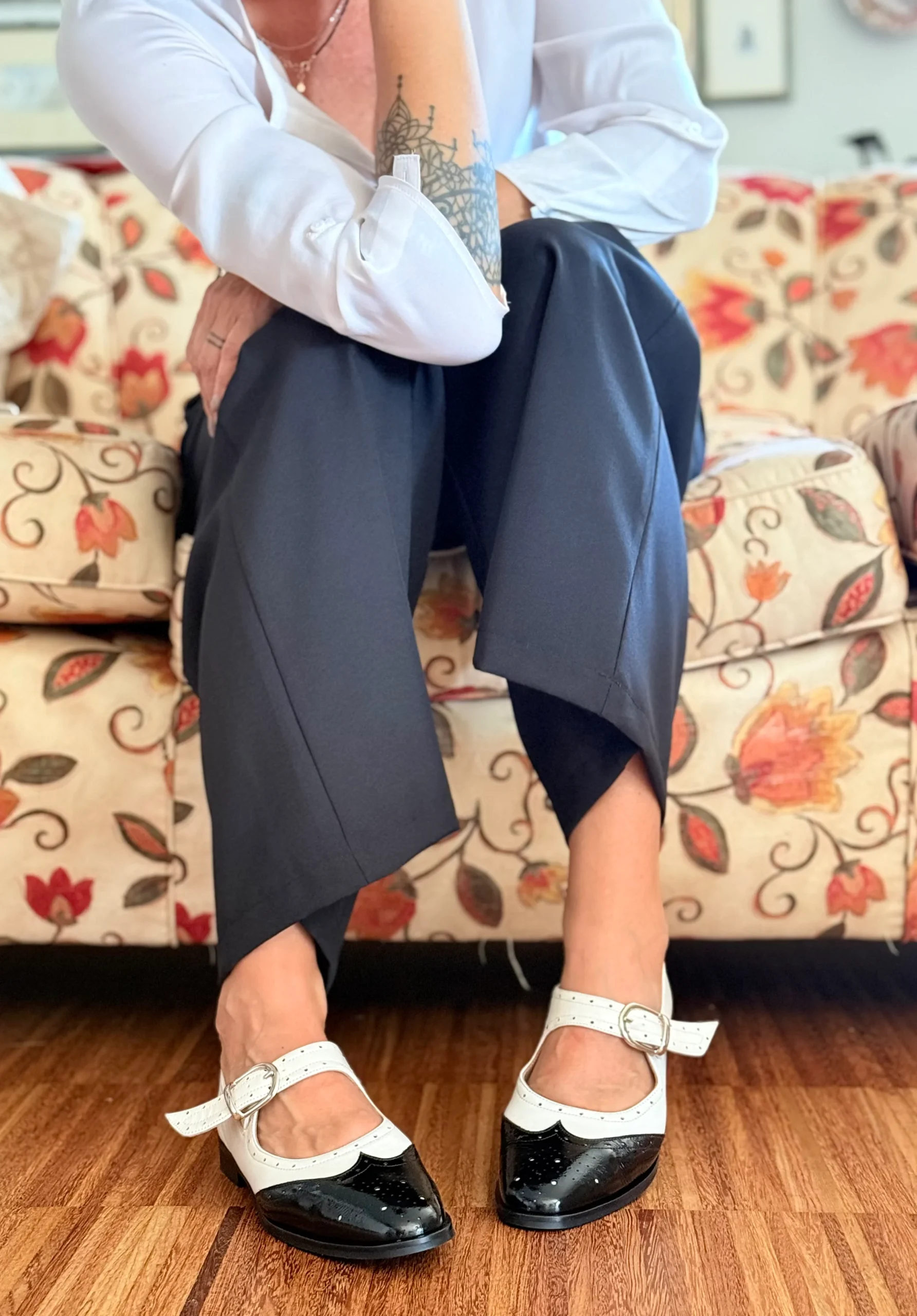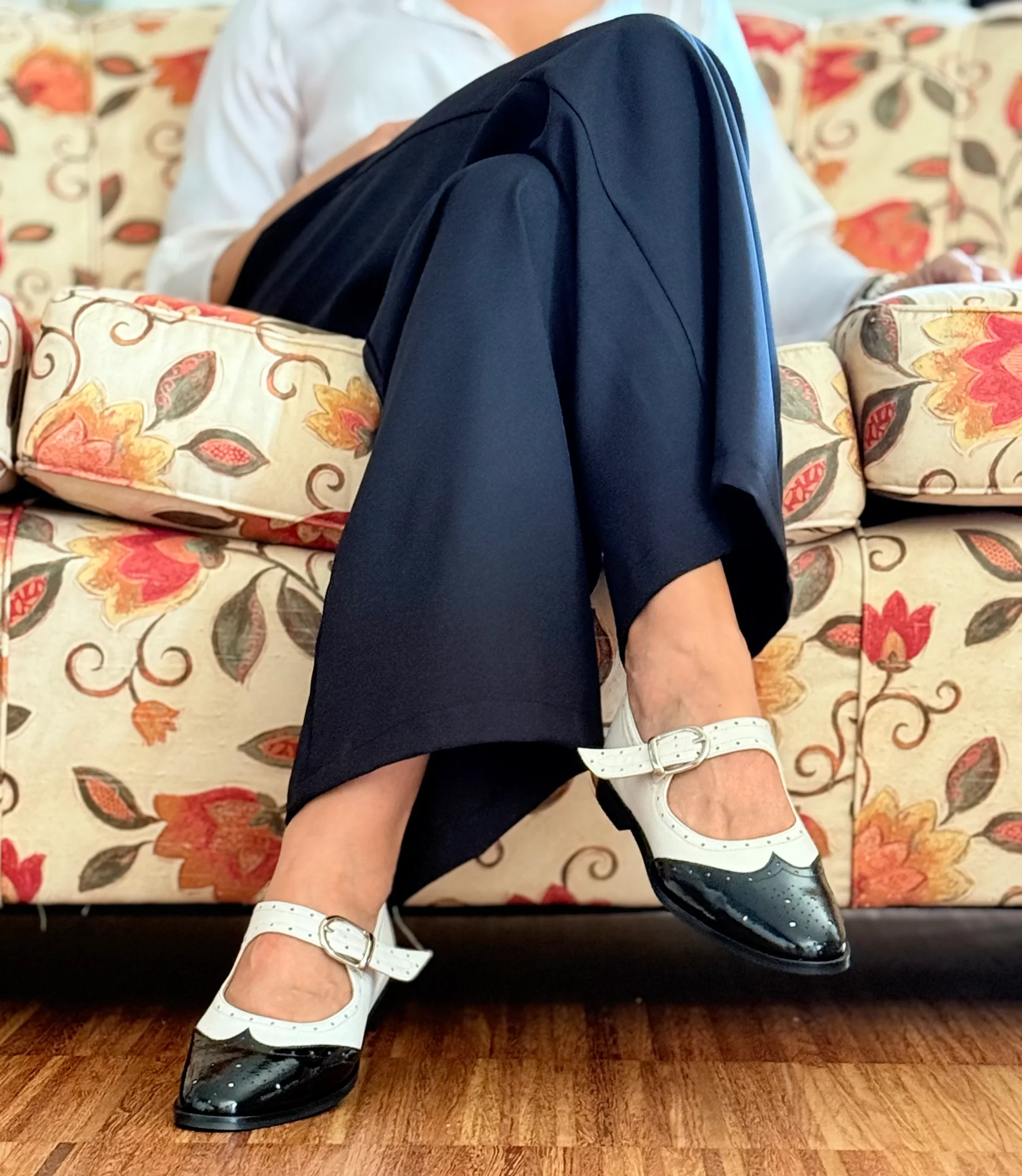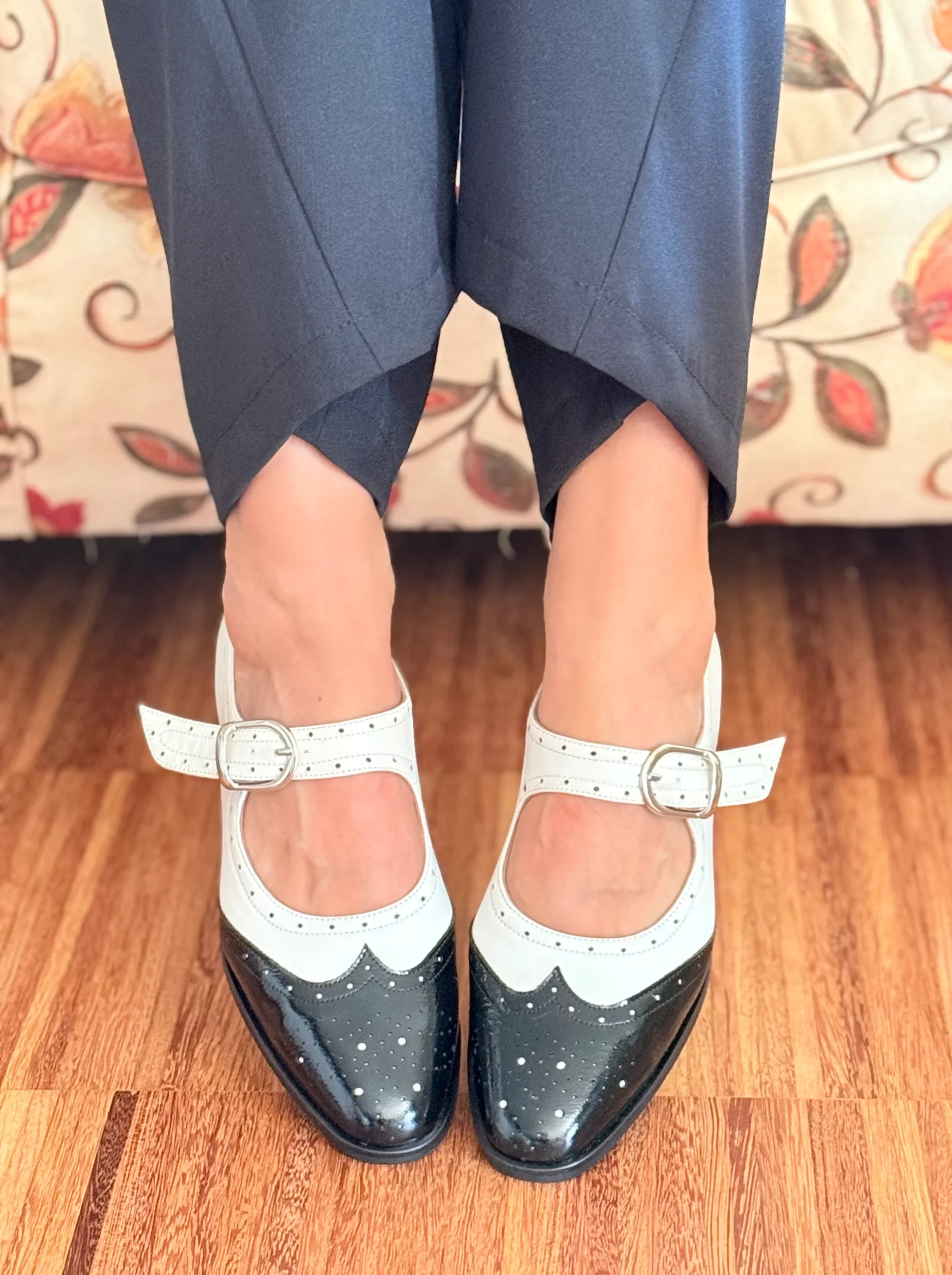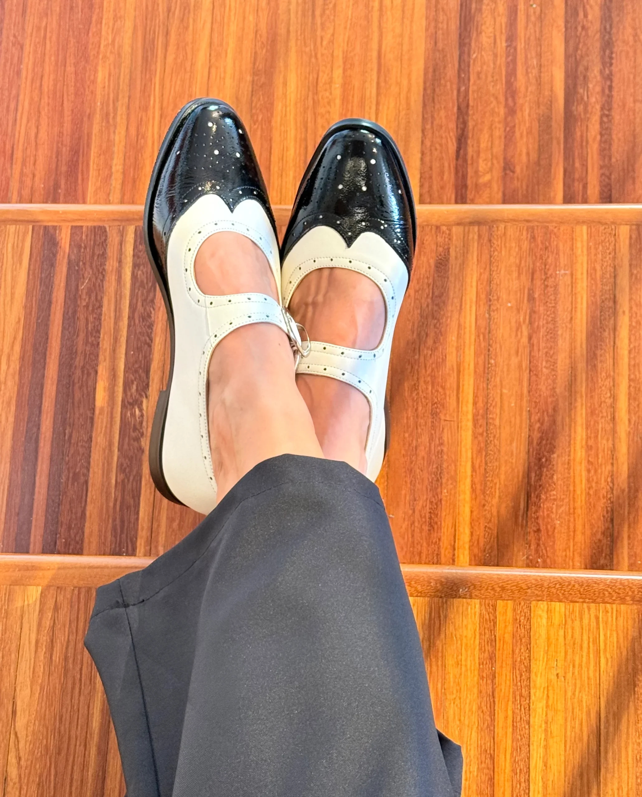 Bimba Black scarpina bassa in nappa bianca e punta in naplak nera tacco 2 artigianale toscana