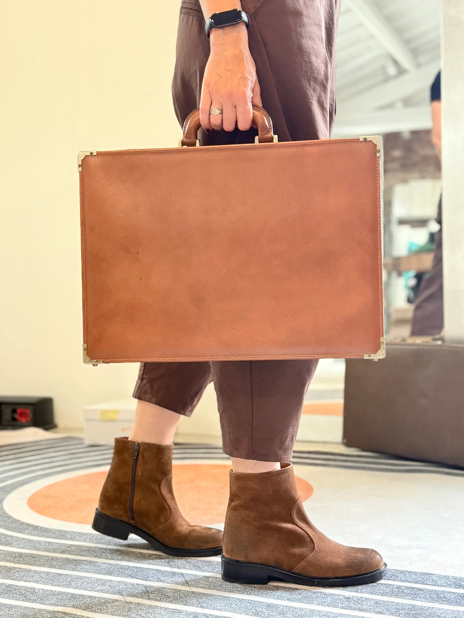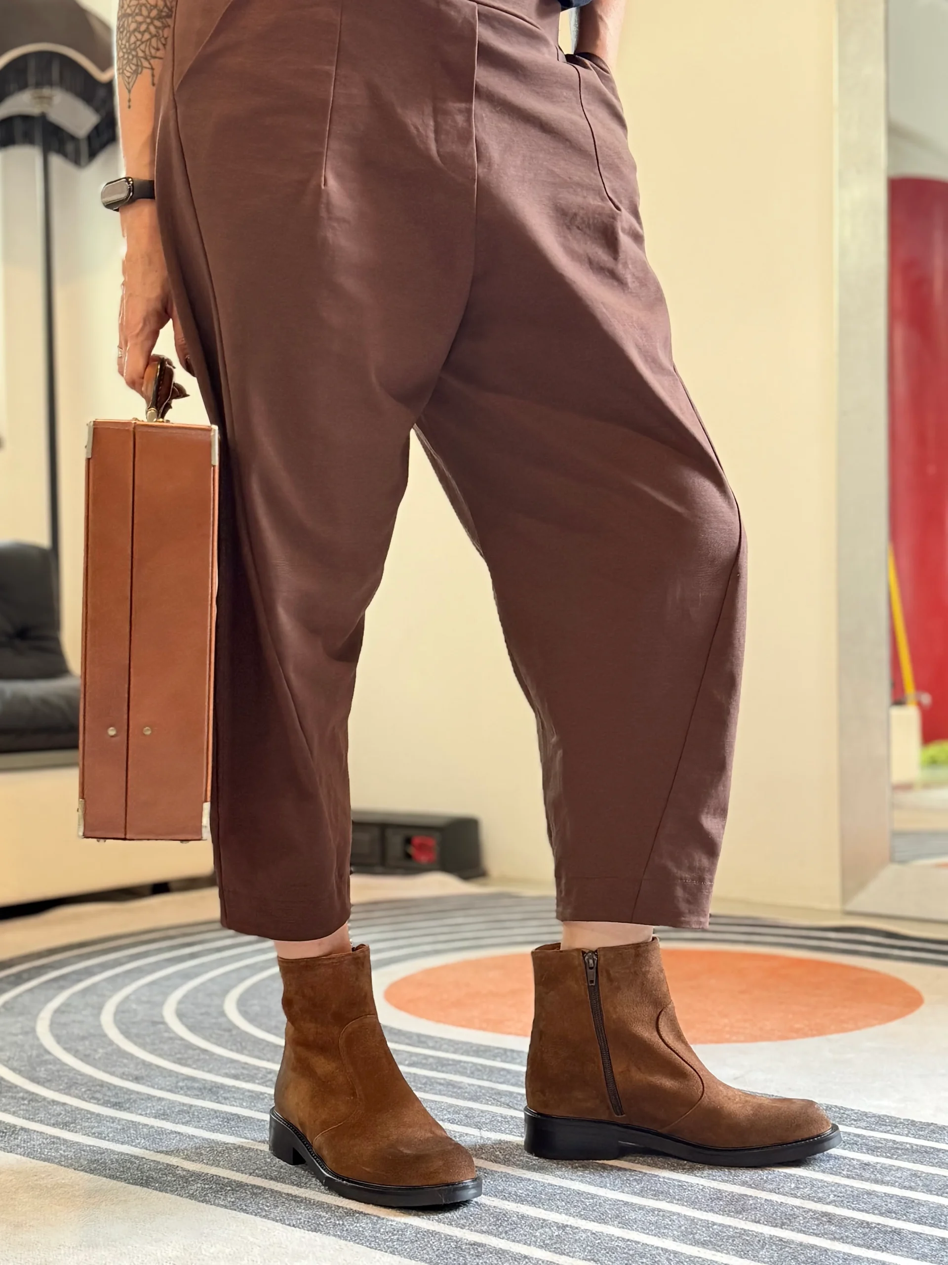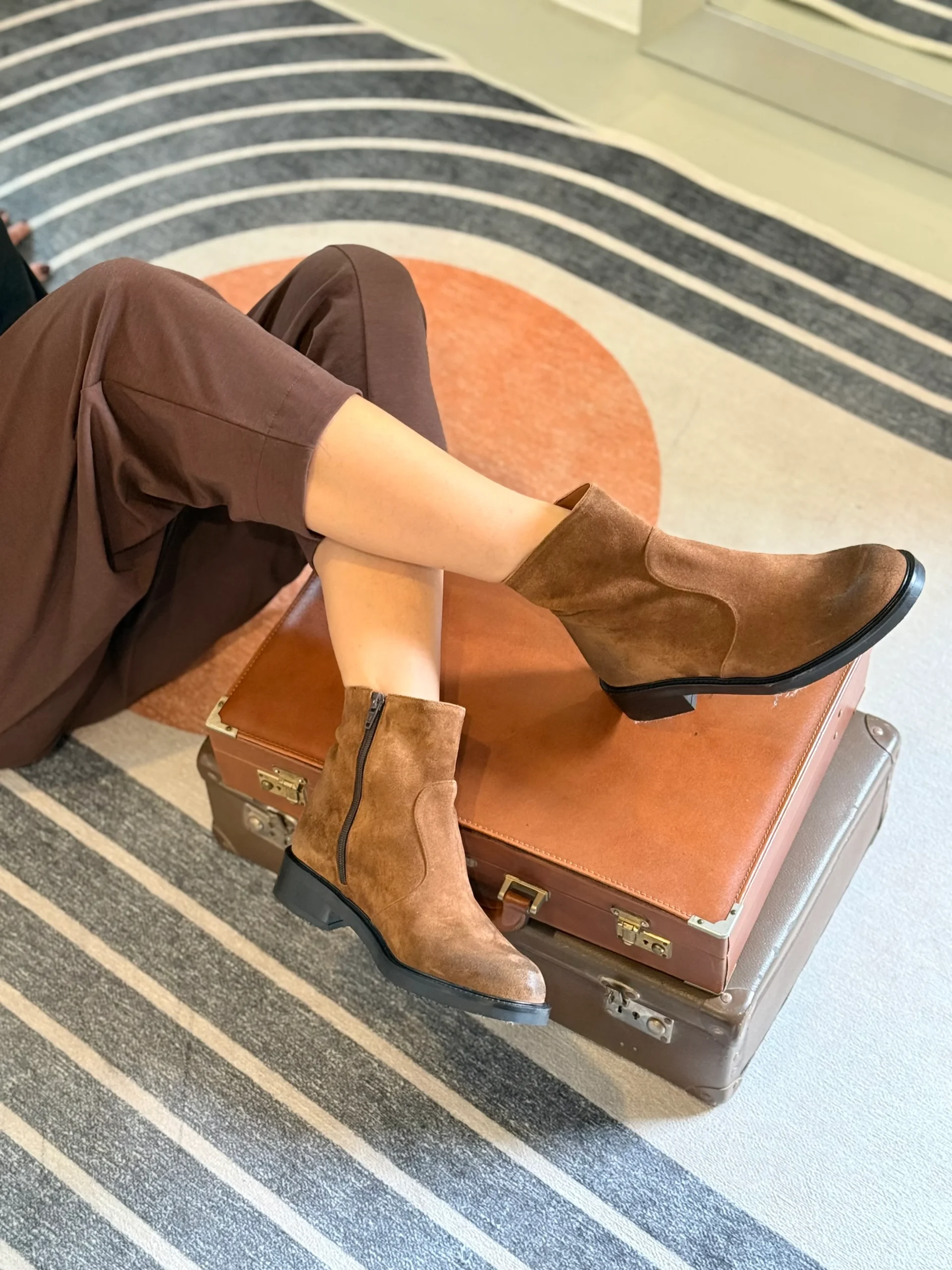 Camelot Cuoio stivaletto in crosta di camoscio marrone con cerniera tacco 3.5 artigianale toscana