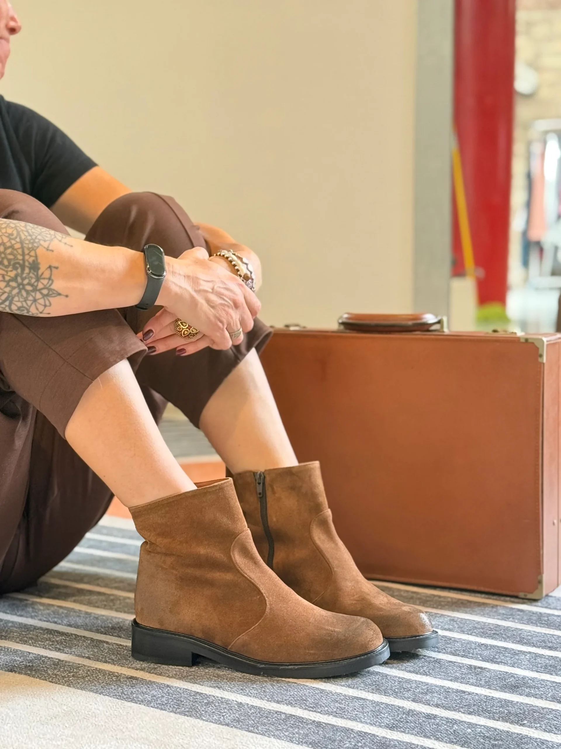 Camelot Cuoio รจ uno stivaletto in crosta di camoscio marrone, pensato per chi cerca uno stile autentico e senza tempo, con il comfort e la qualitร tipici della manifattura artigianale italiana.