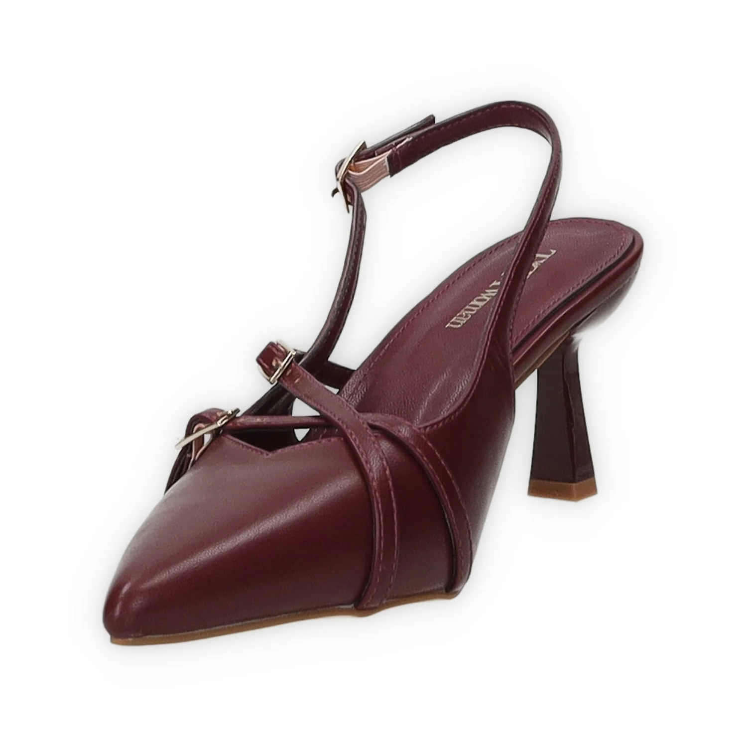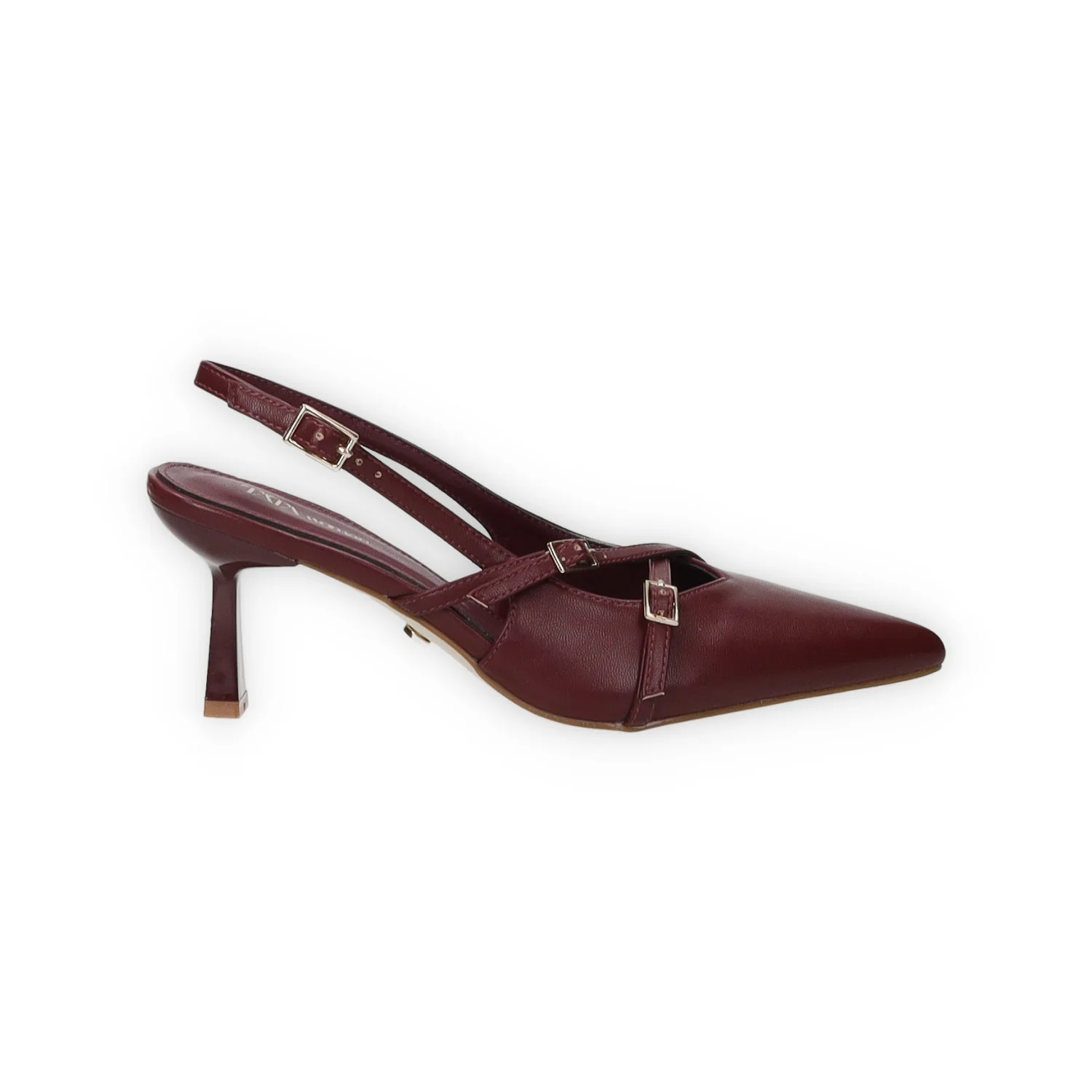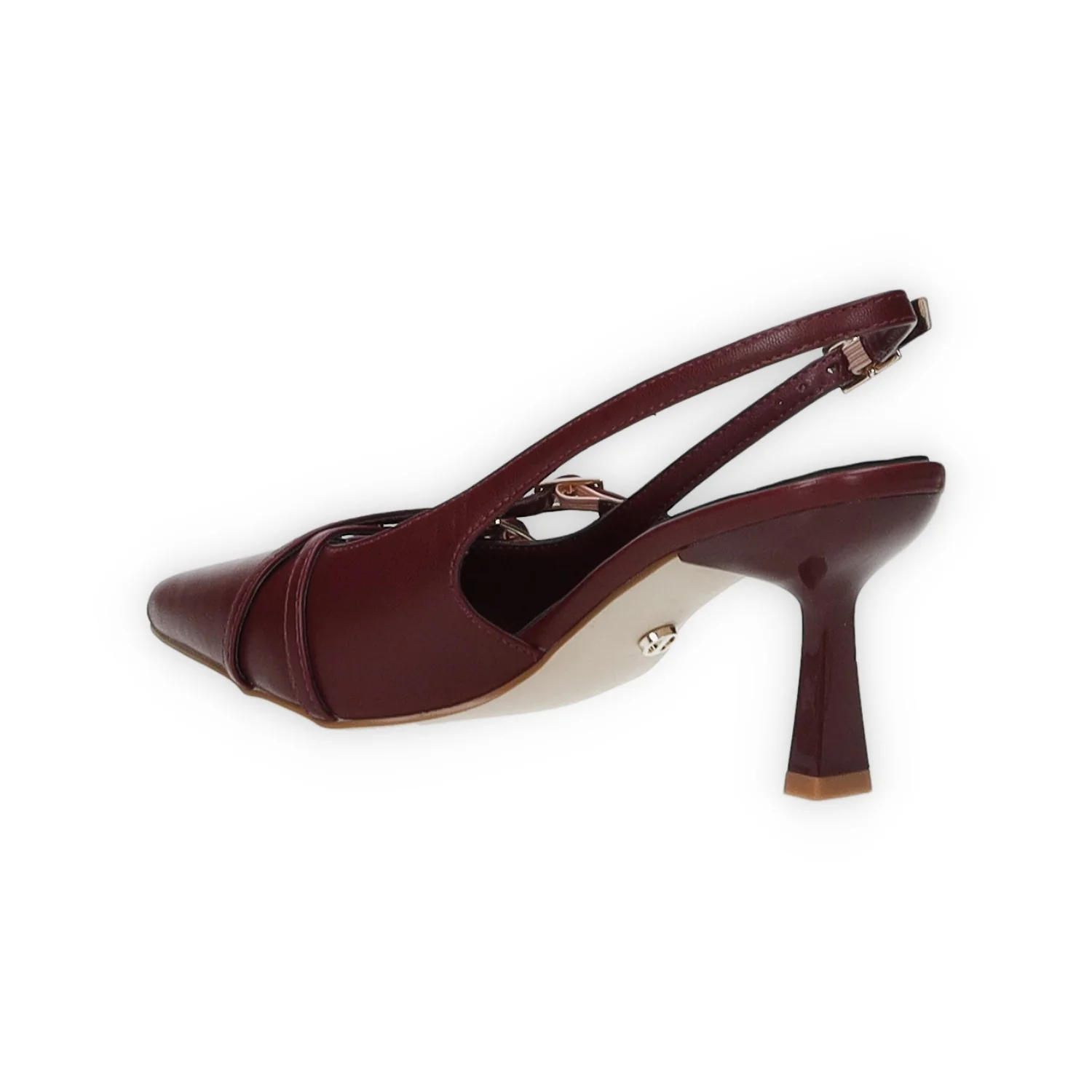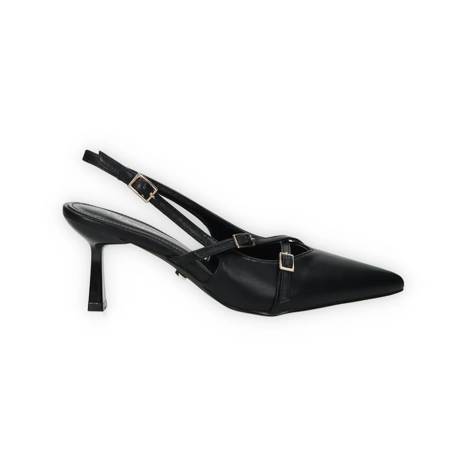 Décolleté sling in ecopelle con cinturino e tacco di 5 cm.