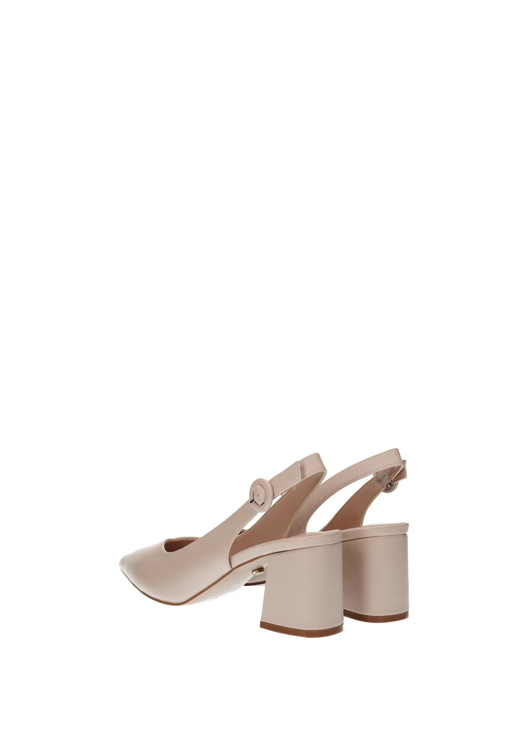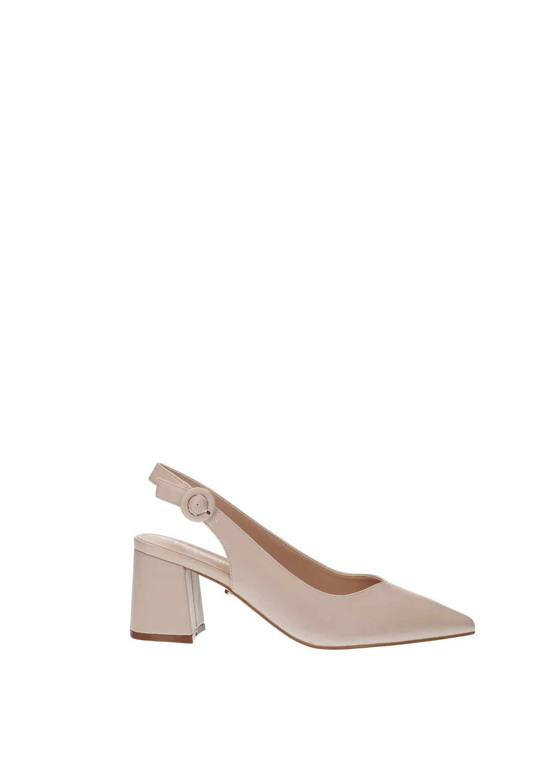 Décolleté in ecopelle con cinturino e tacco di 6.5 cm.