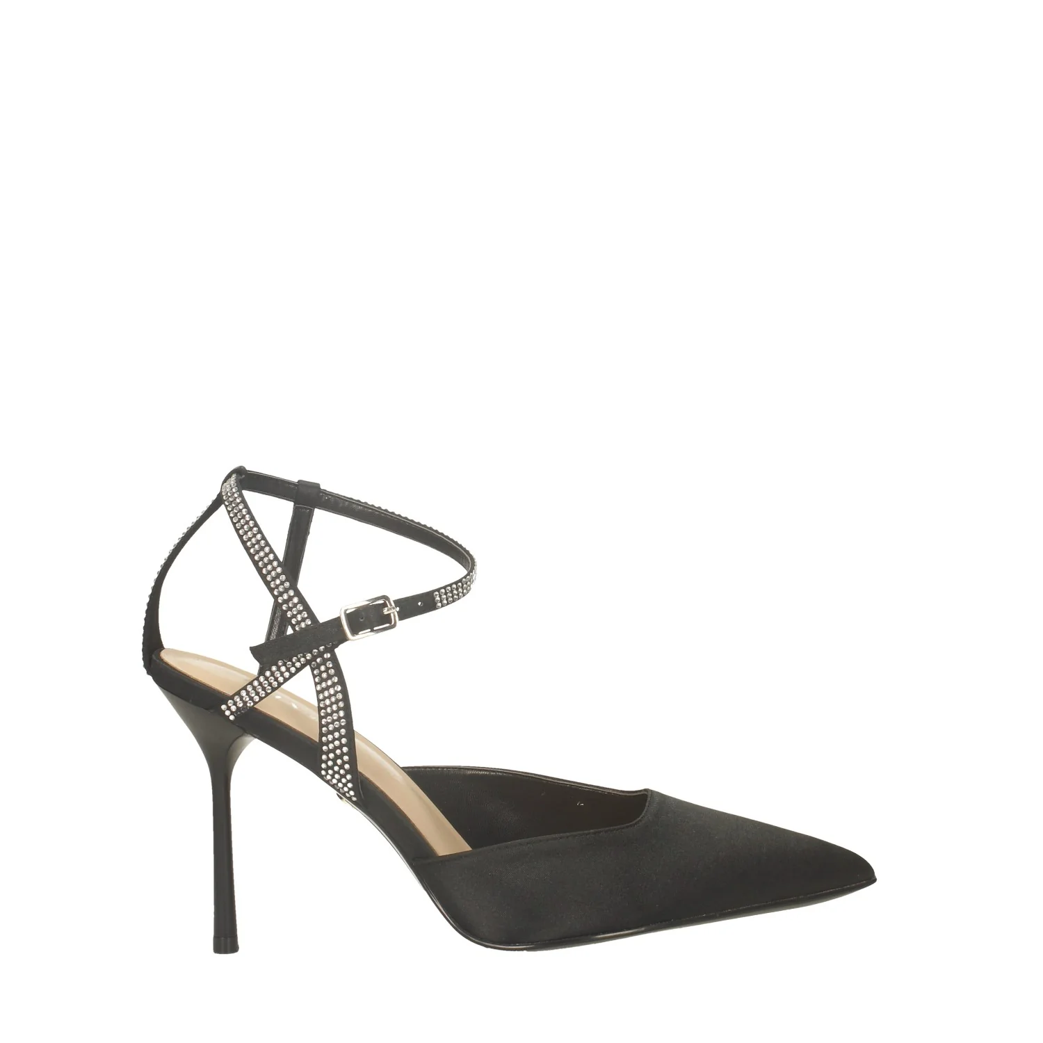 Décolleté con cinturino ricoperto da strass.Tacco alto 7.5cm