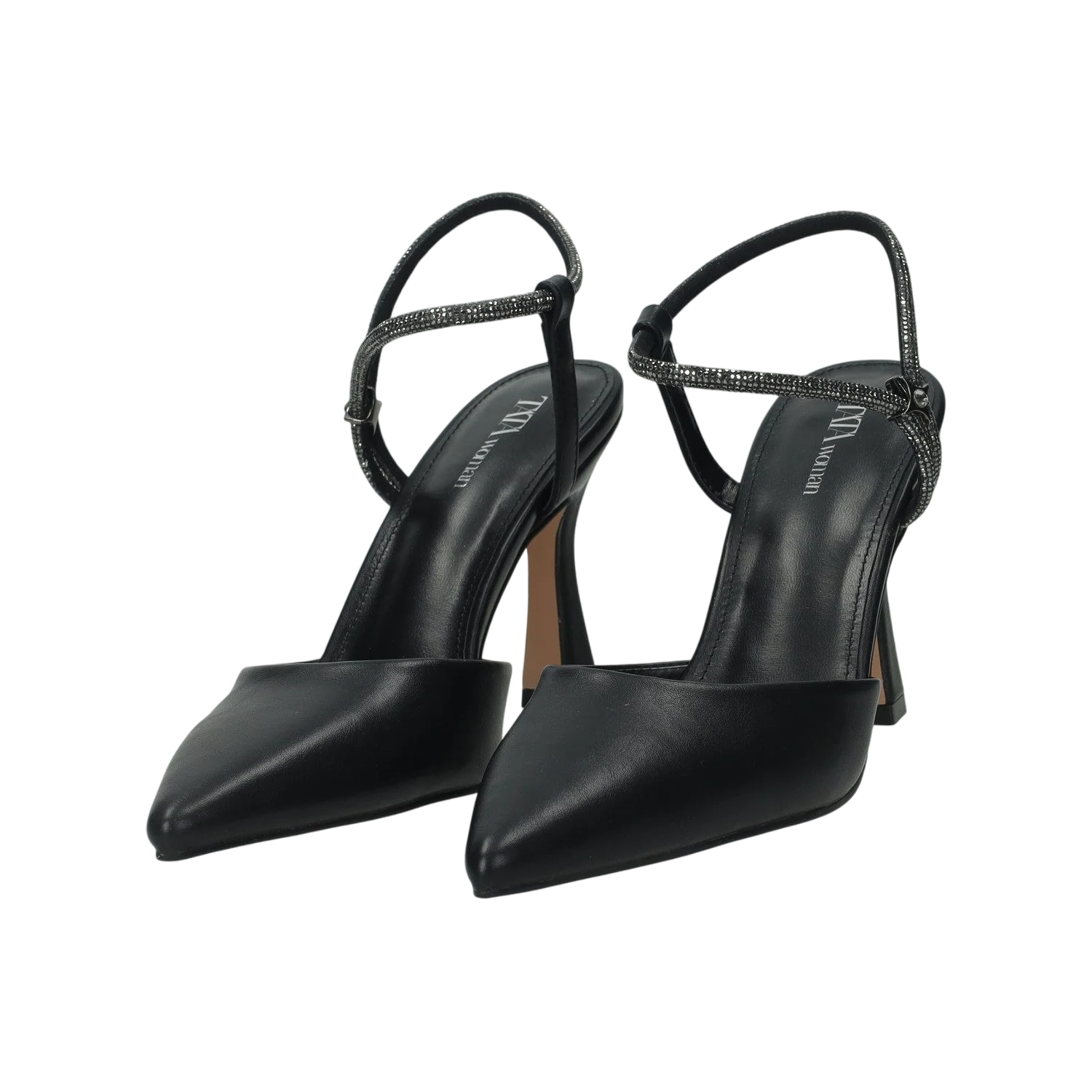 Décolleté modello sling back.Cinturino regolabile ricoperto da strass.Altezza tacco: 8 cm