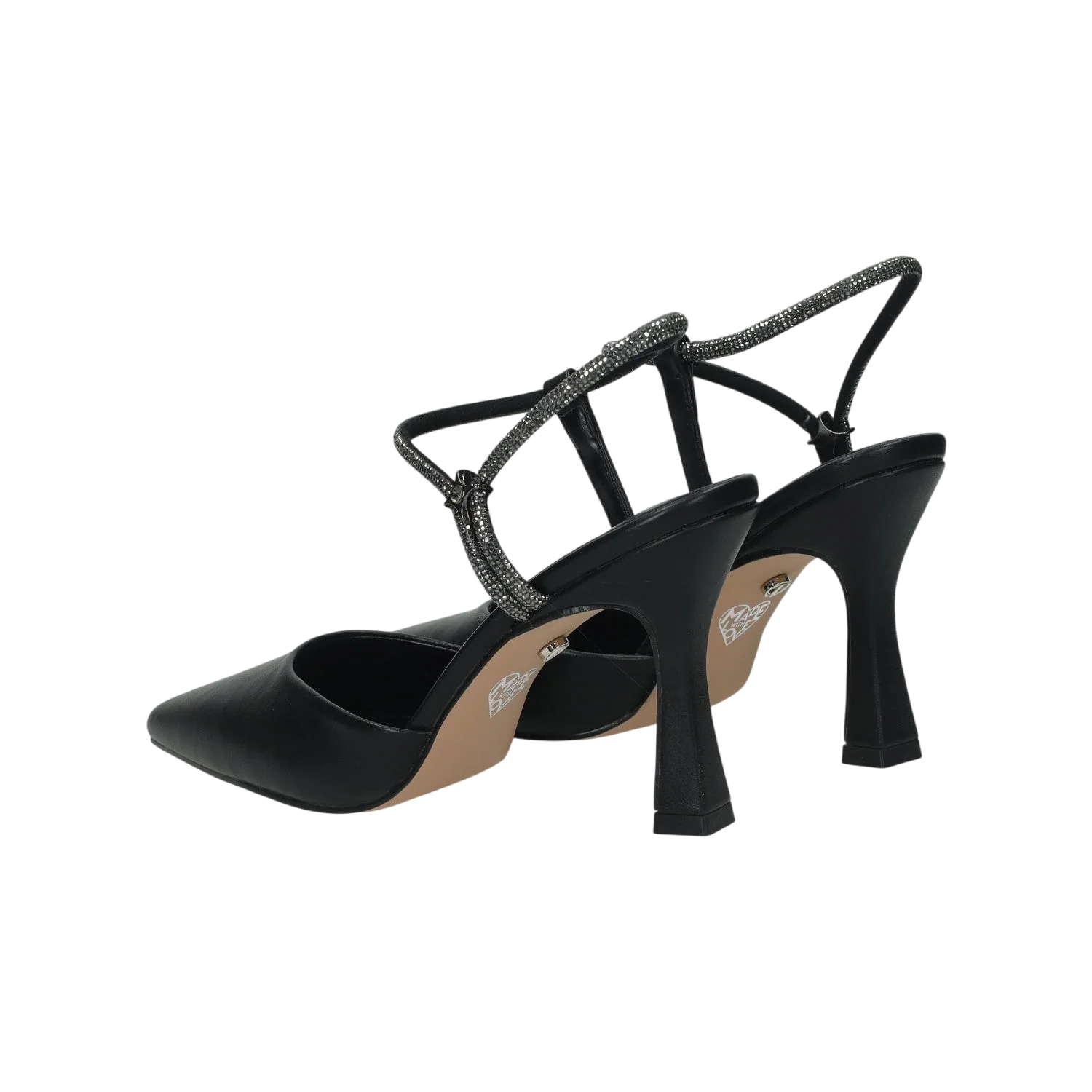 Décolleté con cinturino ricoperto da strass.Tacco alto 8cm