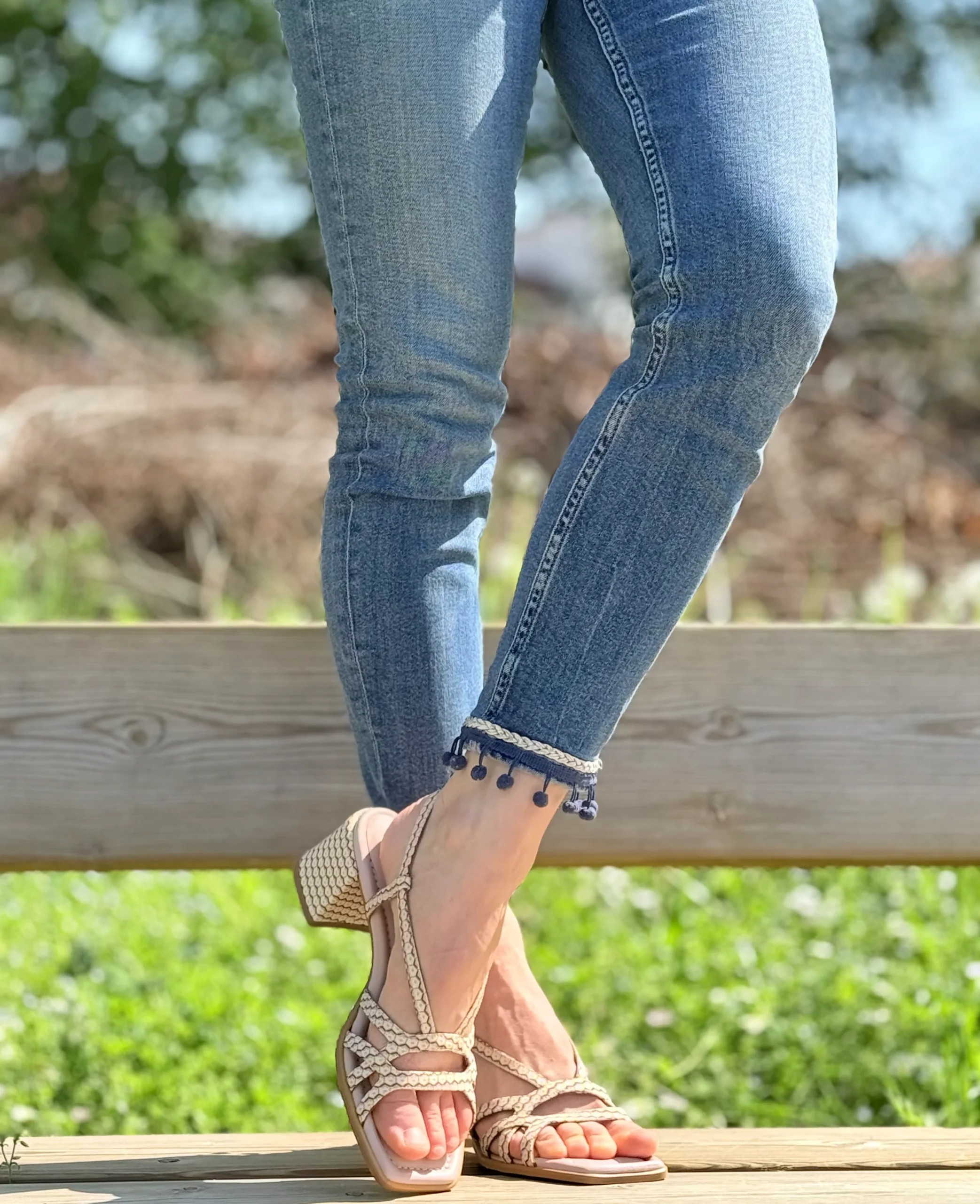 Diaz Crema – Passione e raffinatezza in ogni passo Un sandalo che racconta una storia d’amore tra eleganza e audacia. Diaz Crema, con il suo tessuto stampato sui toni del crema e del giallo , è un inno alla femminilità e alla sicurezza di sé. Le due fasce anteriori abbracciano delicatamente il piede, mentre il […]