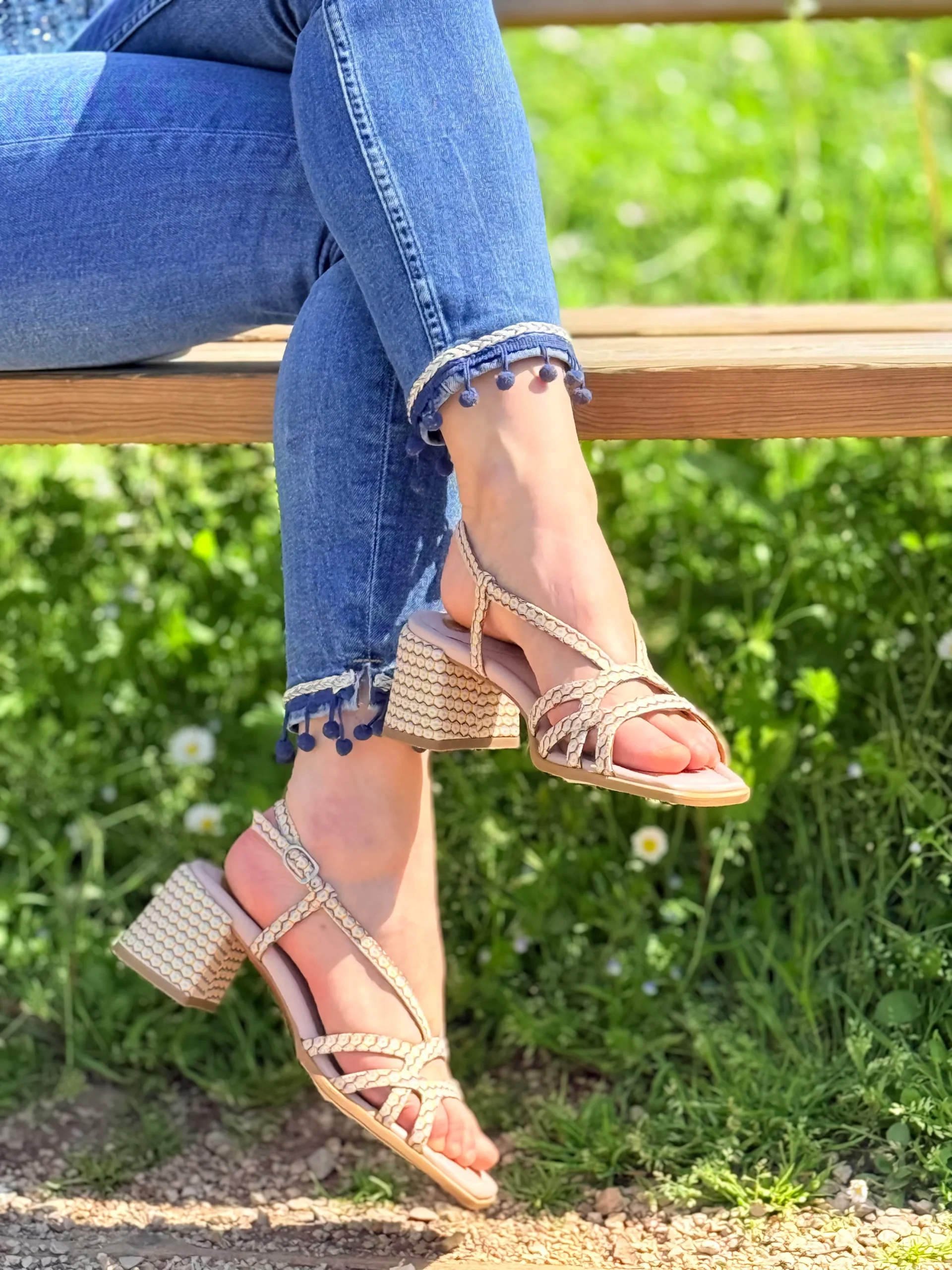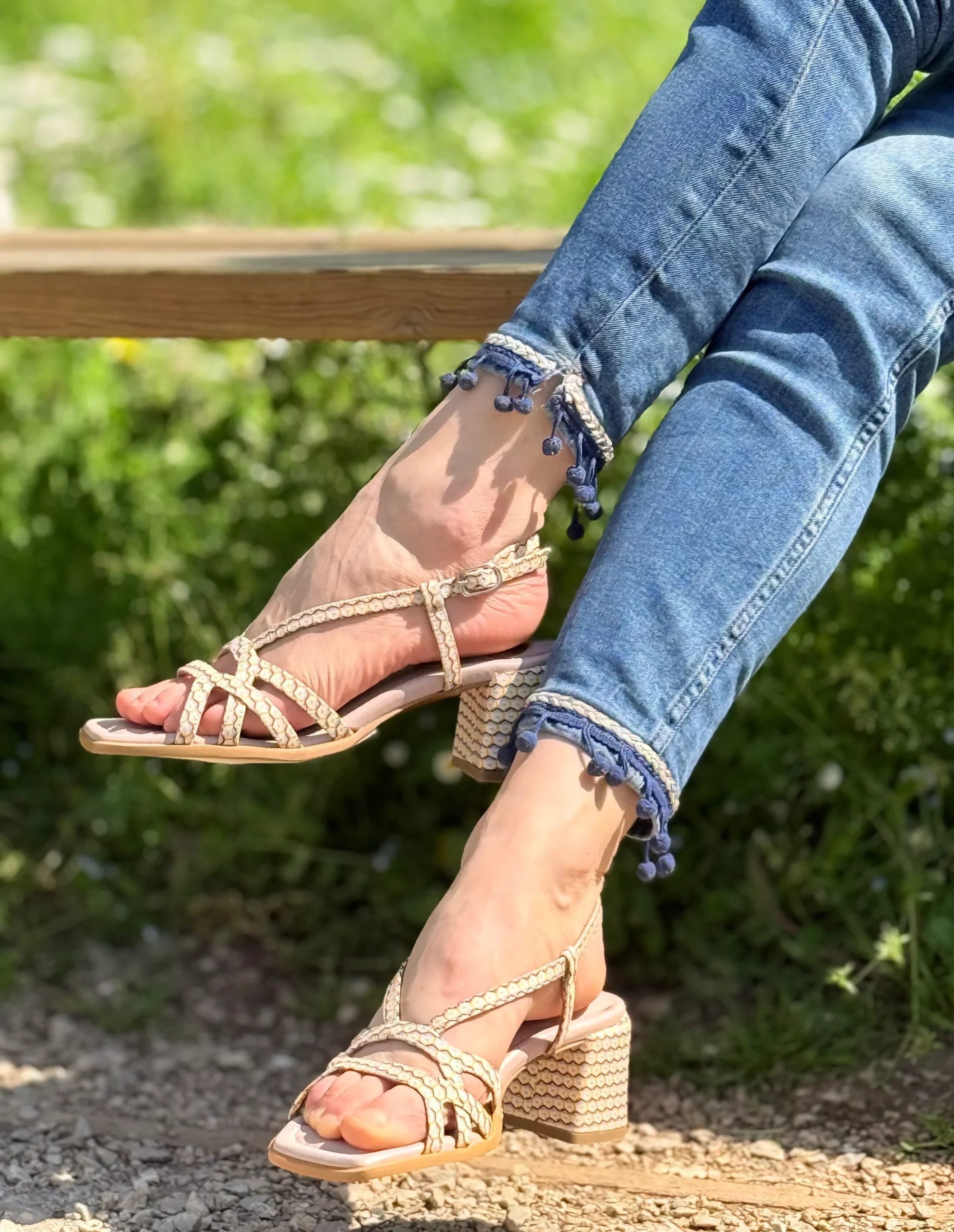 Diaz Crema sandalo in tessuto stampato crema tacco 6 cm artigianale Lagattaconglistivali