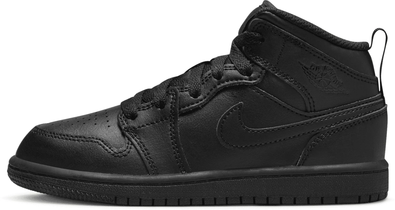 Jordan 1 Mid Triple Black Tumbled Leather (PS) kids