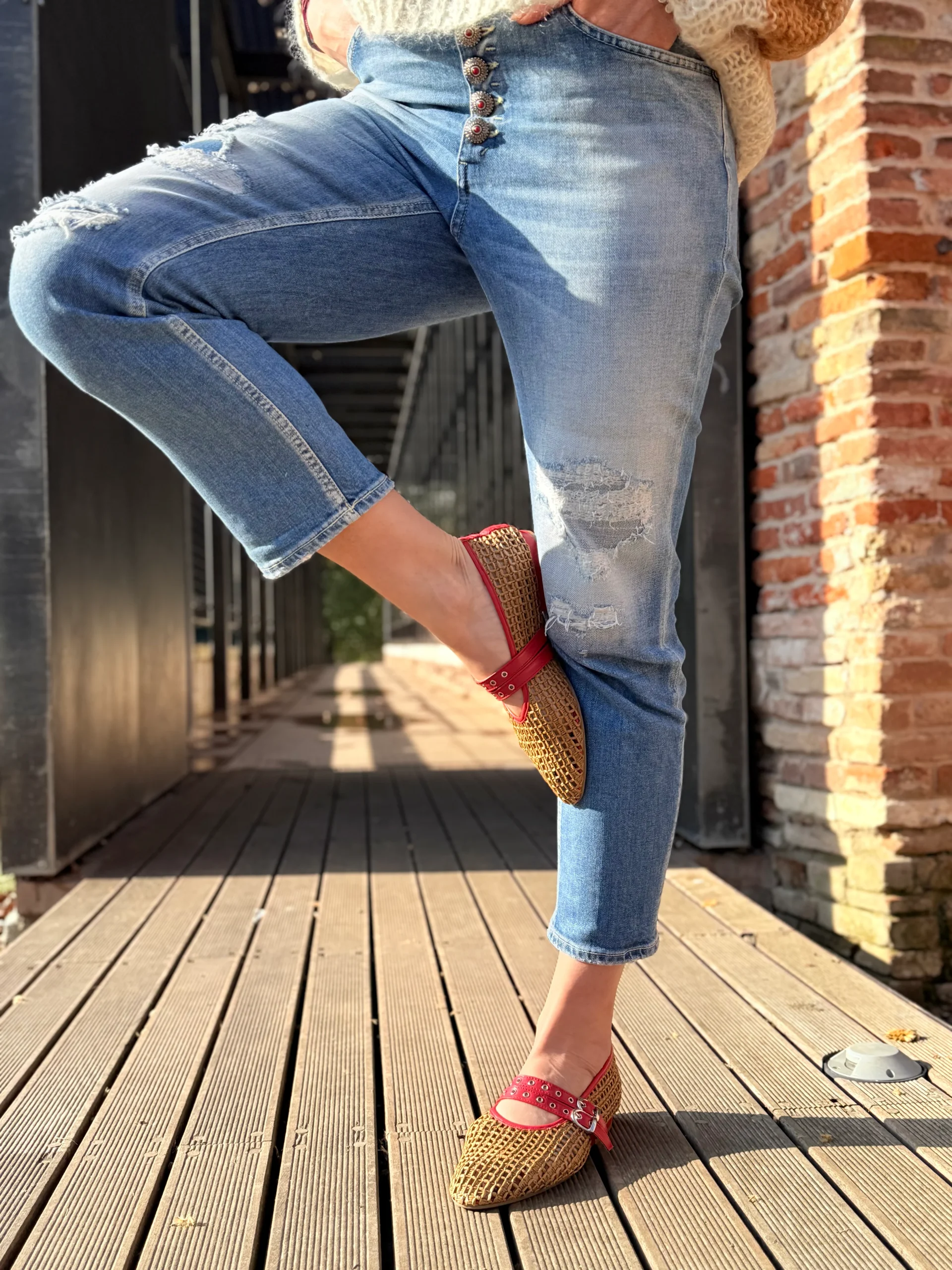 Mistero Red è una di quelle scarpine che sembrano leggere come l’estate… ma con un carattere tutto suo.