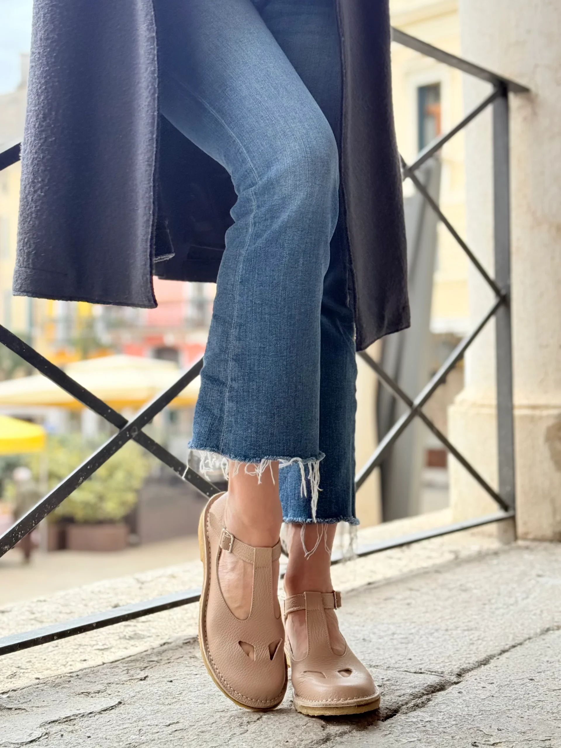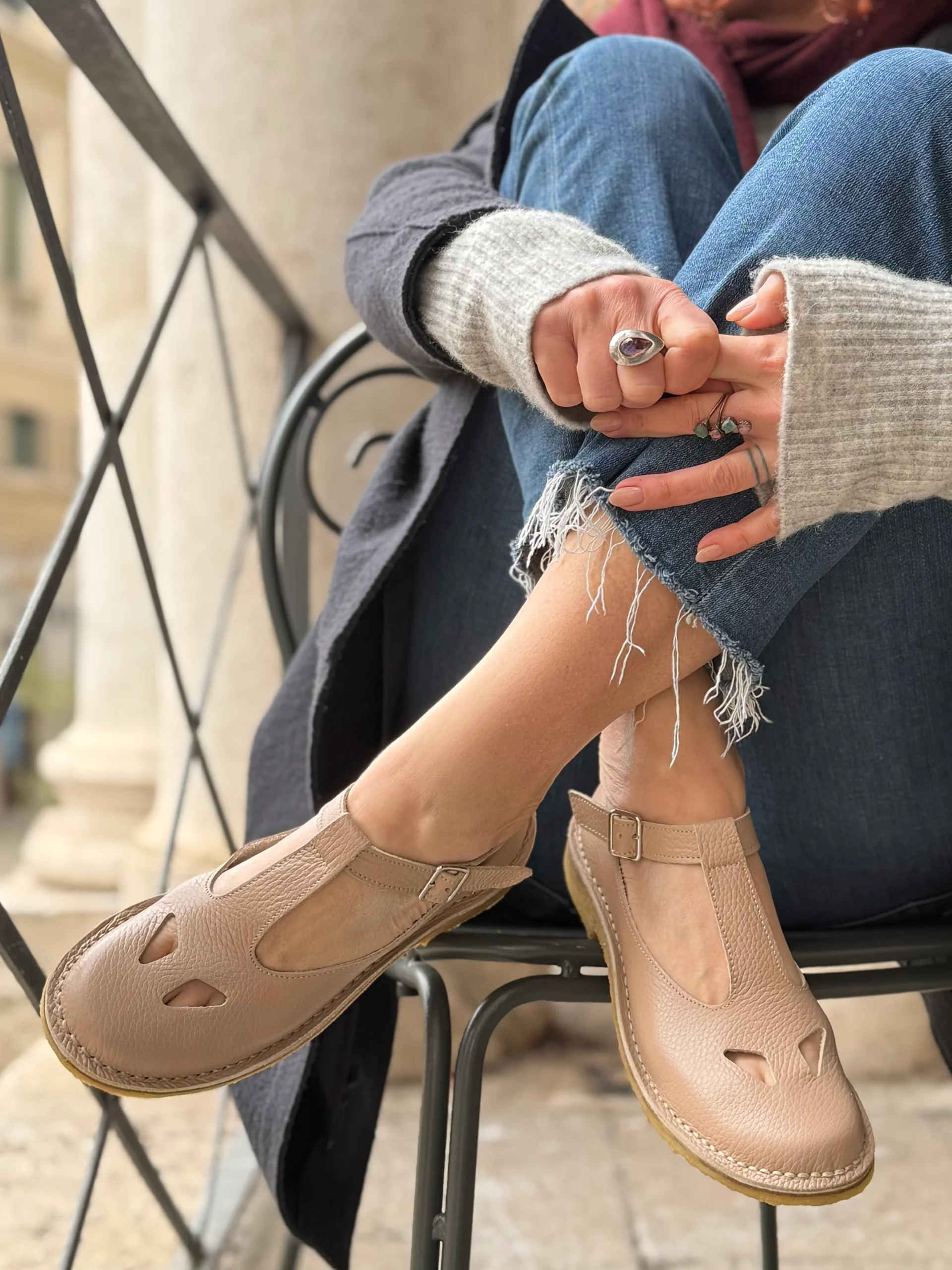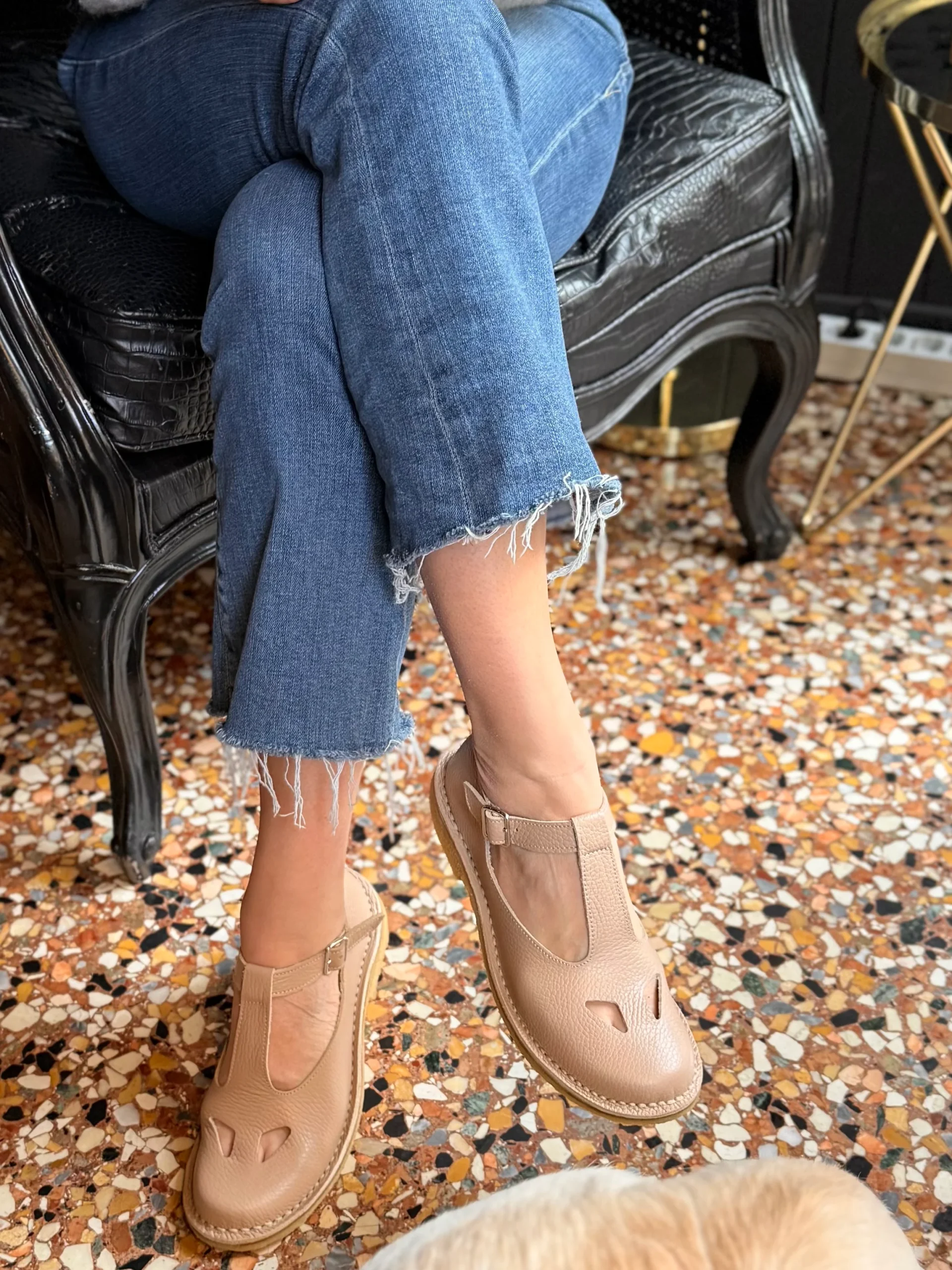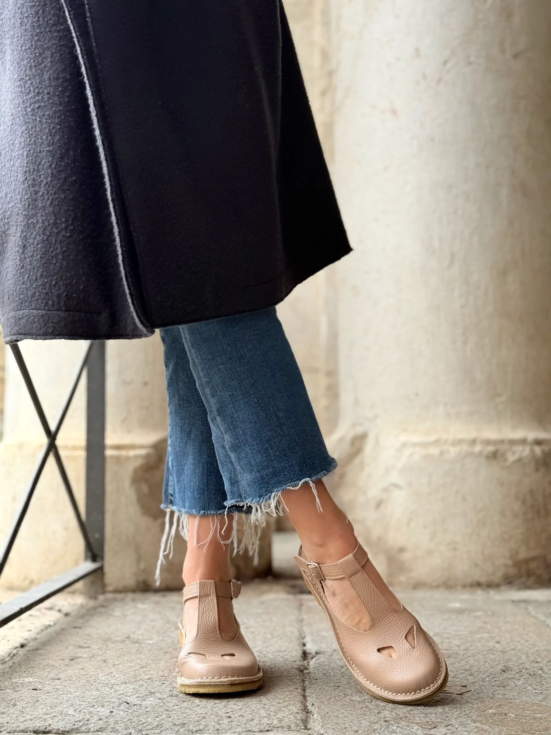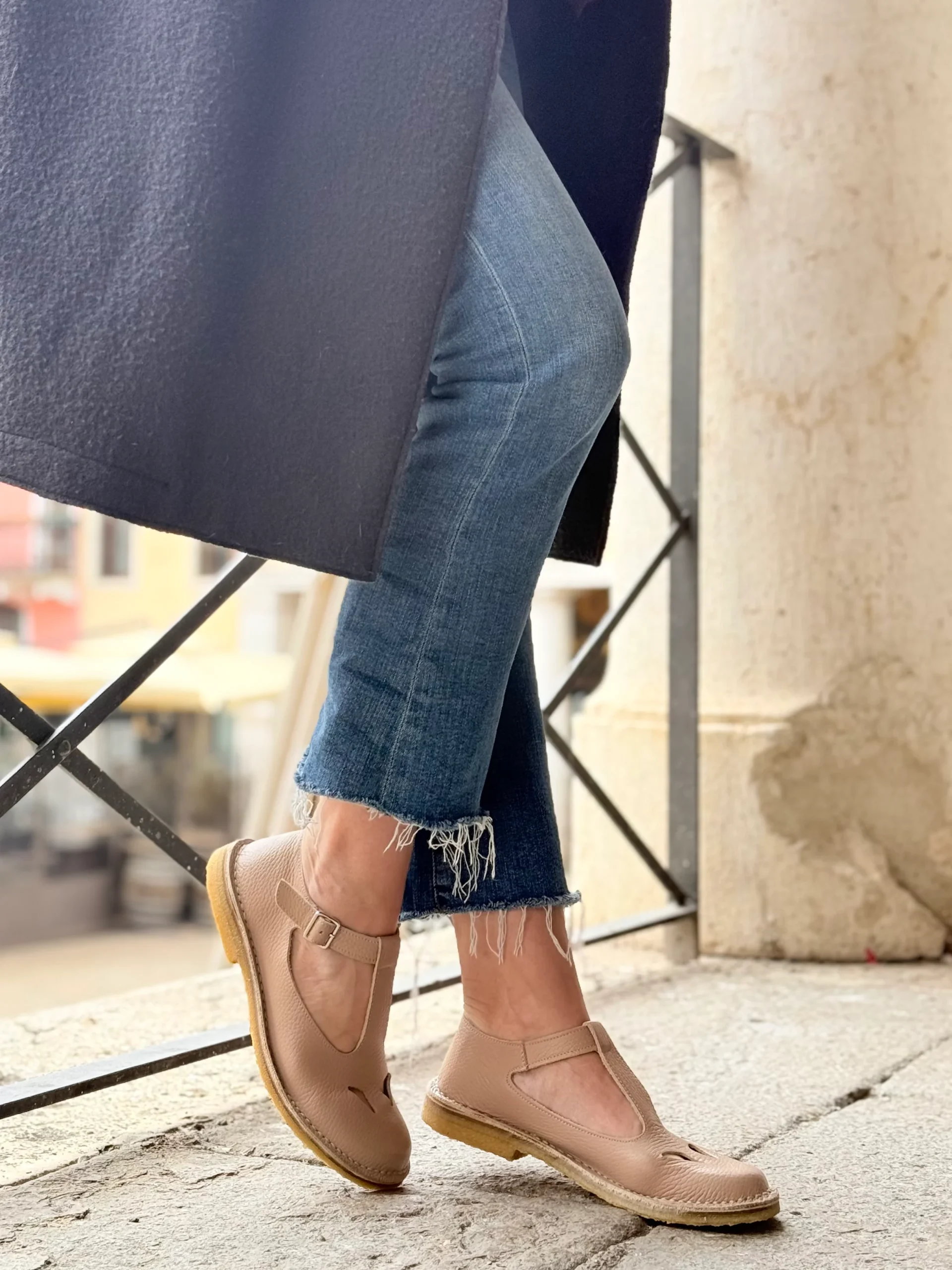 Paturnia Cipria bebe con occhietti in pelle color nude artigianale toscana