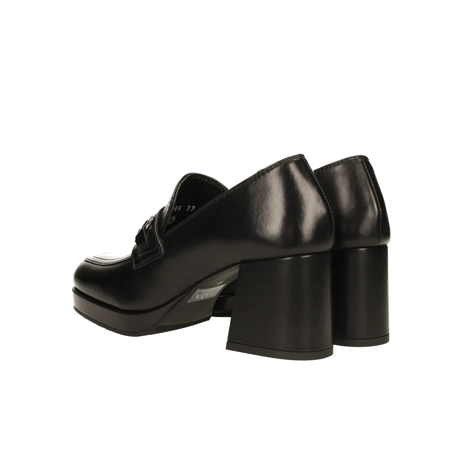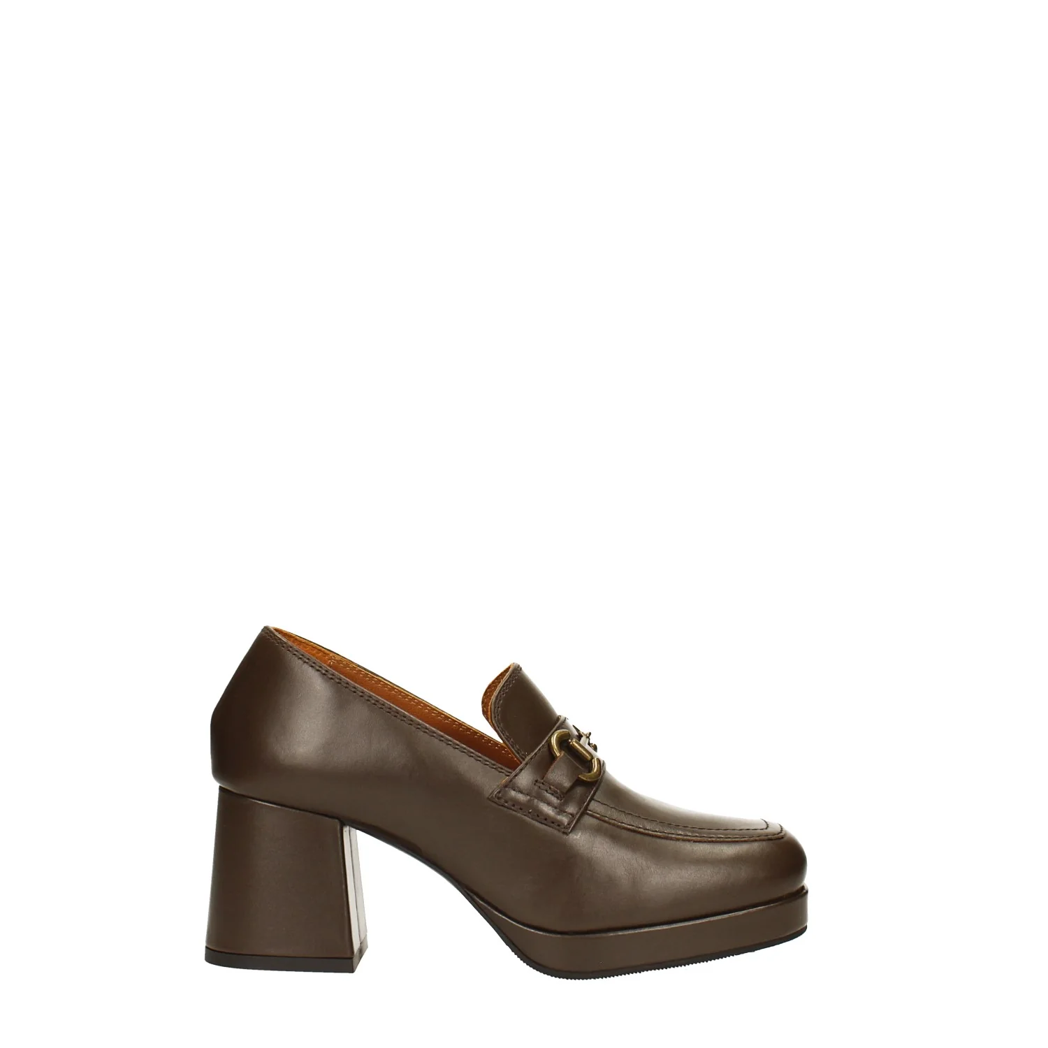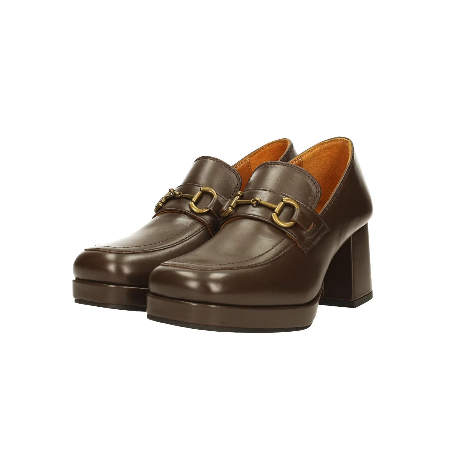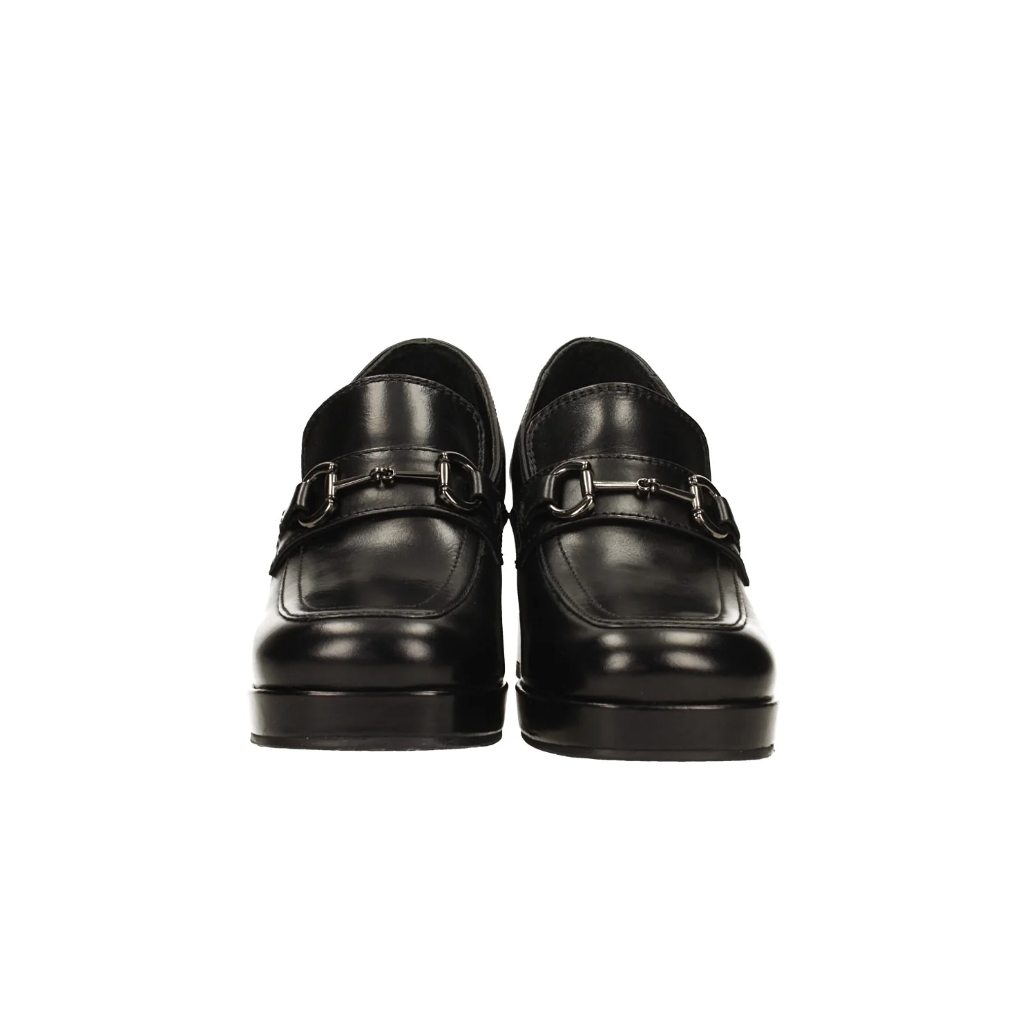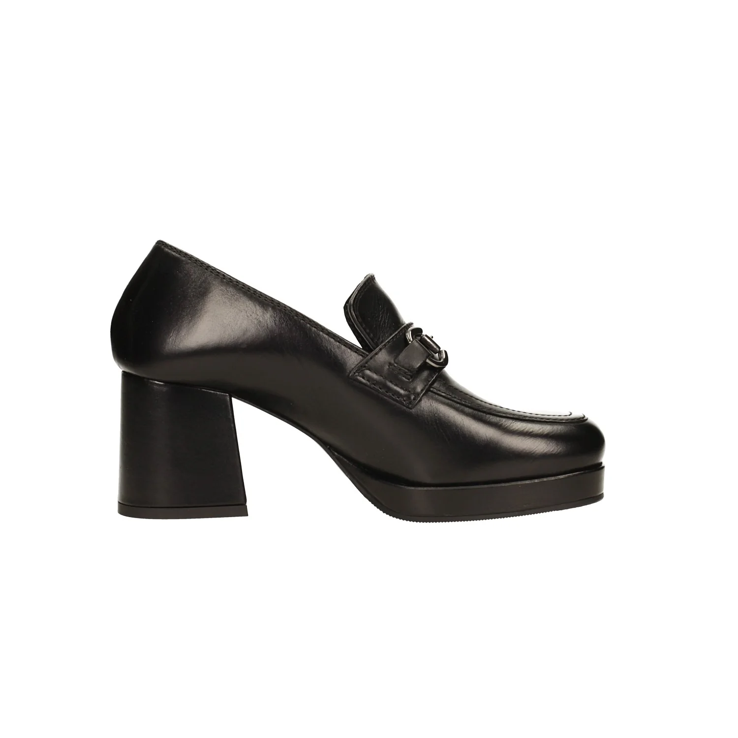 Mocassini in vera pelle con punta squadrata.Fibbia in metallo brunita.Tacco largo alto 7cm