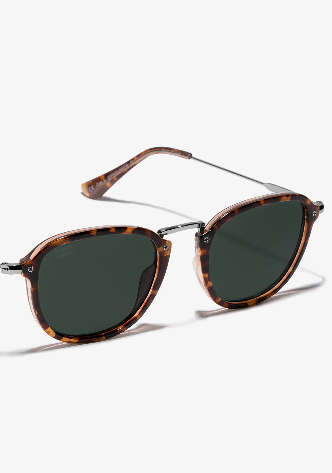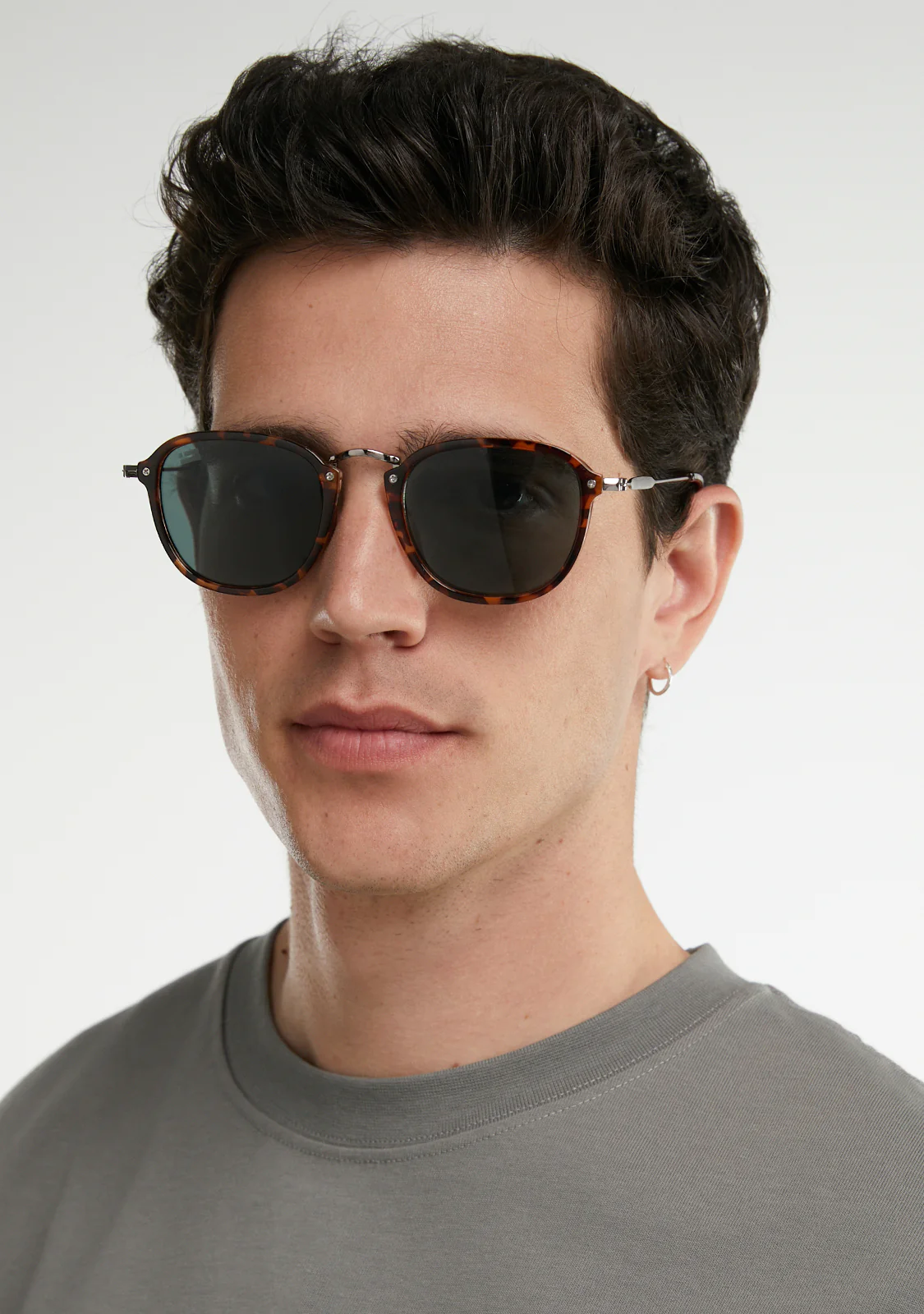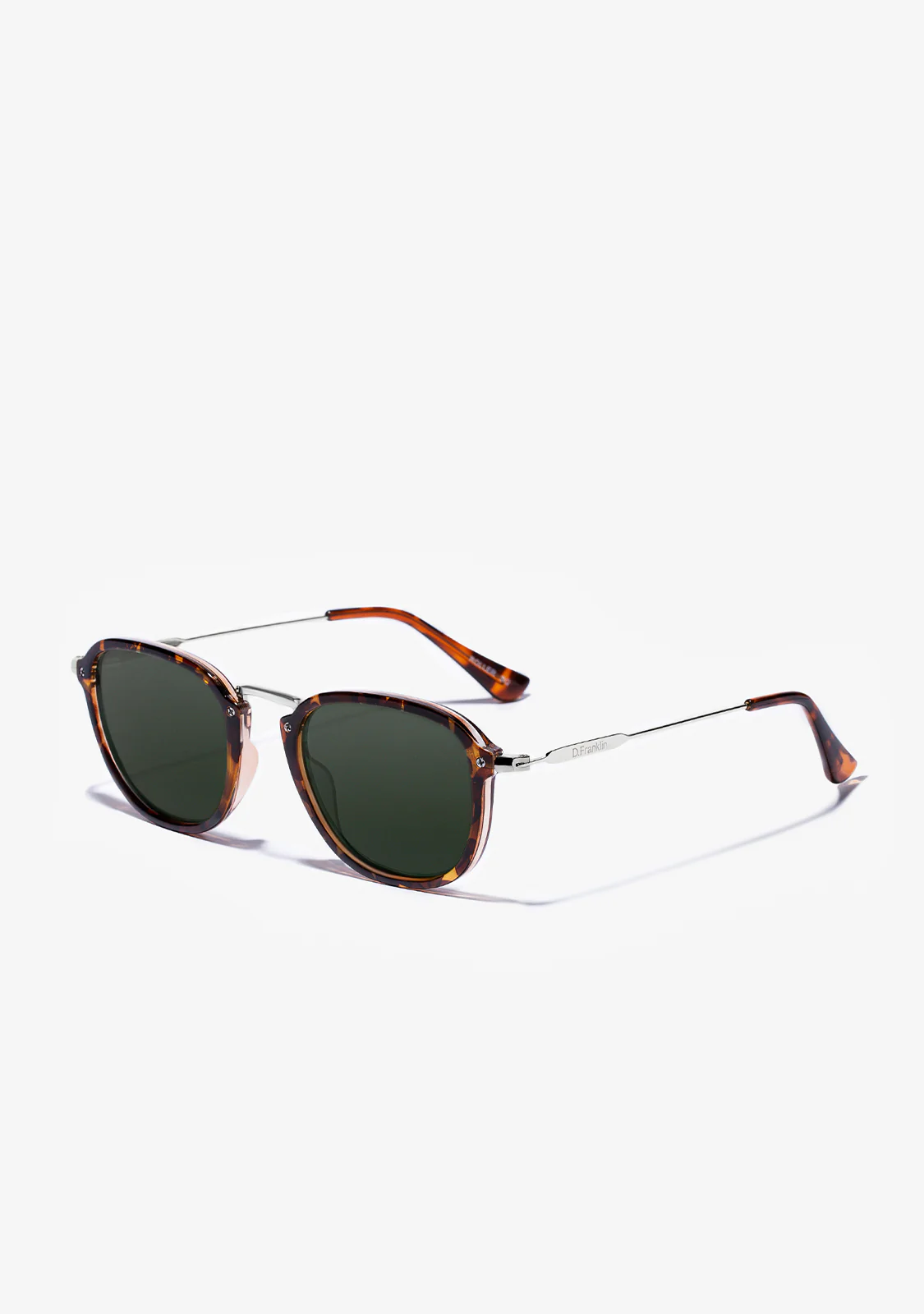 Le lenti in policarbonato presentano una tonalità marrone su una silhouette in tartaruga argento con una montatura quadrata. Presenta i dettagli distintivi del nostro marchio: il logo inciso su entrambe le tempie in metallo e il nostro emblema sulla lente destra. Con una larghezza della lente di 53,5 mm e una montatura frontale di 147 mm, questi occhiali esaltano i lineamenti di qualsiasi viso. Le tempie laterali sono realizzate in acciaio inossidabile e hanno una lunghezza di 145 mm.