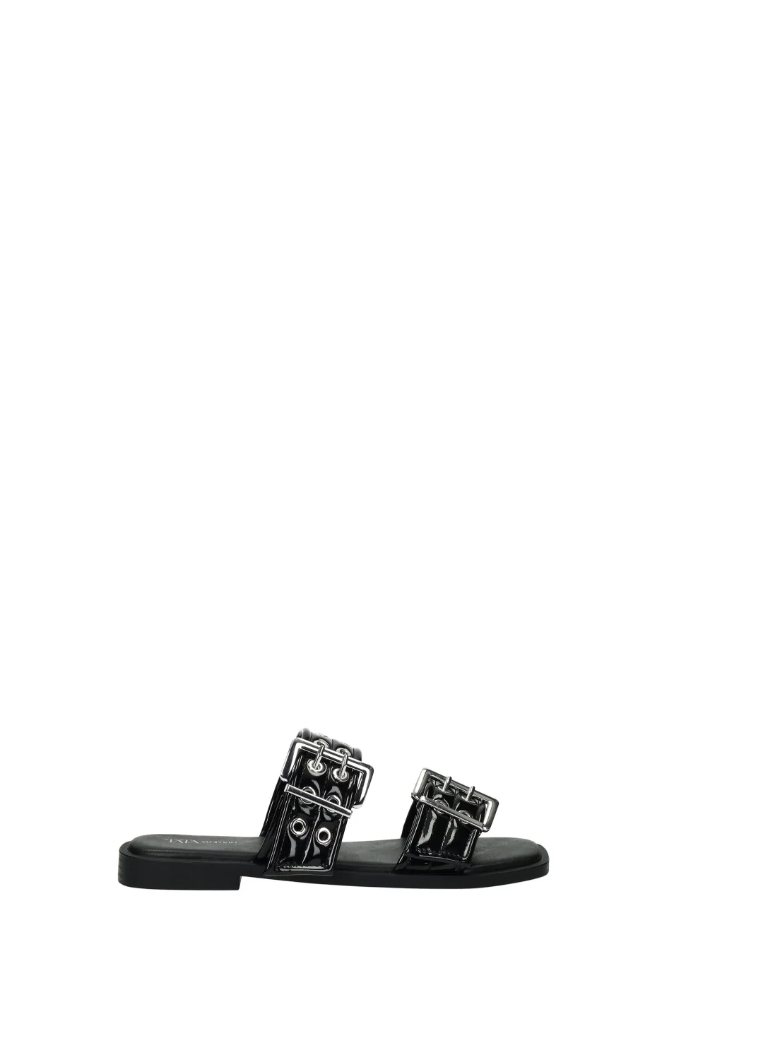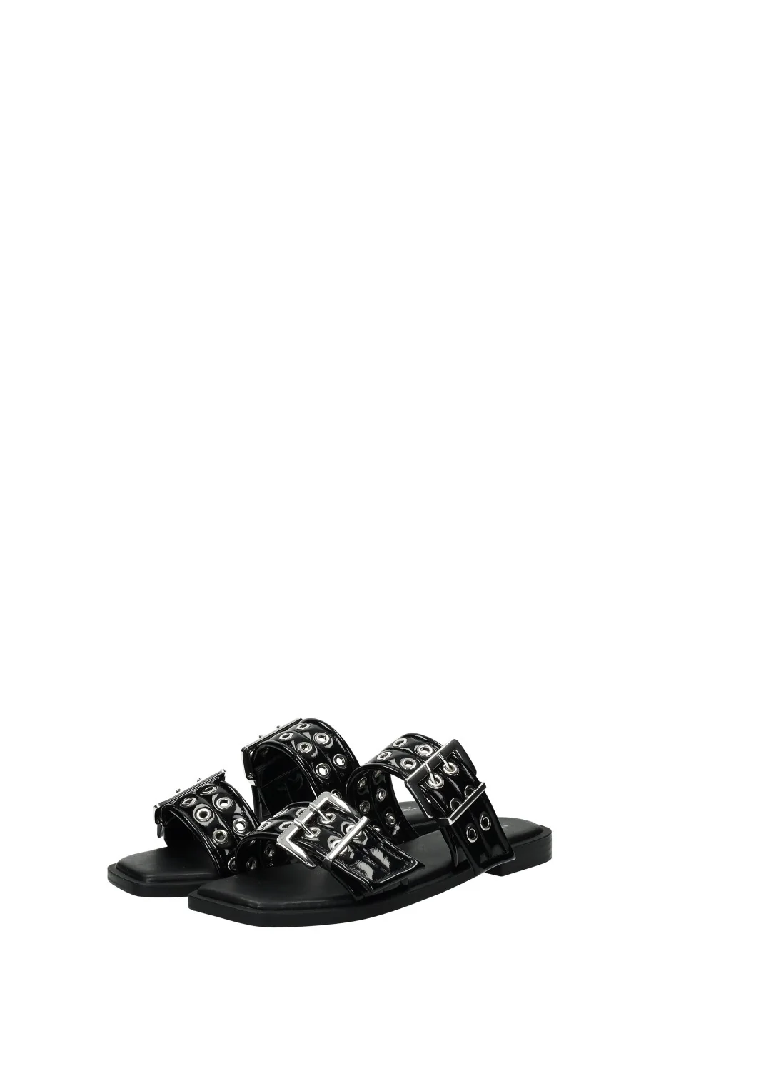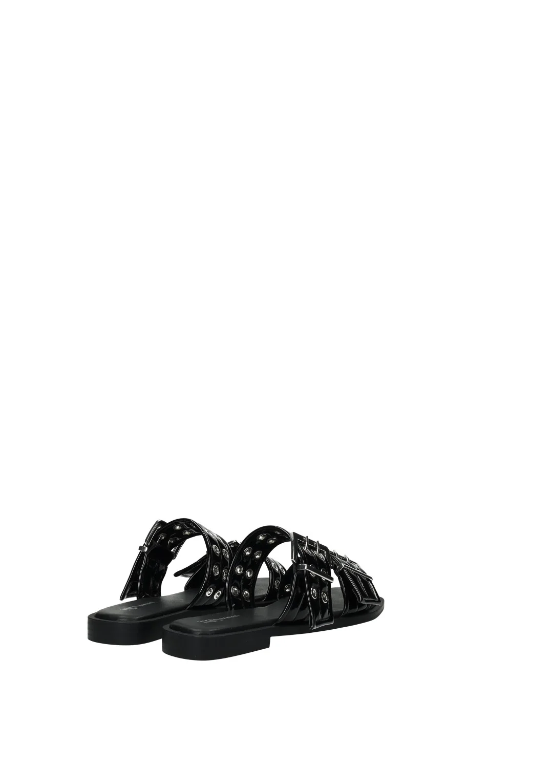 Sandali effetto pelle con doppia fibbia e fondo in gomma.