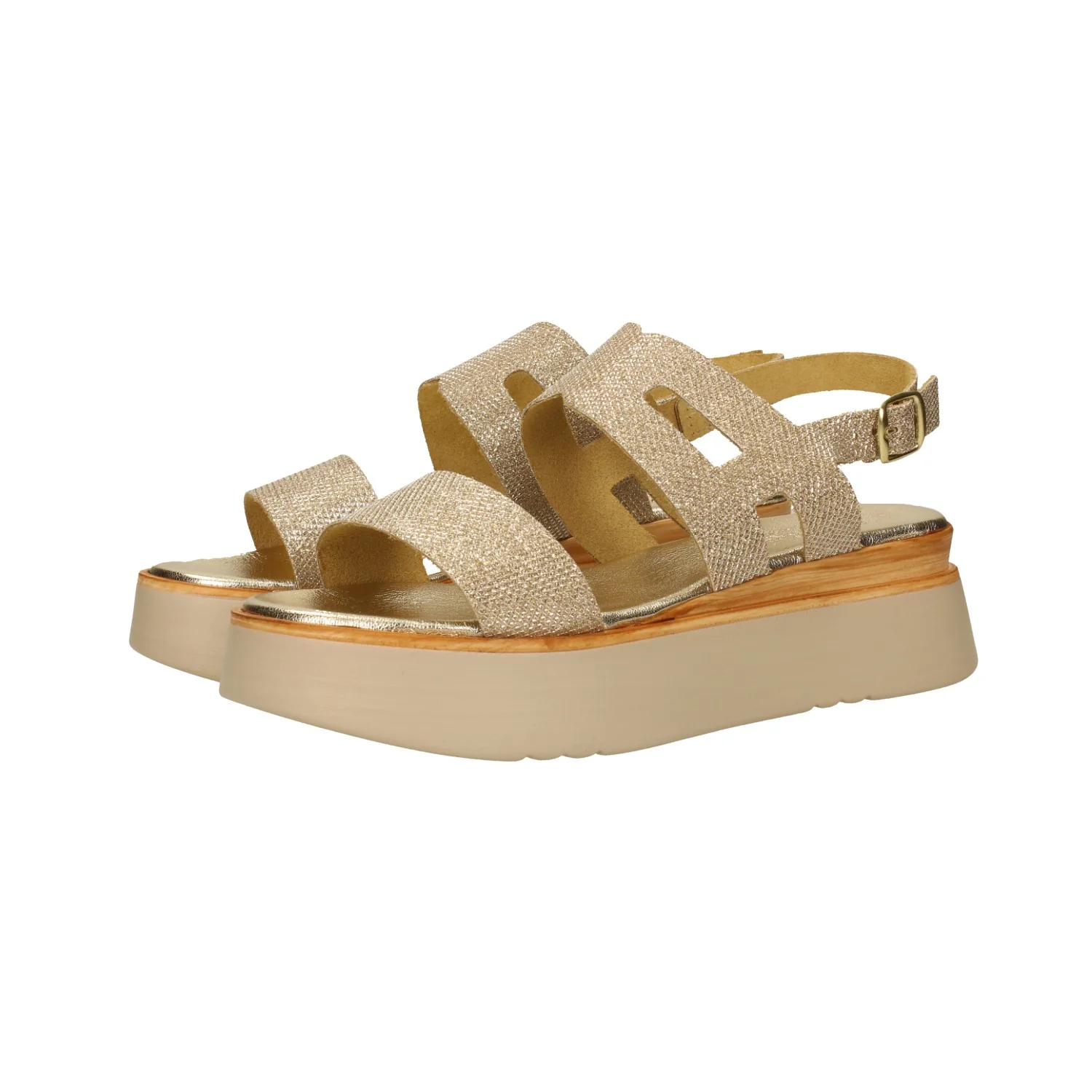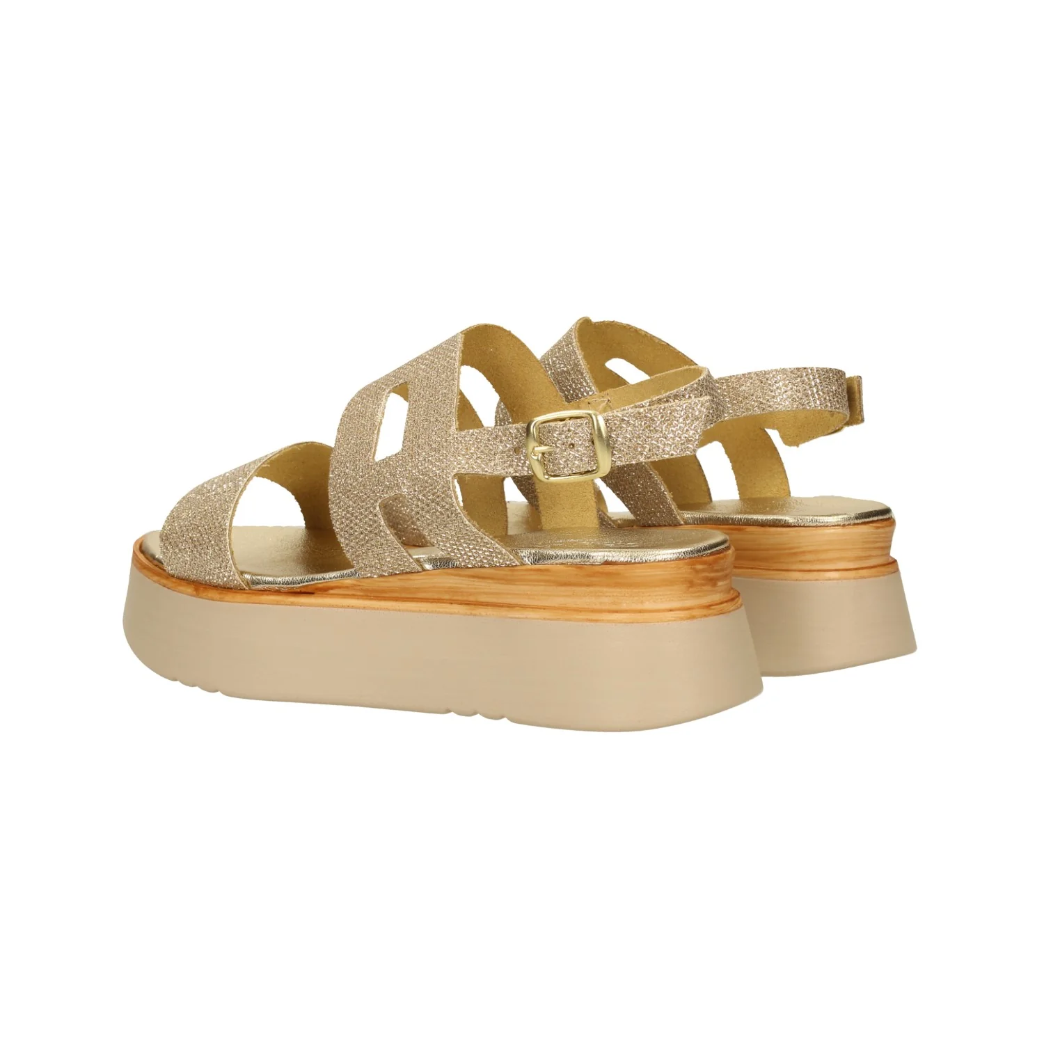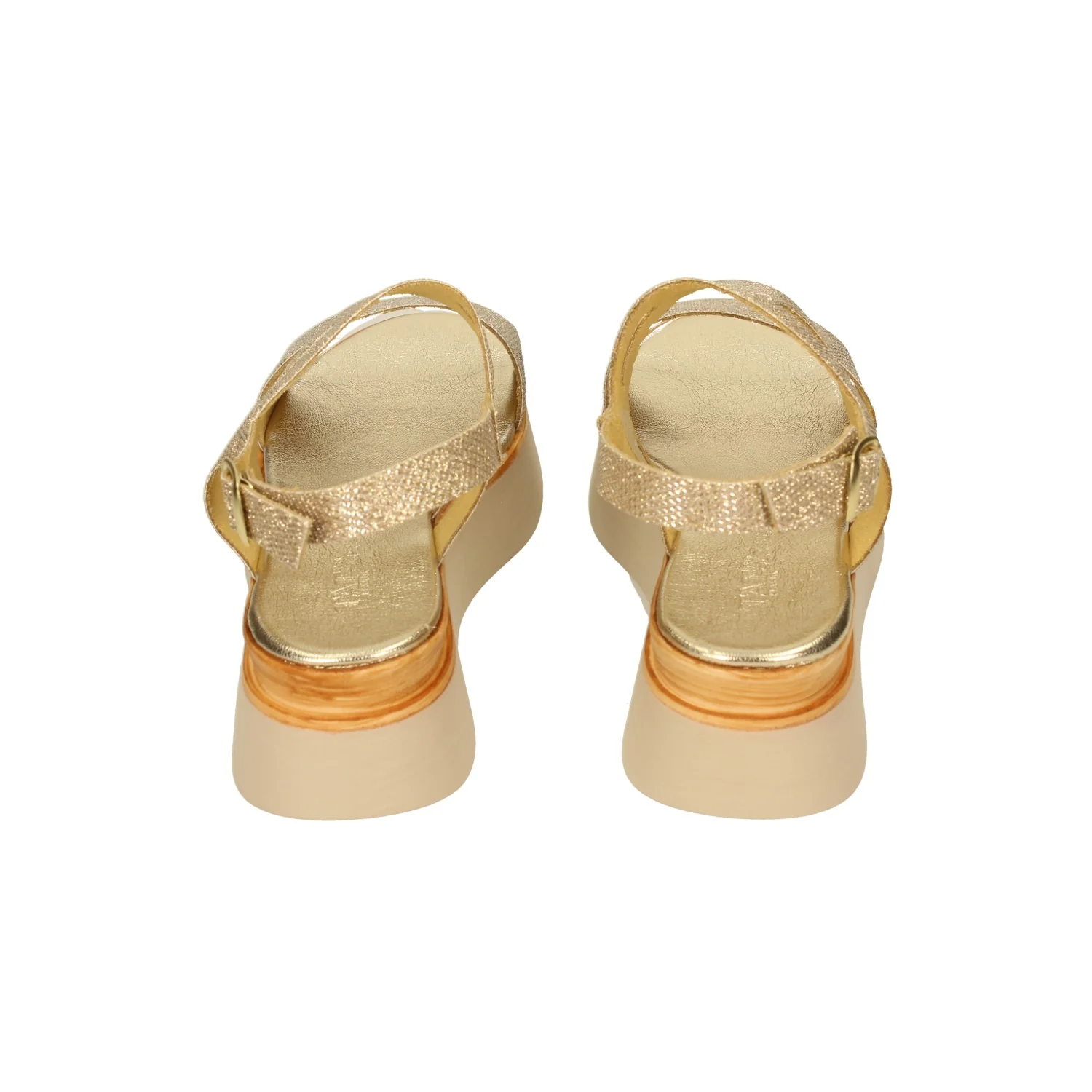 Sandali con doppia fascia.Chiusura con fibbia.Made in Italy. Altezza tacco: 4 cmAltezza plateau: 3 cm