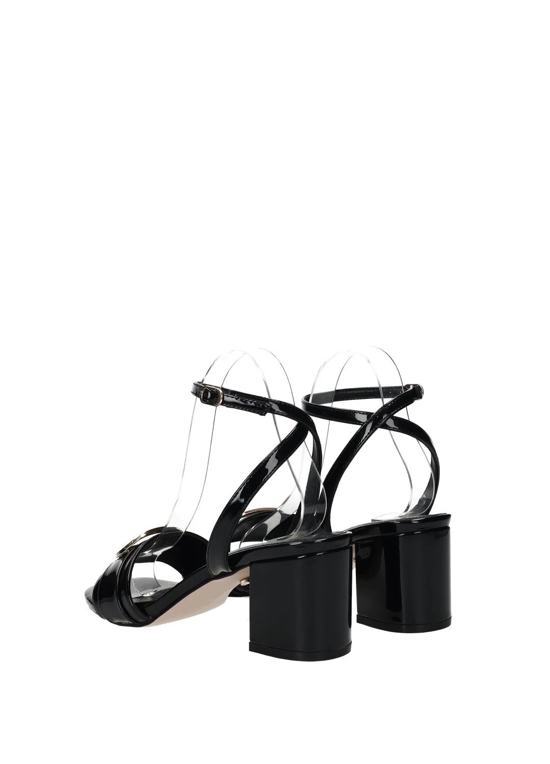 Anna Bw sandalo opentoe in nappa nera e bianca tacco 8 lavorazione artigianale marchigiana