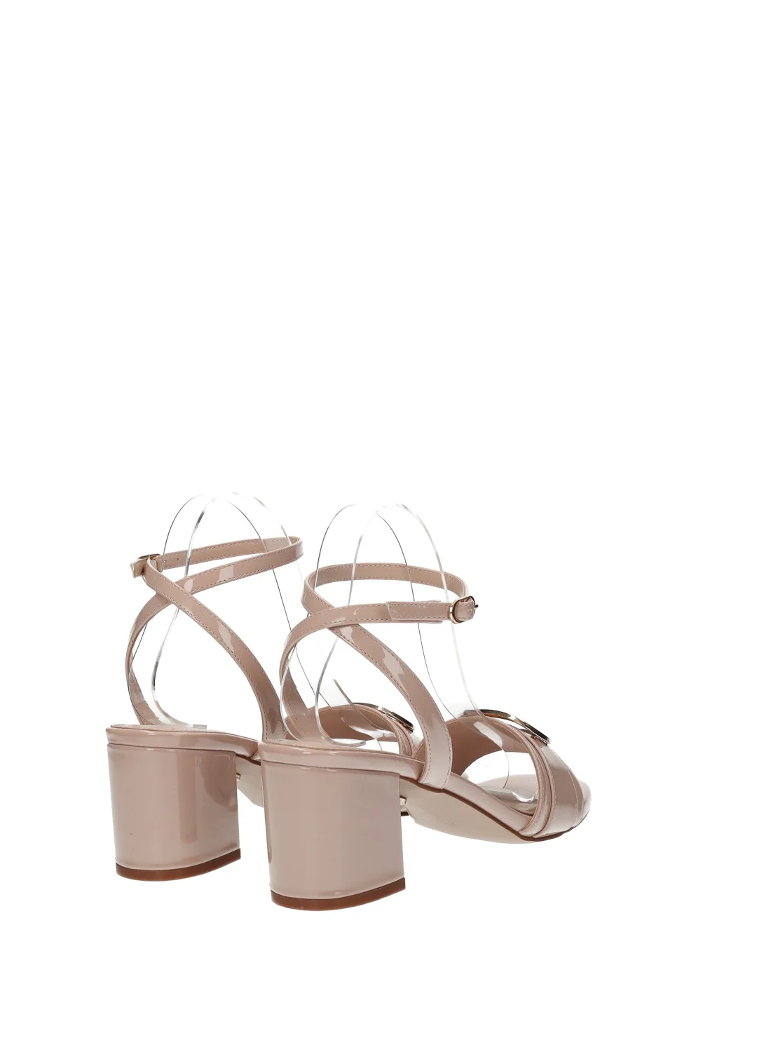 Blanca Cora sandalo chanel in nappa corallo tacco 7 cm lavorazione artigianale