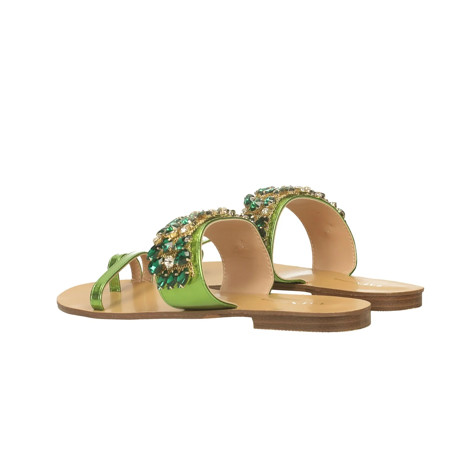 Sandali infradito flat laminati con pietre