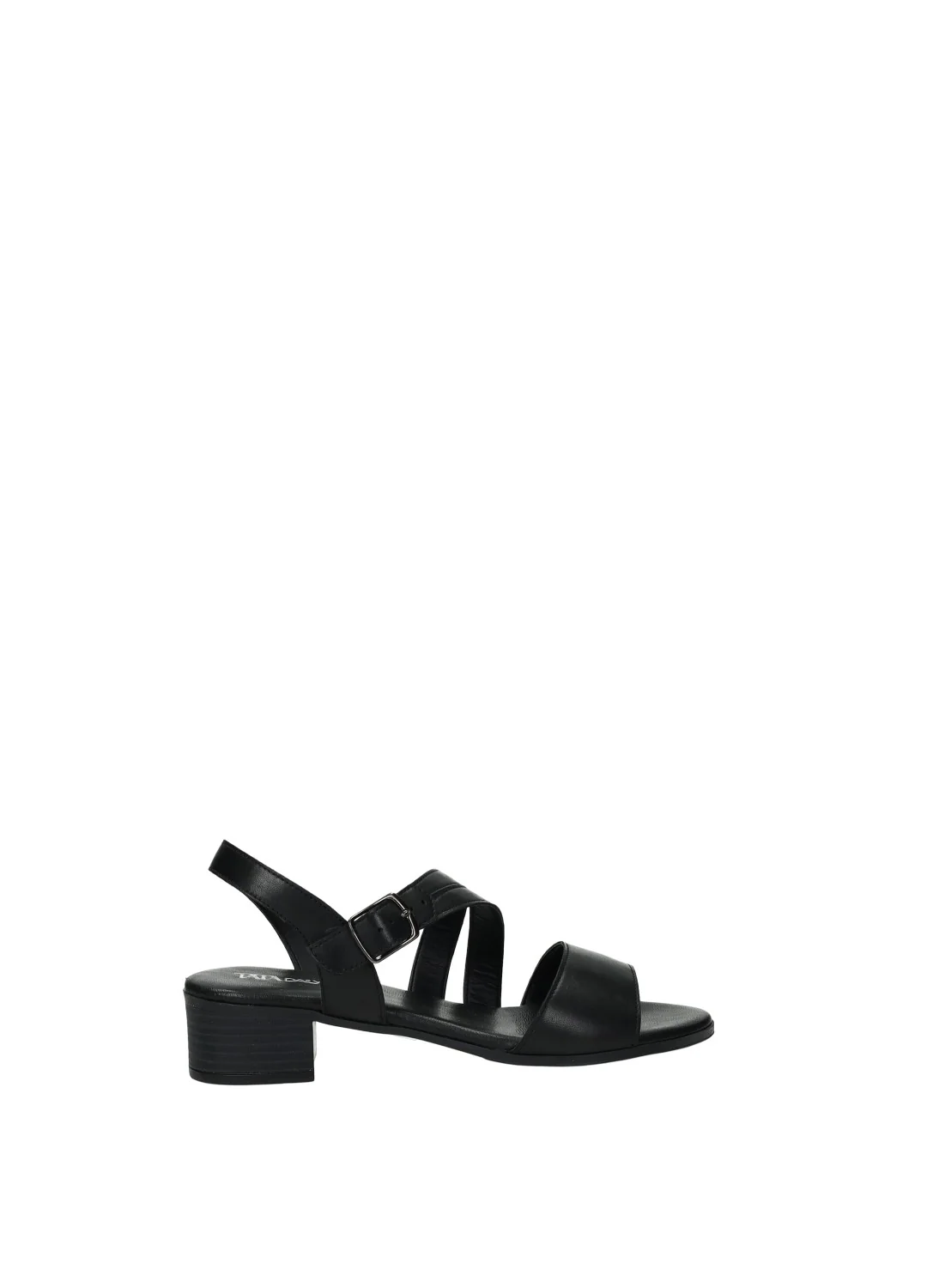 Sandali vera pelle con tacco di 3.5 cm e fondo in gomma.