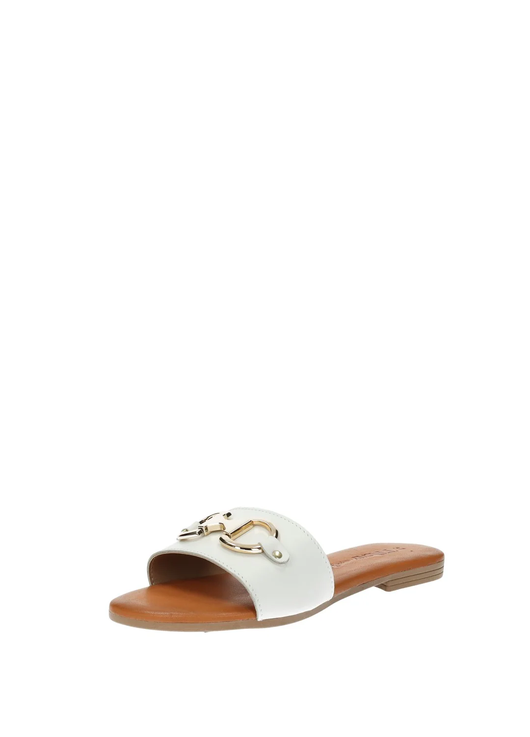 Sandali bassi in vera pelle con morsetto e fondo in gomma.