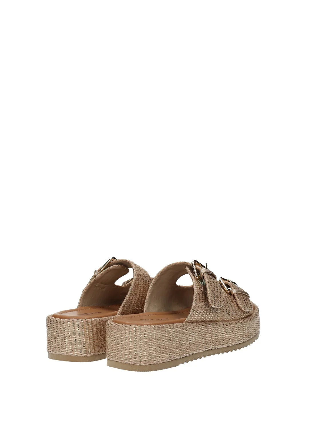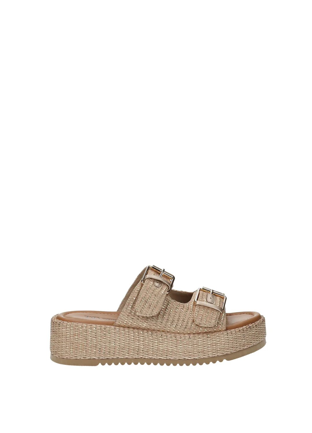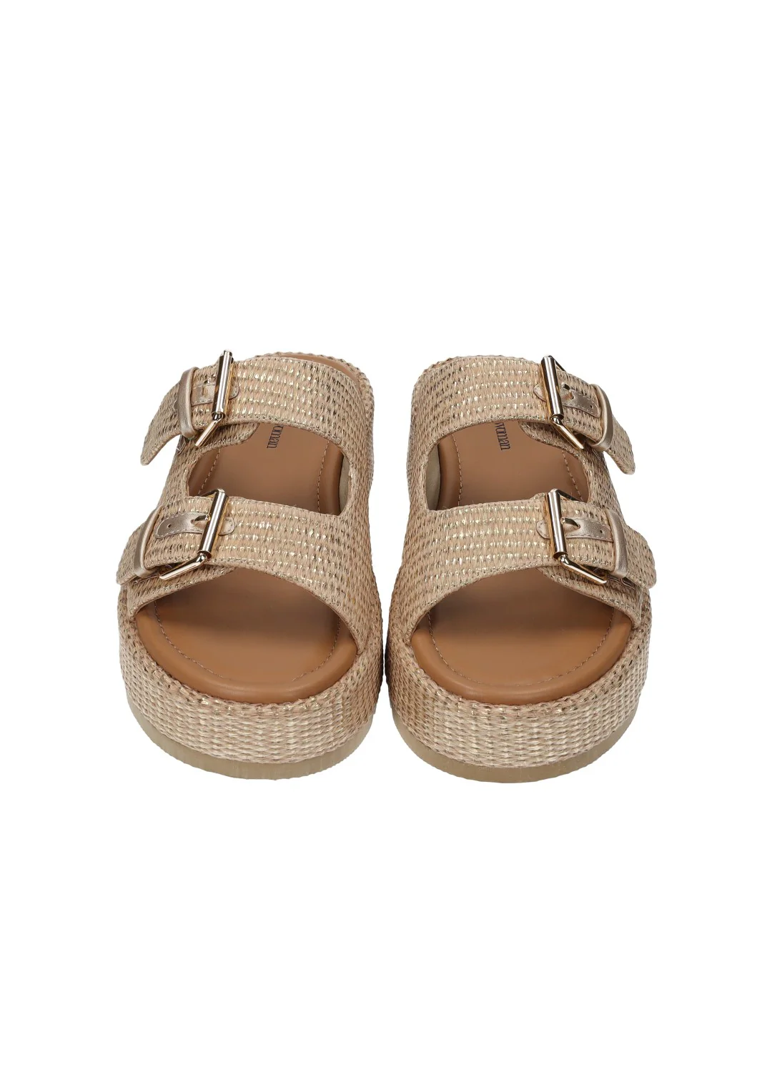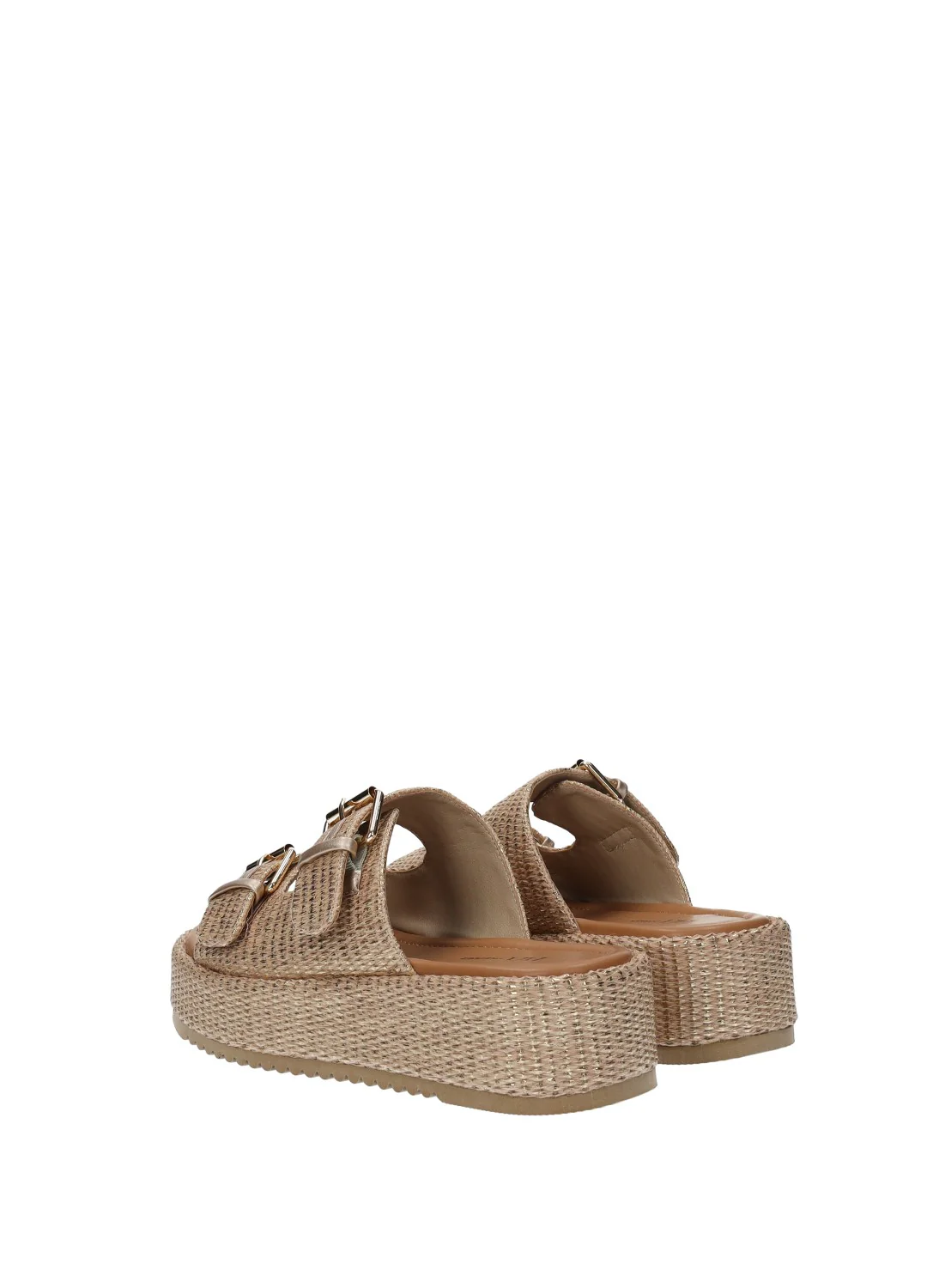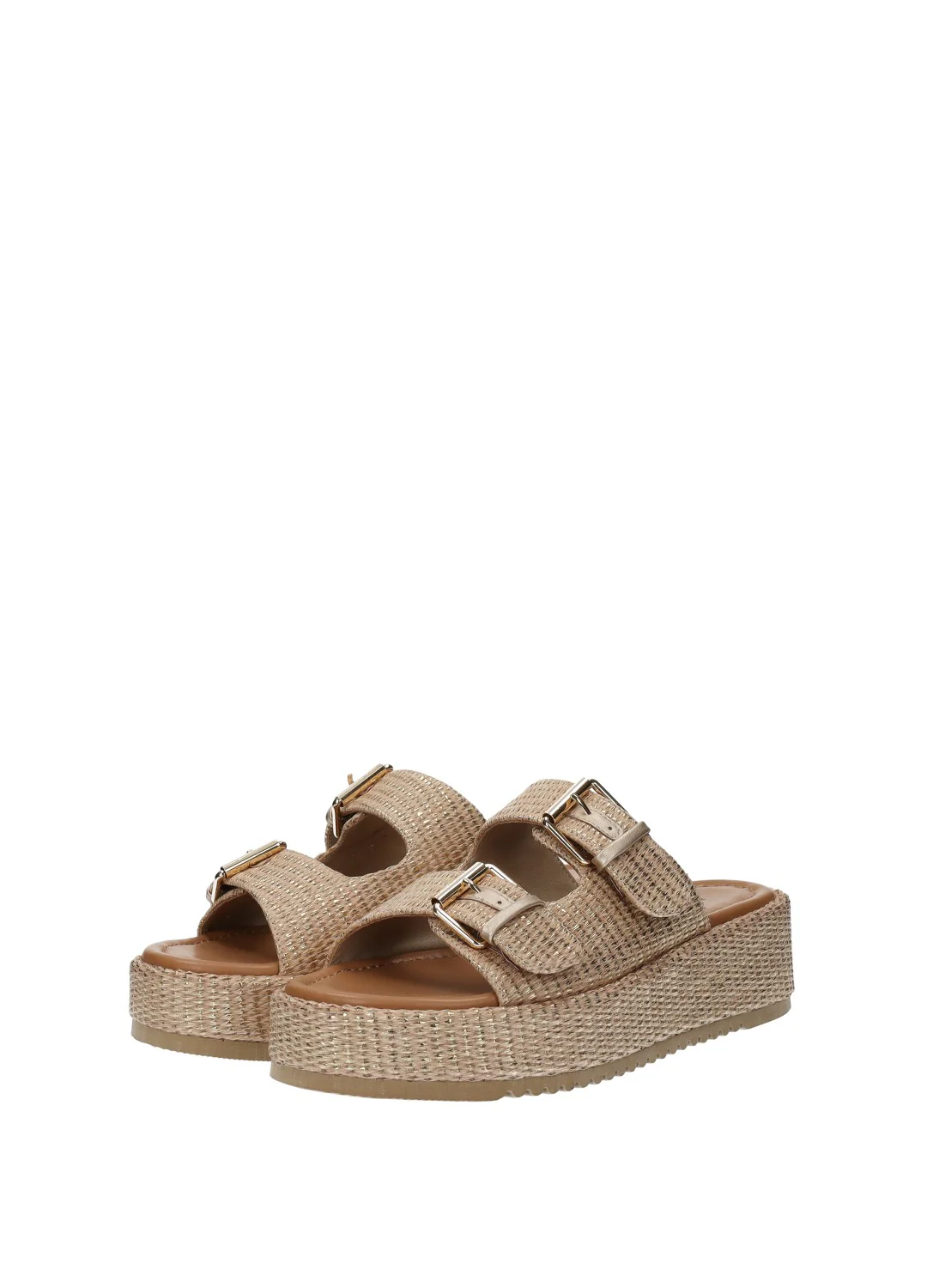 Sandali con doppia fibbia e zeppa media di 5 cm.