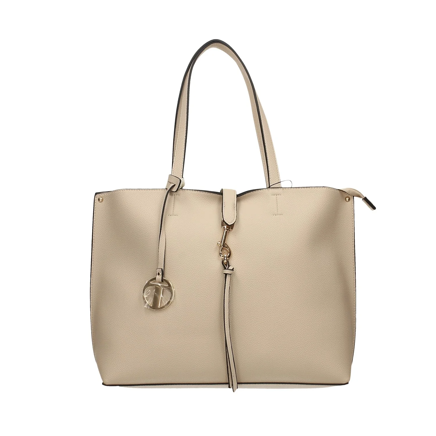 Shopping Bag dotata di doppio manico con accessorio pendente.Borsa realizzata in ecopelle pregiata con trama mono.Logo acciaio.Gancetti e dettagli in acciaio. Larghezza: 43cmProfondità: 14cmAltezza: 31cm