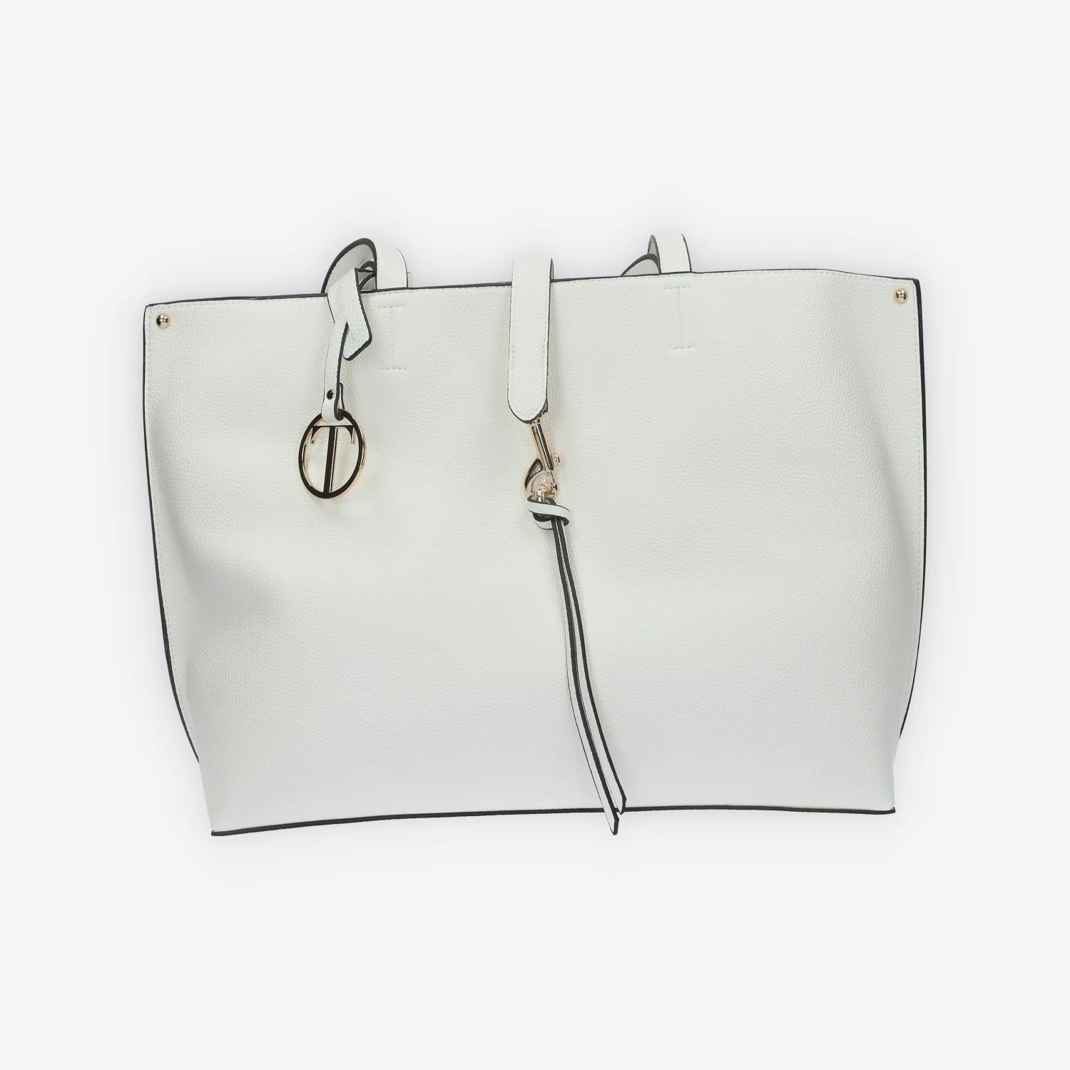 Shopping Bag dotata di doppio manico con accessorio pendente.