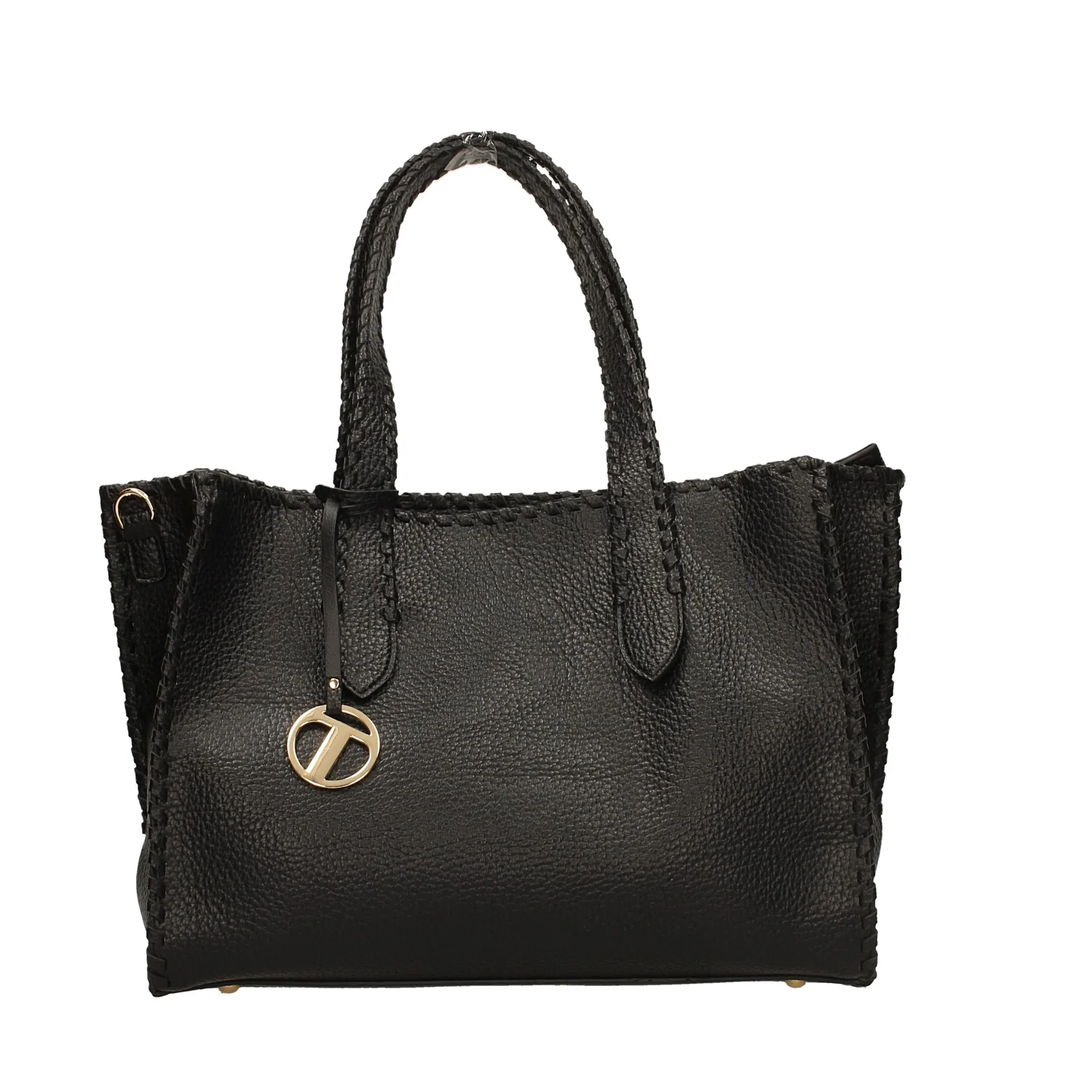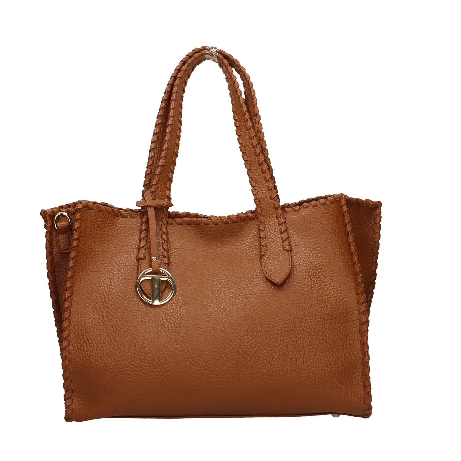 Borsa modello shopping bag.Pendente con logo.Ricamo intrecciato laterale.