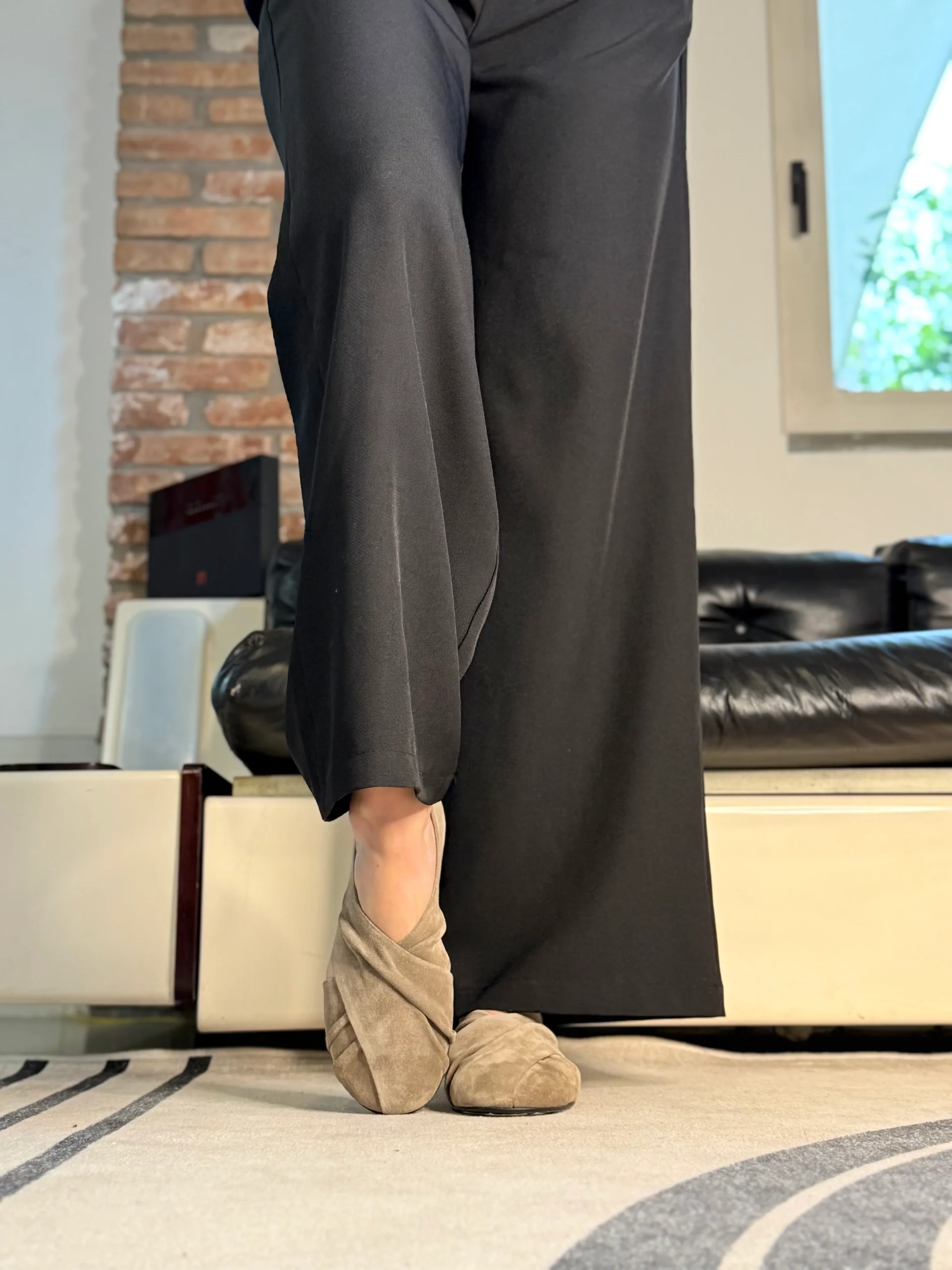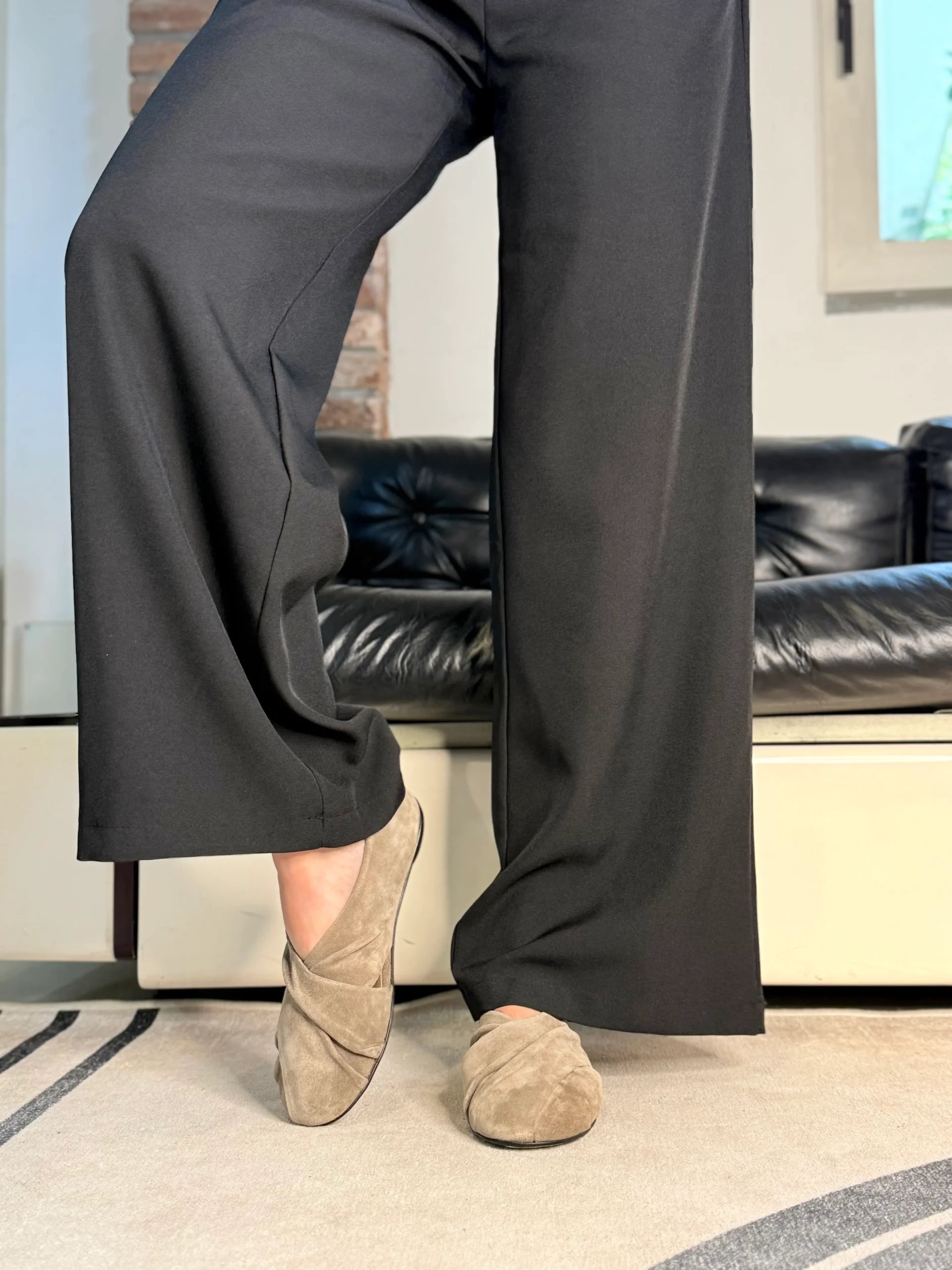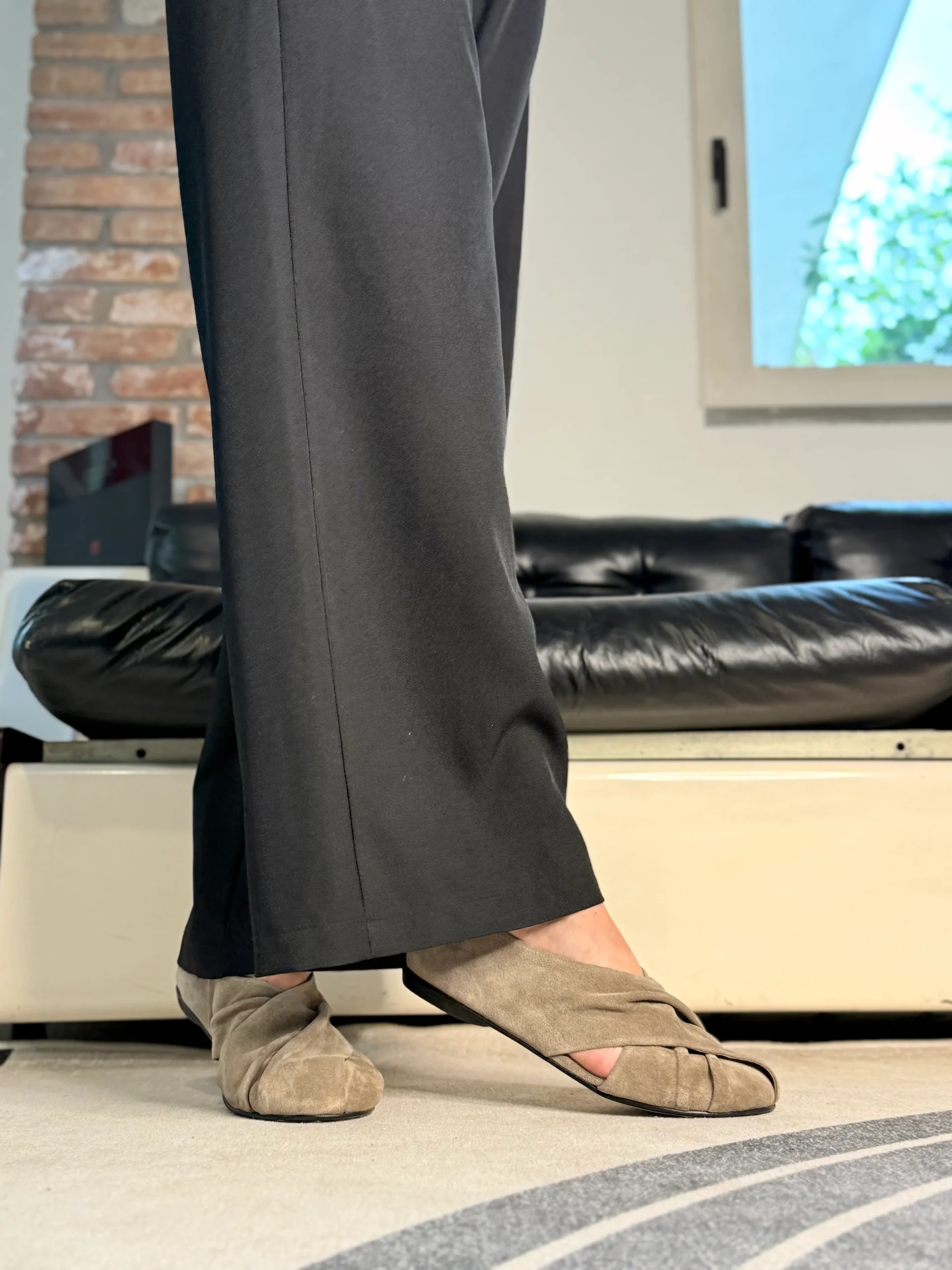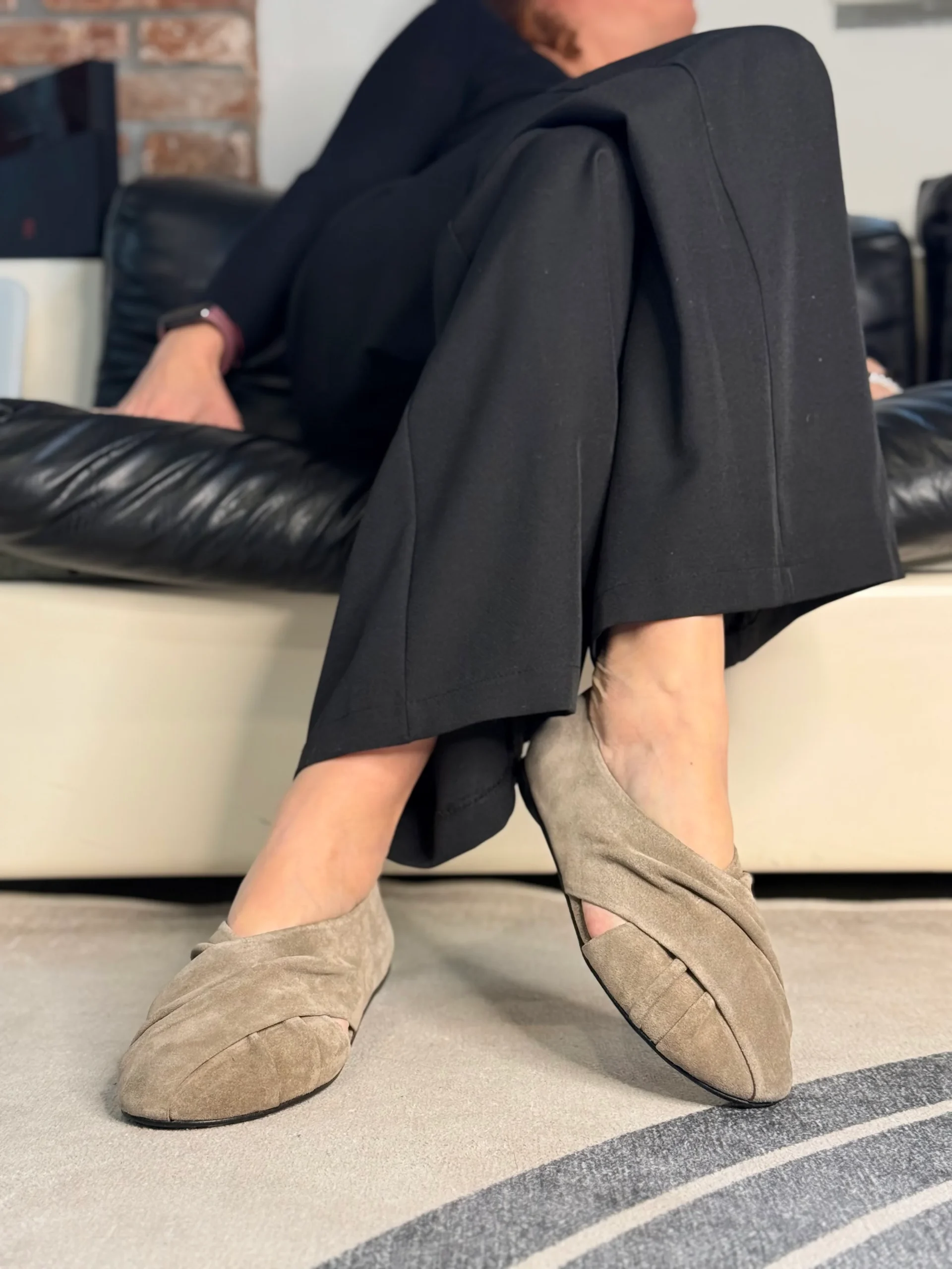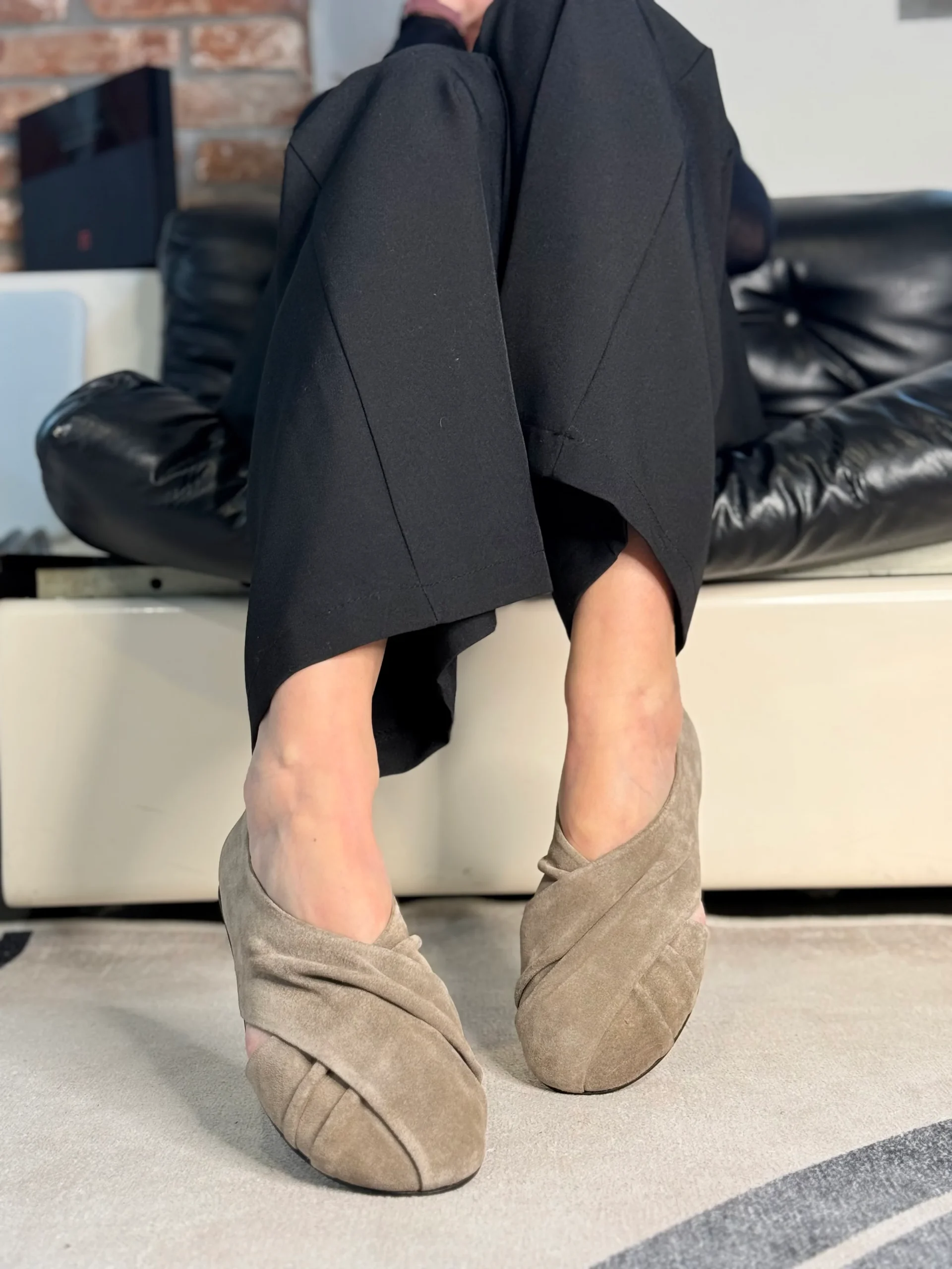 Snokey Smog ballerina in camoscio tortora artigianale marchigiana