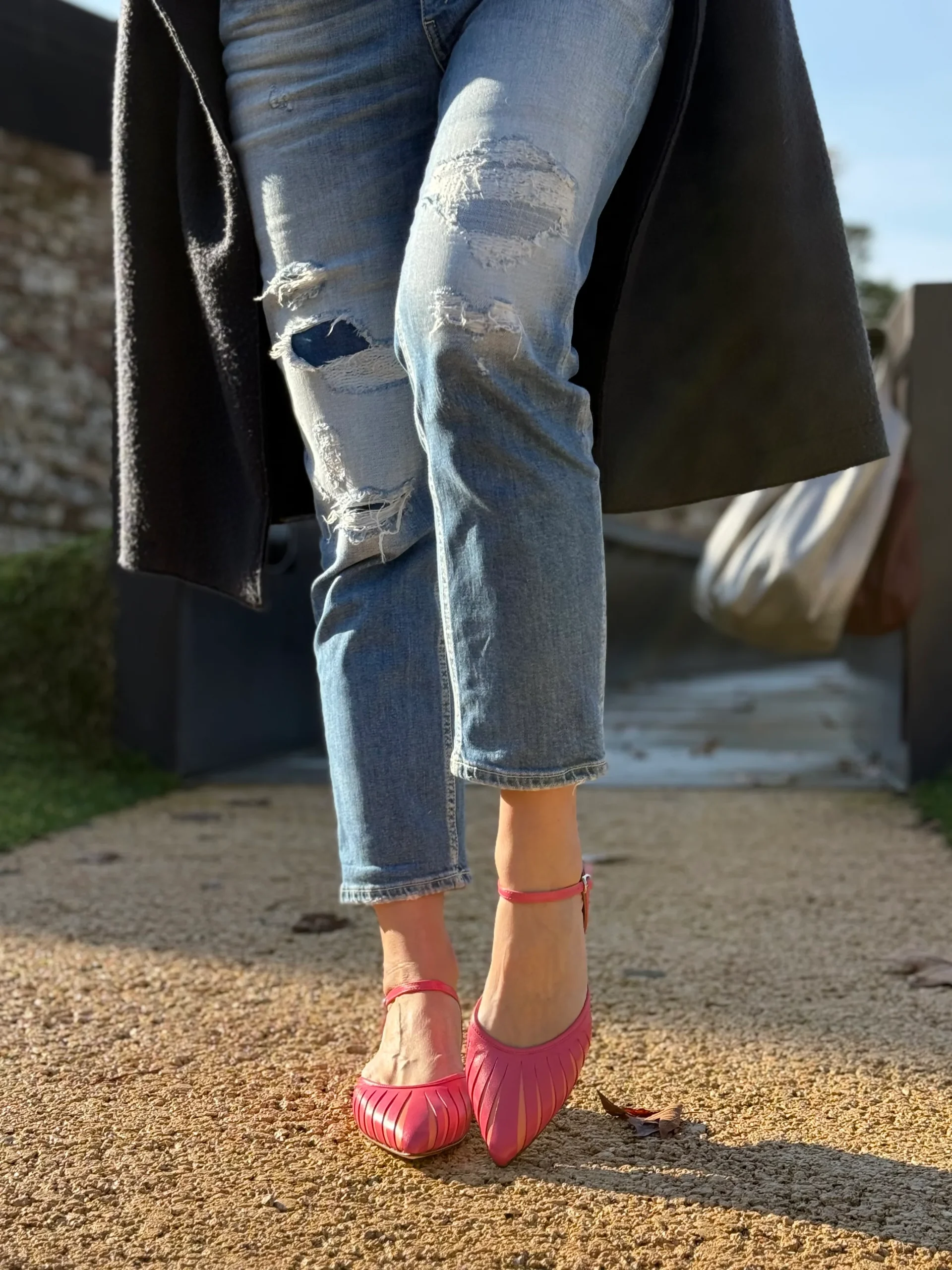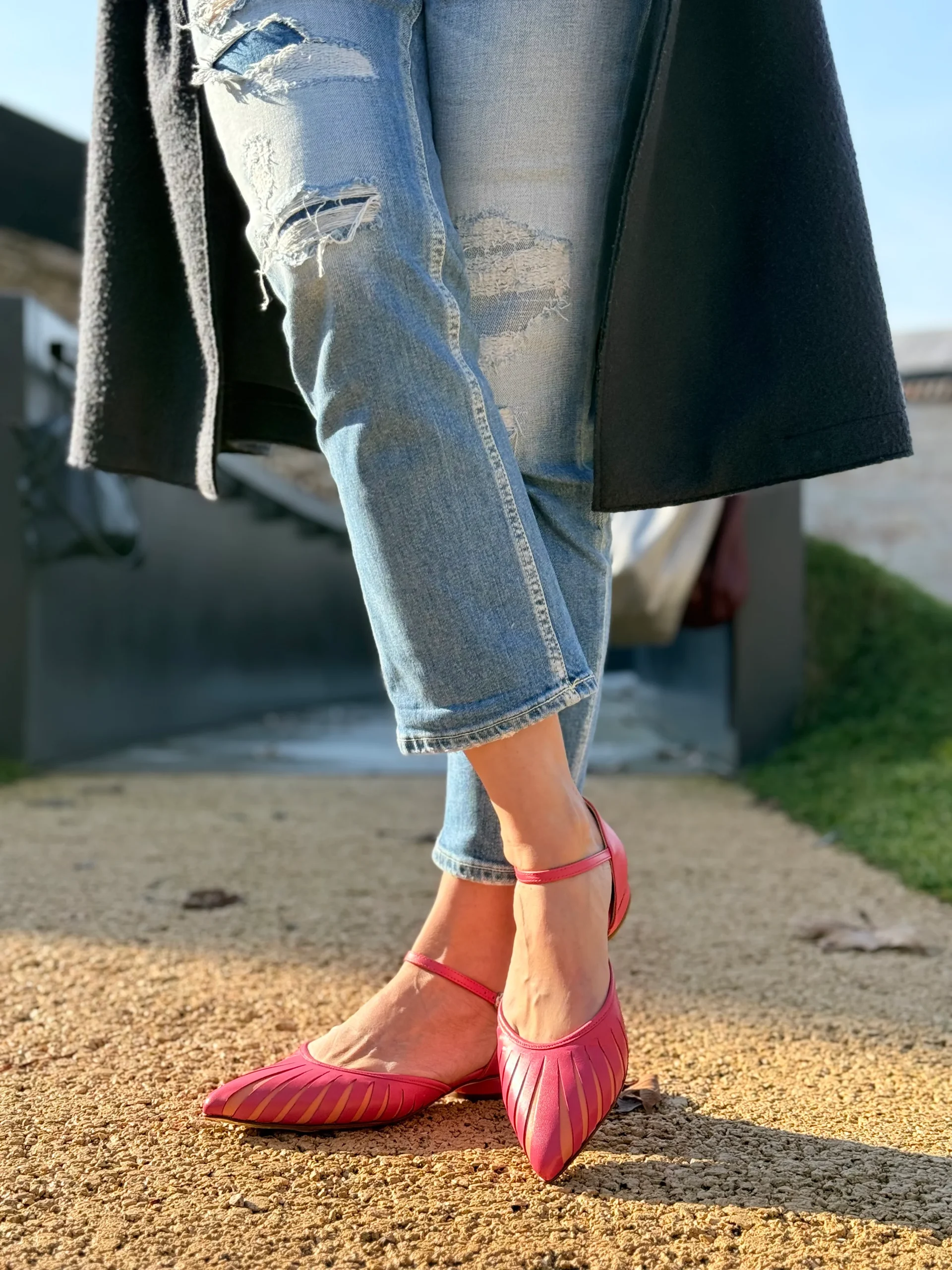 Sophie Barbie รจ una ballerina sofisticata che incarna lโequilibrio perfetto tra raffinatezza e comfort. Si distingue per la sua costruzione artigianale: la tomaia rosa avvolge delicatamente il piede, mentre la mascherina fustellata ciclamino, sapientemente cucita, crea un raffinato contrasto cromatico. La punta leggermente sfilata conferisce unโallure slanciata senza sacrificare il benessere del piede: la calzata […]