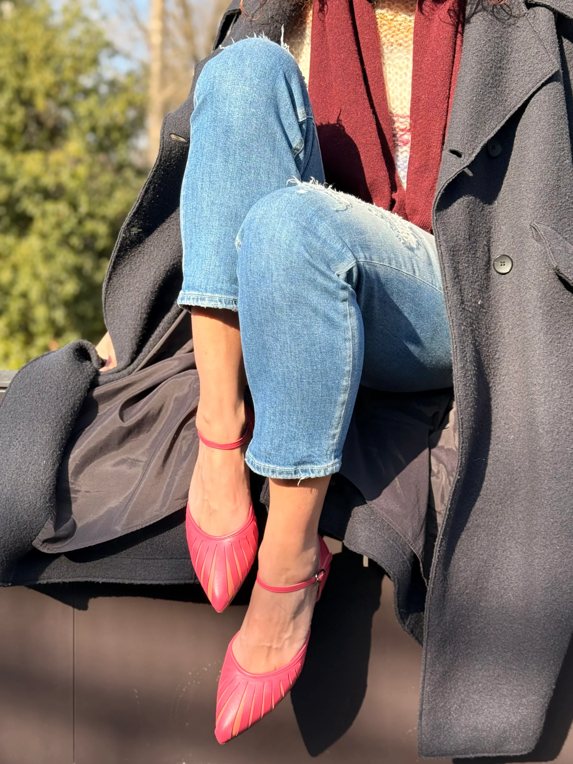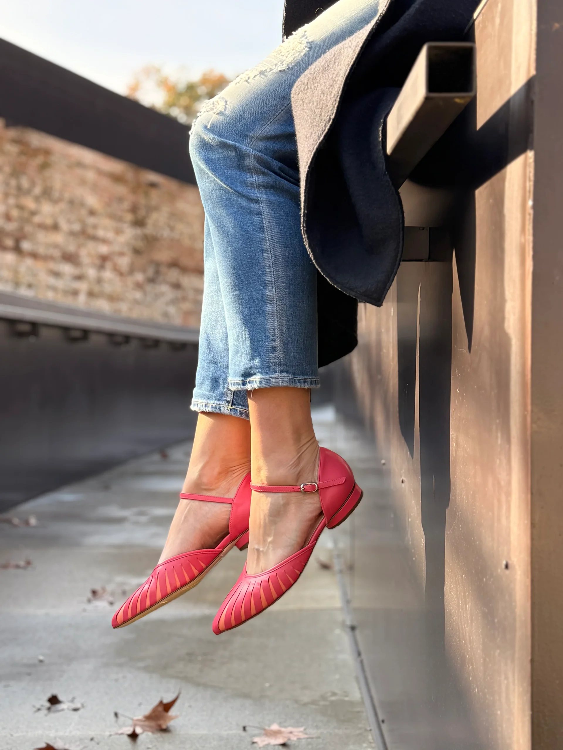 Babu Cherry ballerina in nappa ciliegia tacco 1.5 artigianale