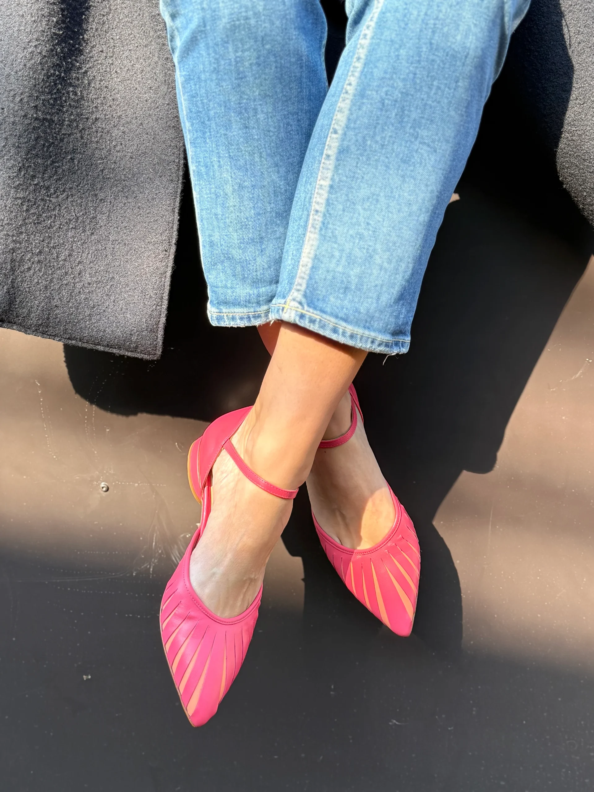 Alsace Red ballerina a punta in nappa rossa con dettaglio lacci tacco 1.5 artigianale toscana