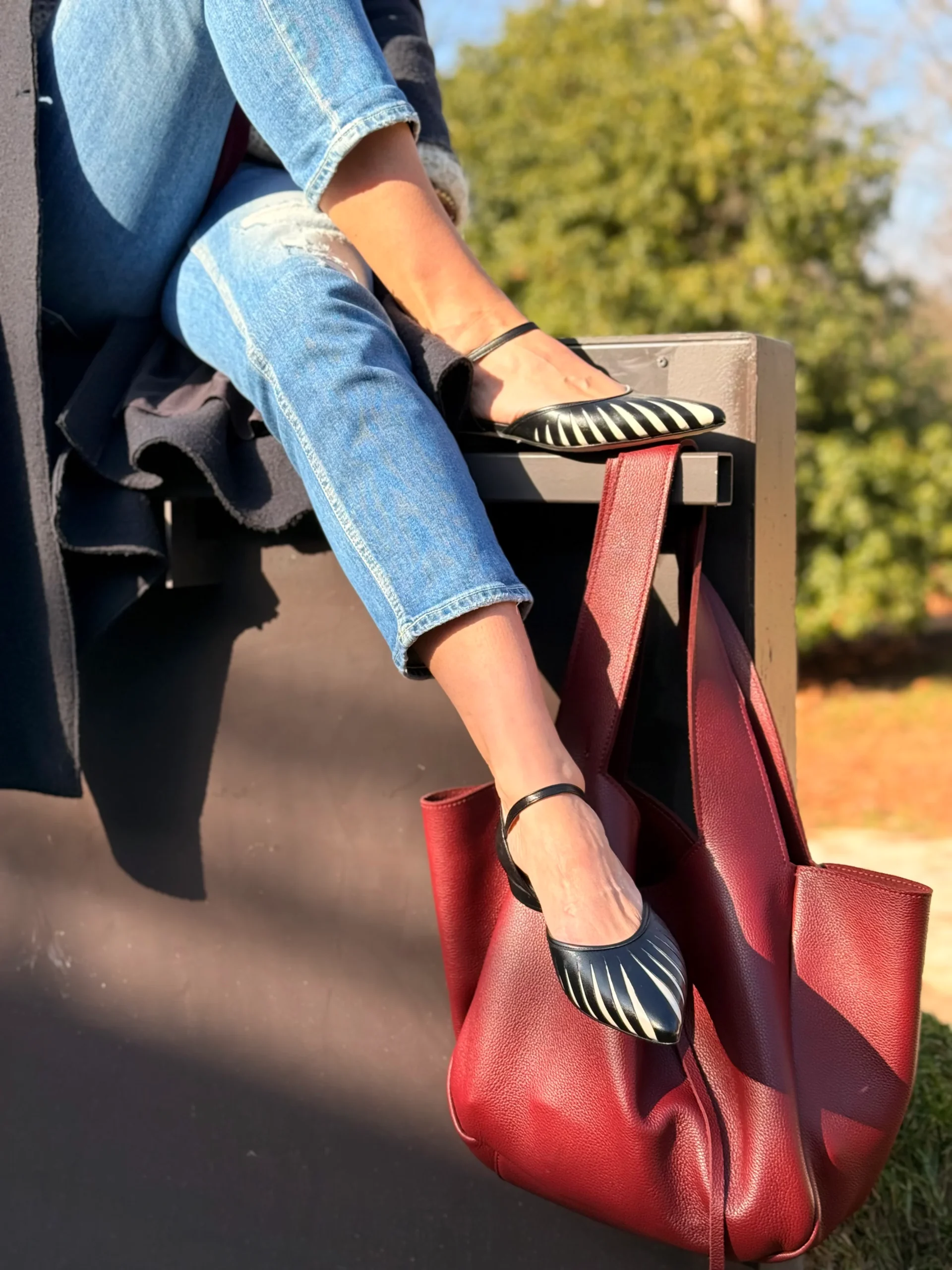 Sophie Bw è una ballerina sofisticata che incarna l’equilibrio perfetto tra raffinatezza e comfort. Realizzata in morbida nappa nera e avorio, si distingue per la sua costruzione artigianale: la tomaia avorio avvolge delicatamente il piede, mentre la mascherina fustellata nera, sapientemente cucita, crea un raffinato contrasto cromatico. La punta leggermente sfilata conferisce un’allure slanciata senza […]