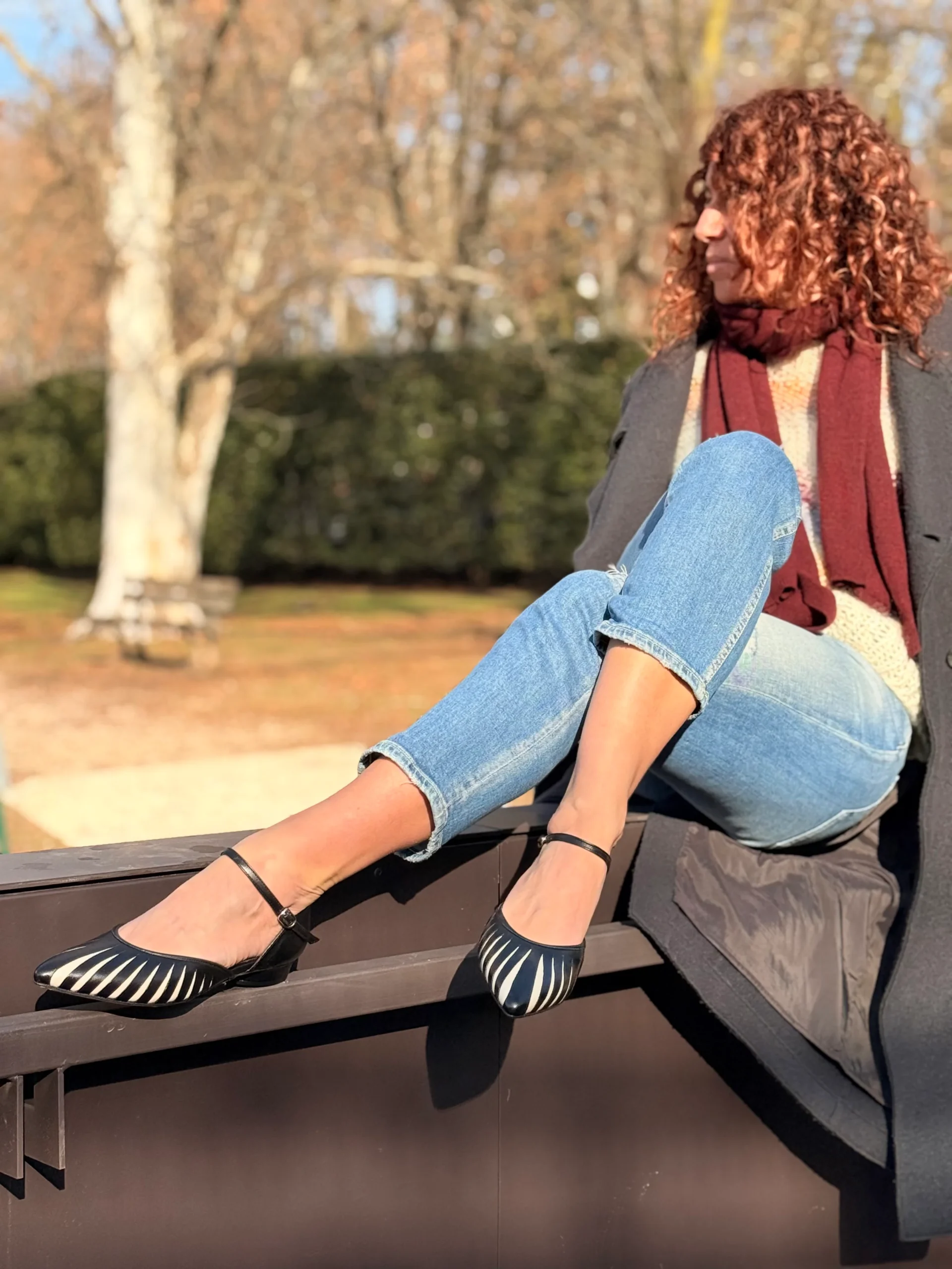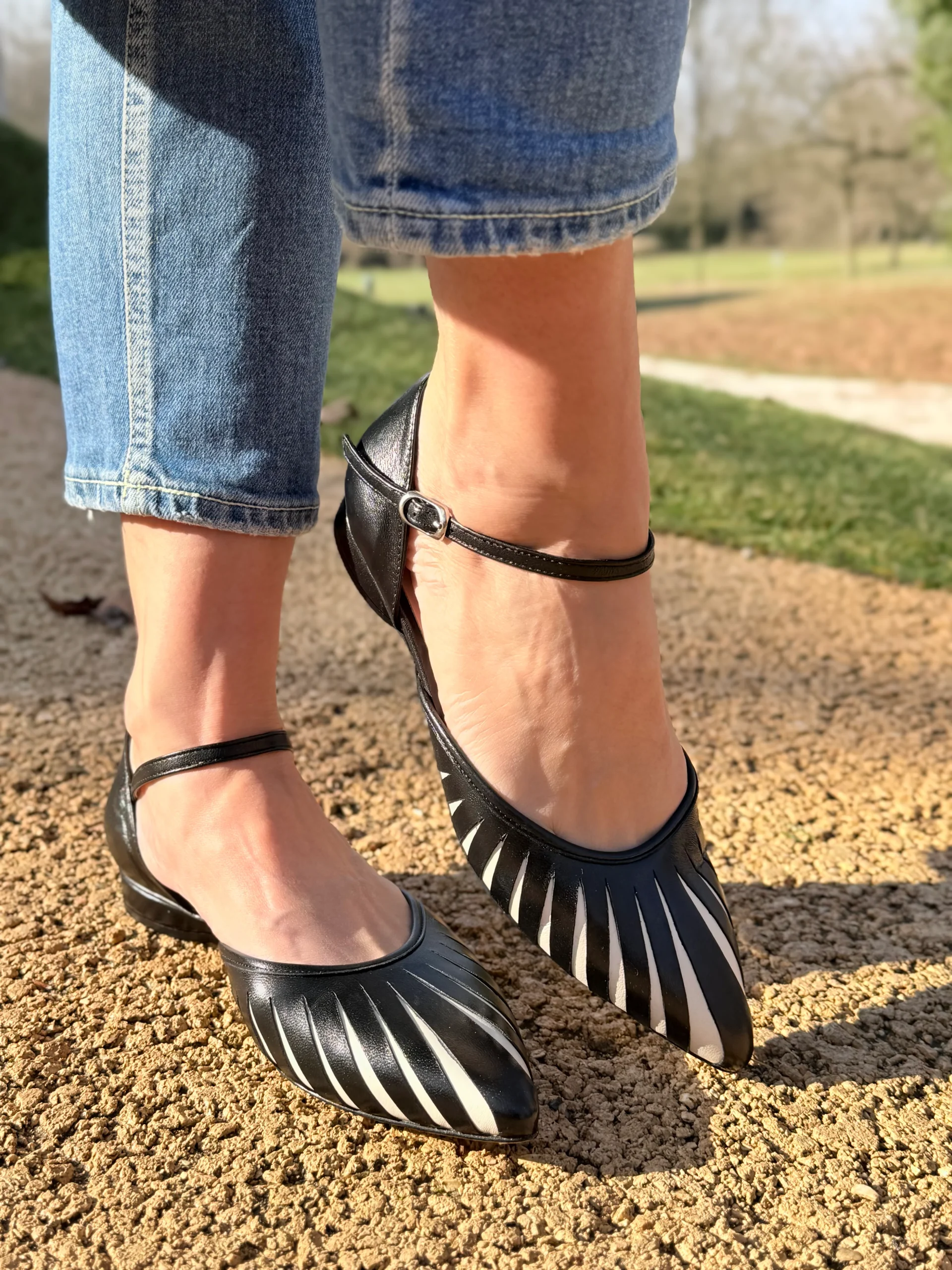 Sophie Bw ballerina in nappa nera e avorio tacco 2 cm artigianale toscana