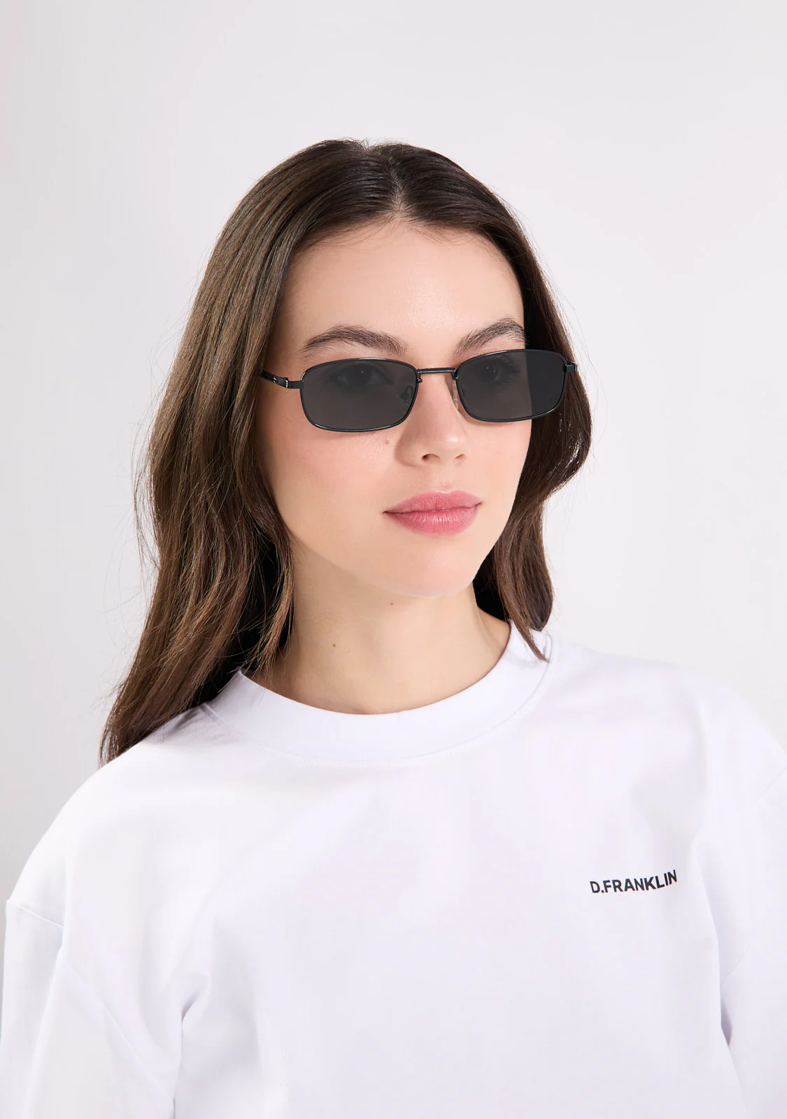 Il design Square Legacy presenta una finitura metallica con un’estetica rettangolare. La sua montatura di colore nero è abbinata a lenti anti-riflesso effetto fumo che permettono una vista sottile e definiscono i tratti del viso. La parte anteriore misura 142 mm e la larghezza della lente è di 56 mm. Le tempie sono lunghe 140 mm e incorporano i nostri dettagli distintivi. Un pezzo retro ma minimalista per incorniciare qualsiasi outfit.