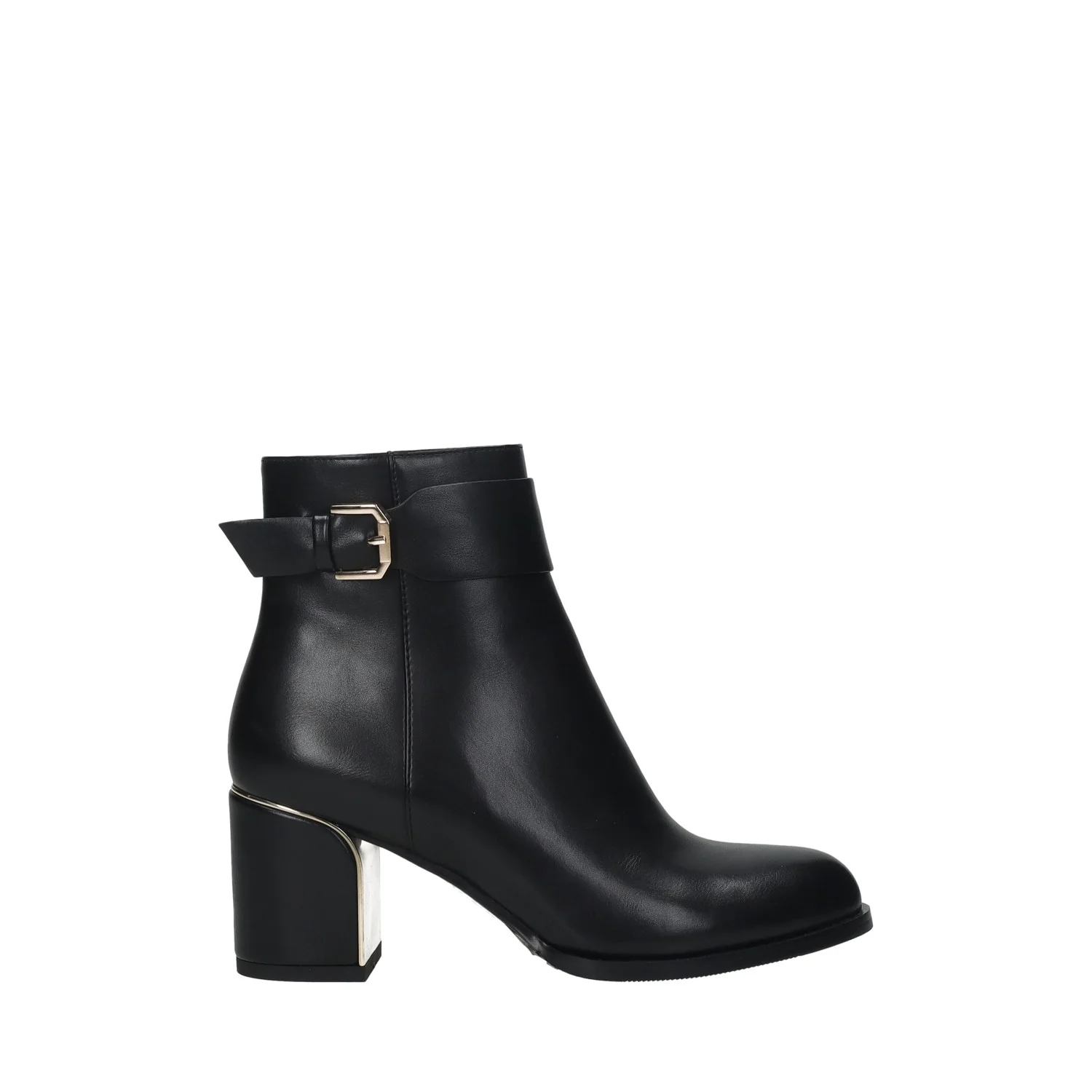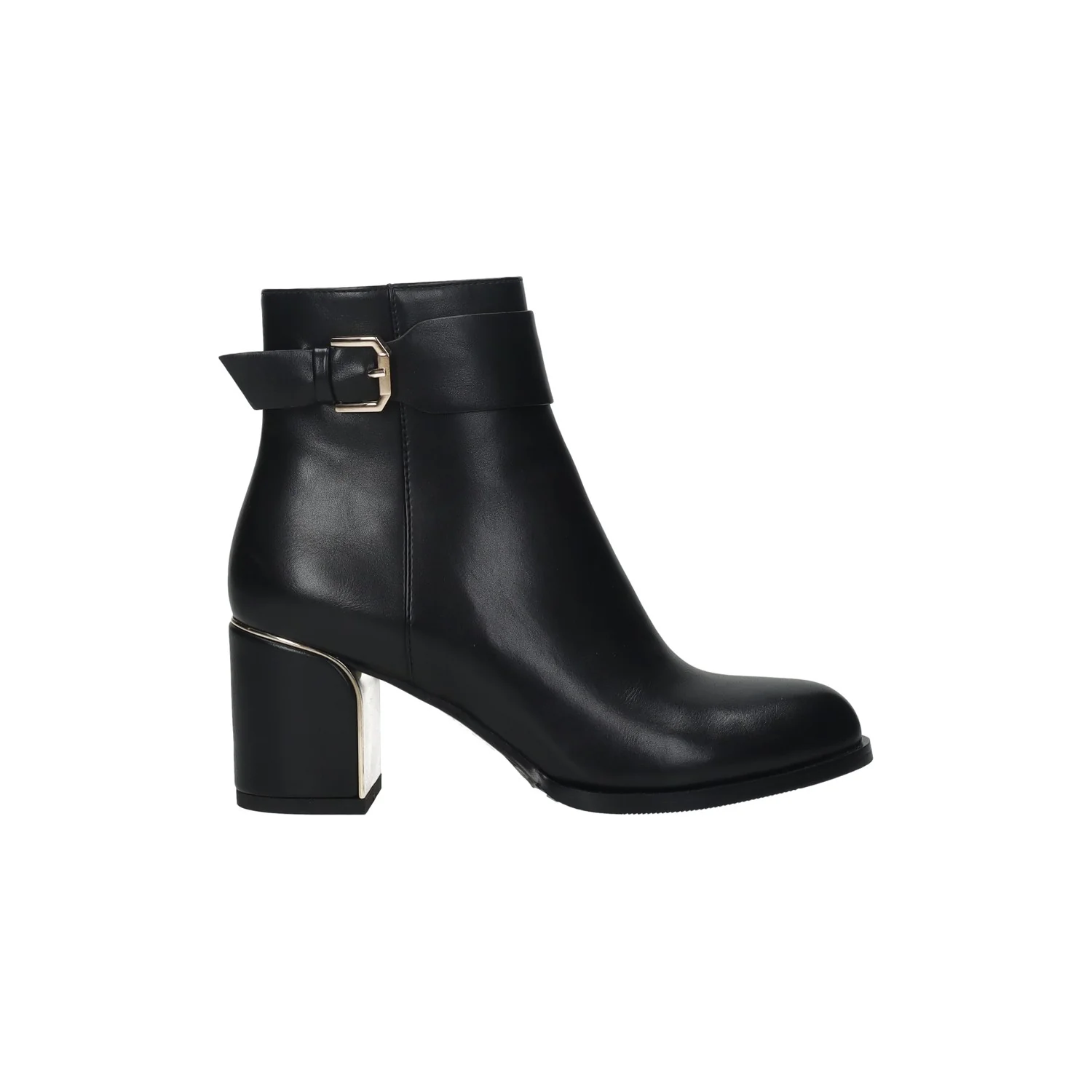 Stivaletti in ecopelle con tacco di 6 cm e cinturino alla caviglia.