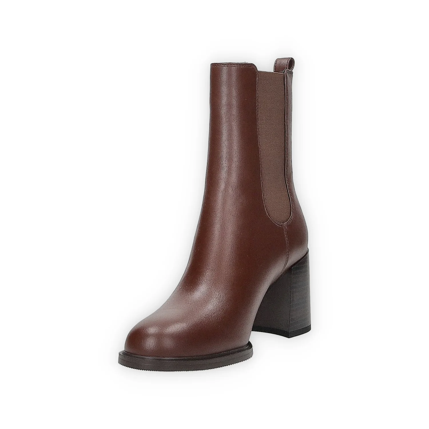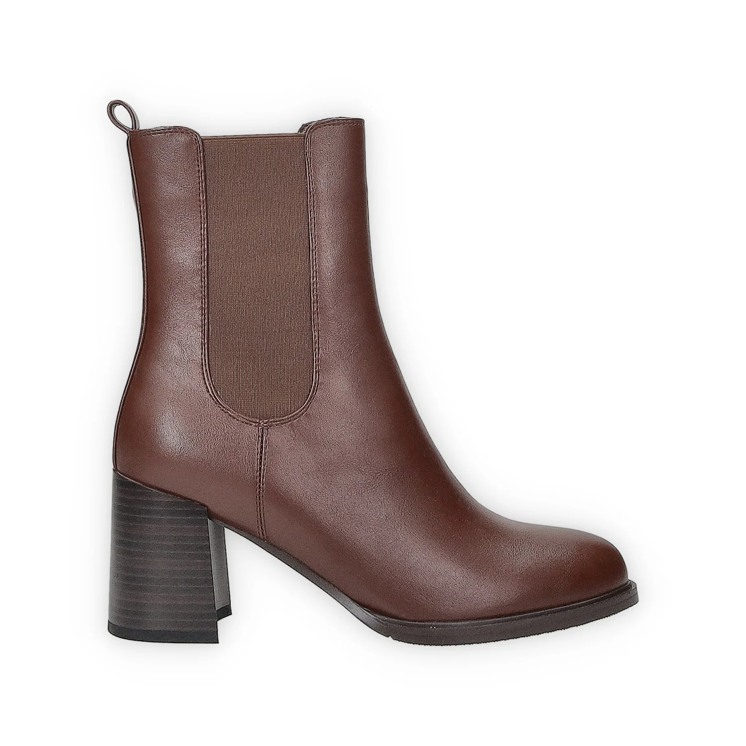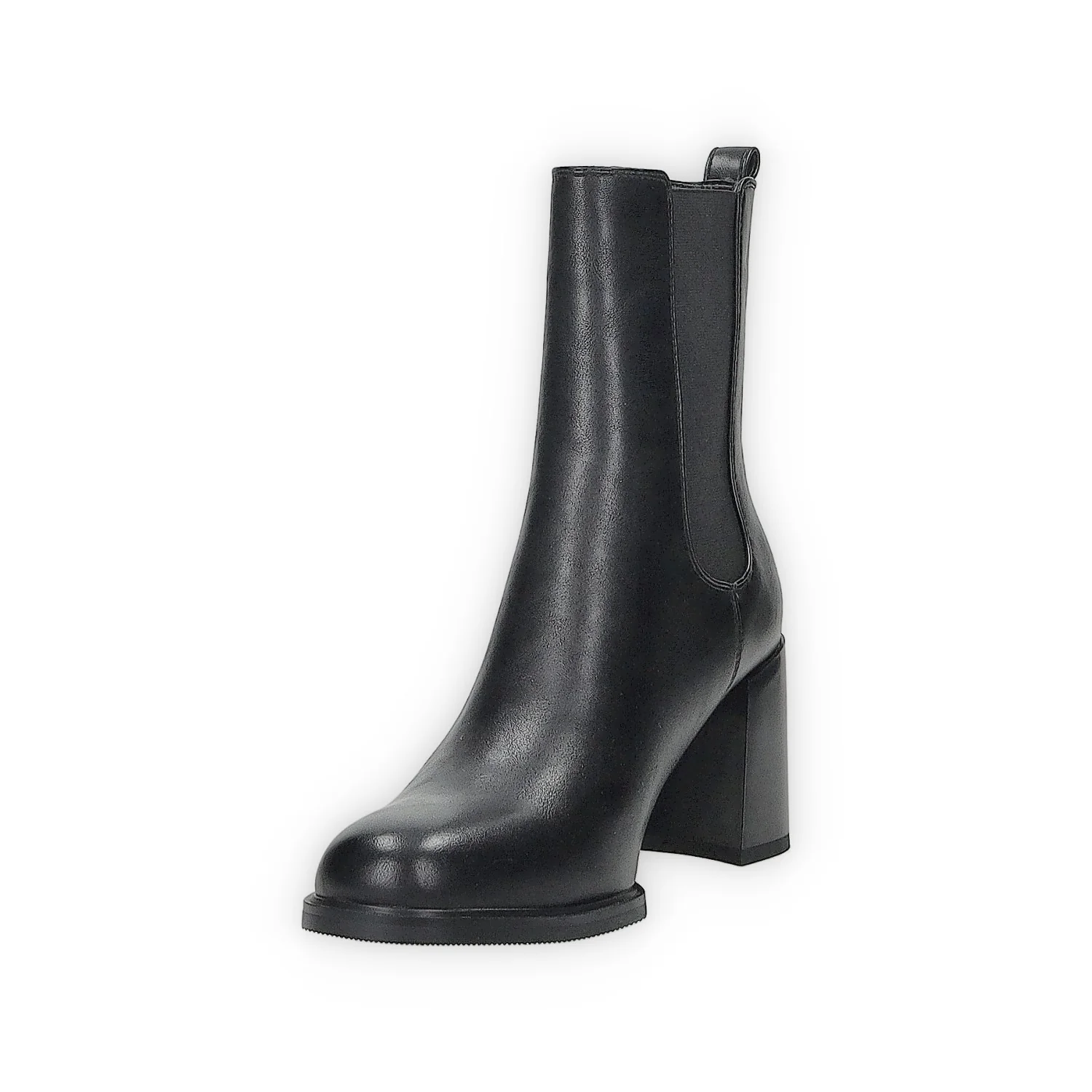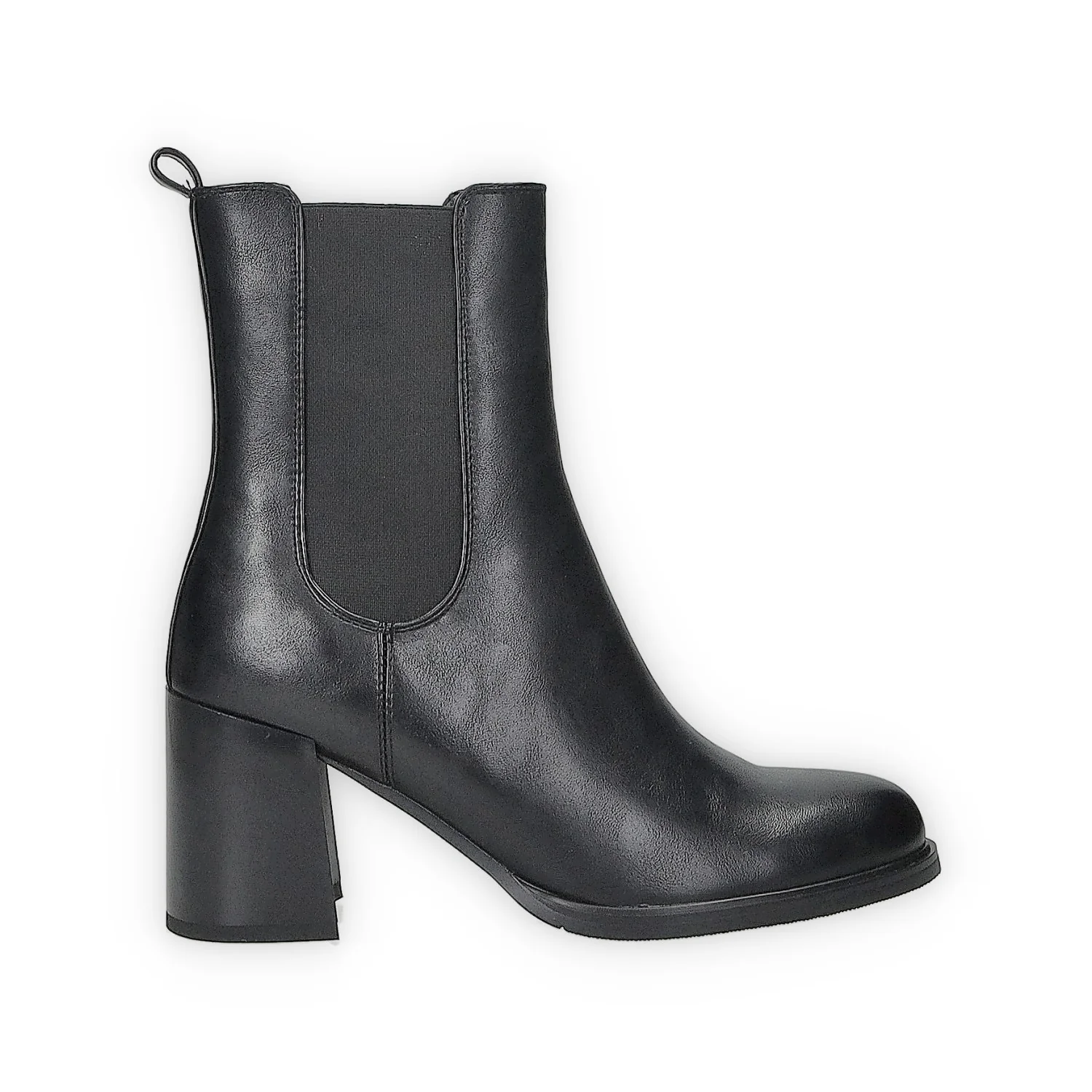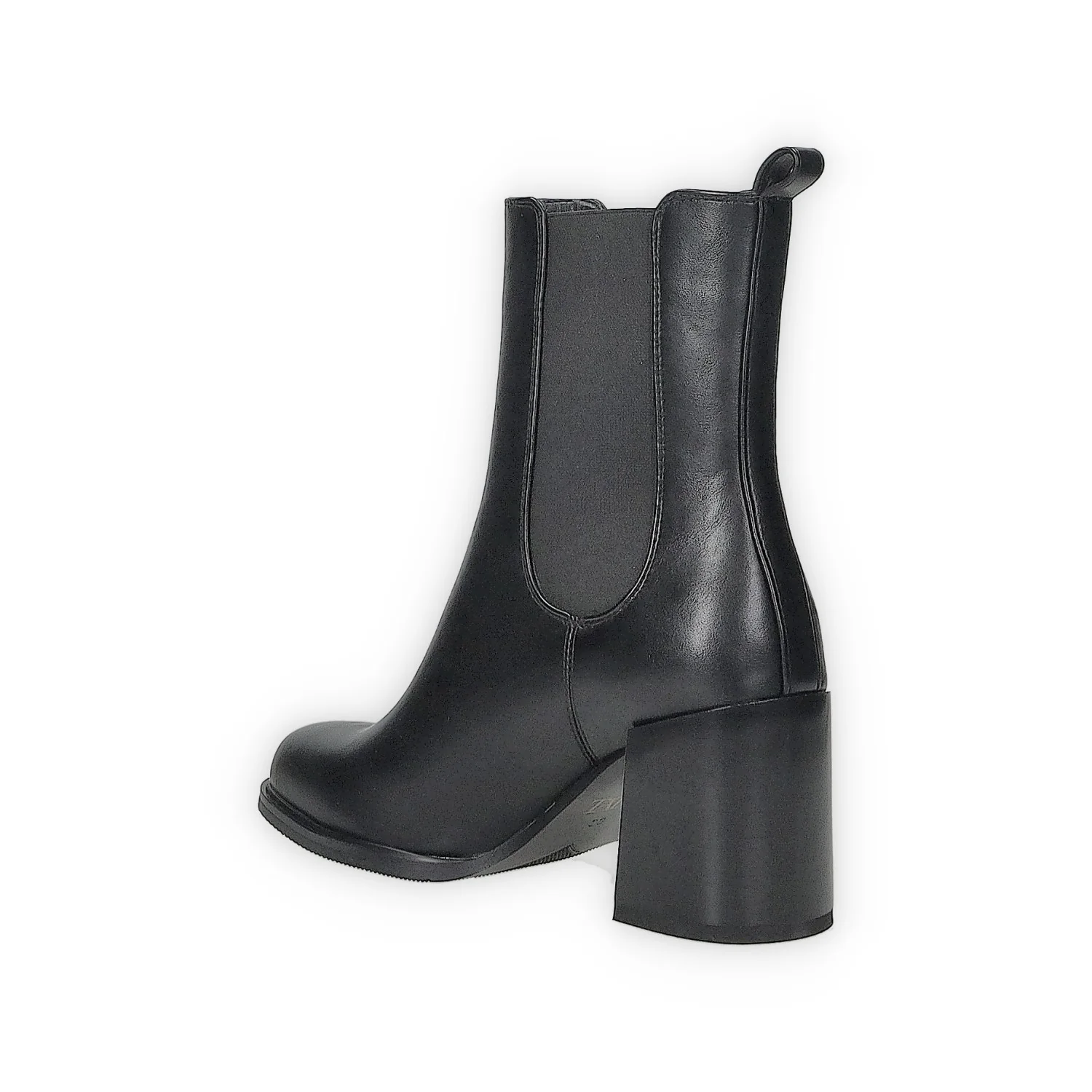 Stivaletti in ecopelle con tacco di 6 cm. fasce elastiche laterali e tirante sul retro