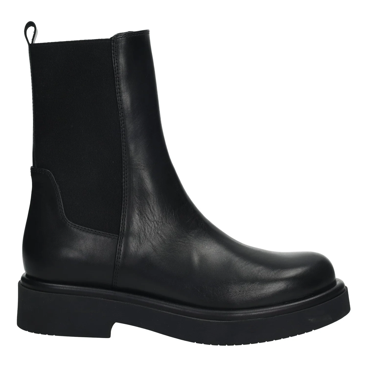 Stivaletti in vera pelle.Fasce elastiche laterali. e tirante sul retro.
