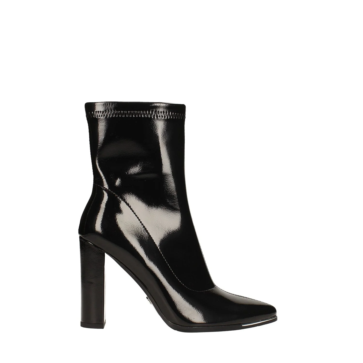 Stivaletti in vernice con profilo metallico in punta. Tacco alto 10.5cm