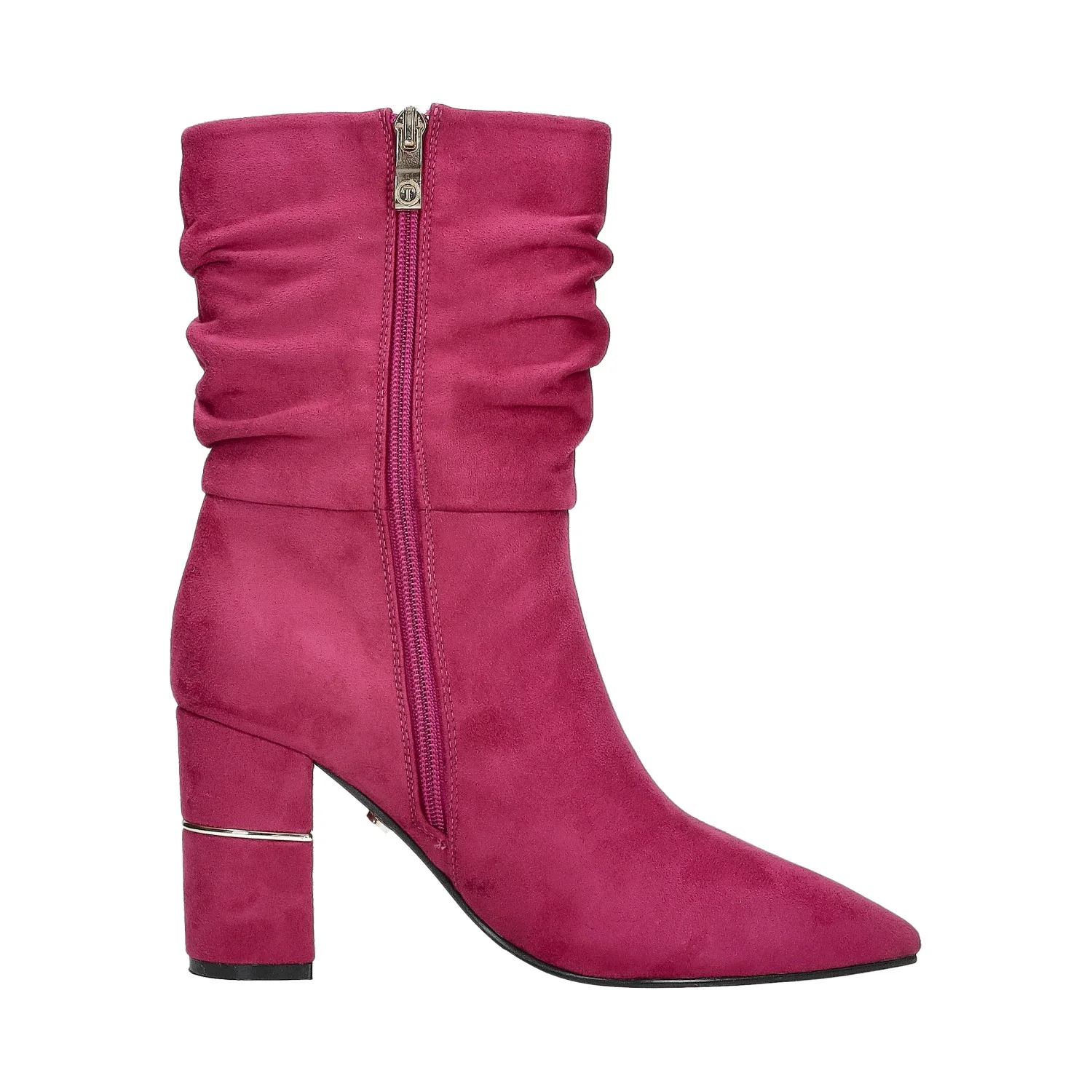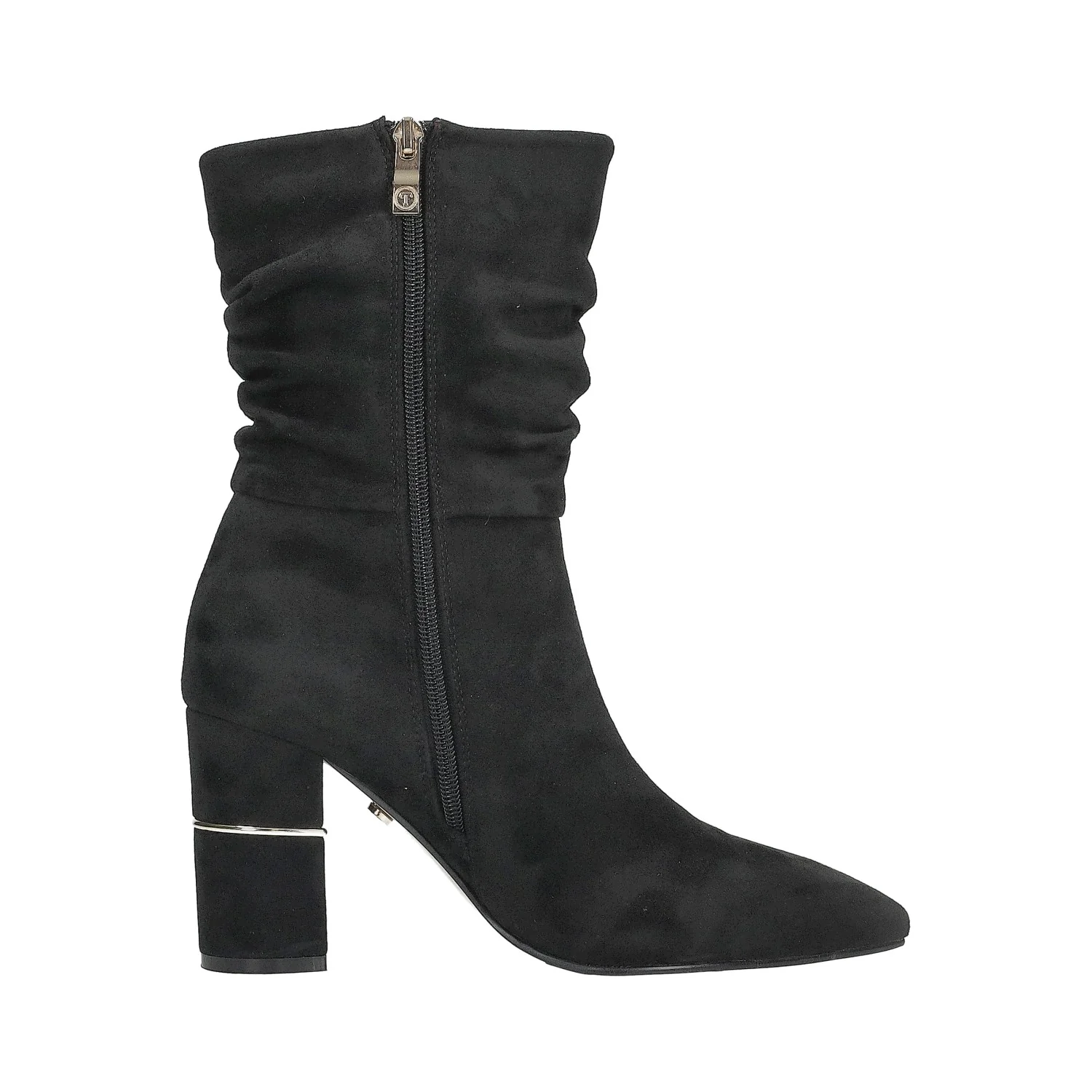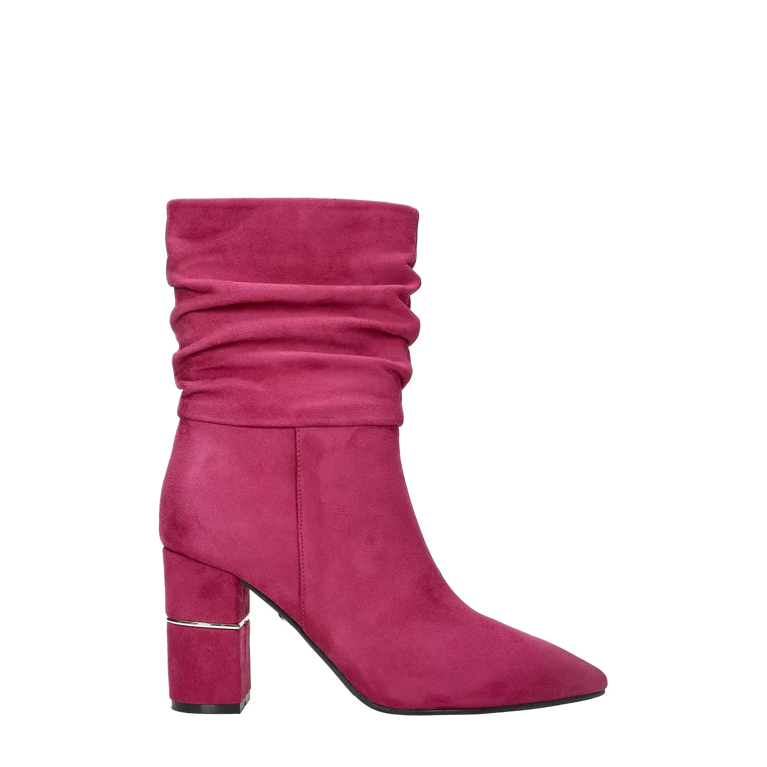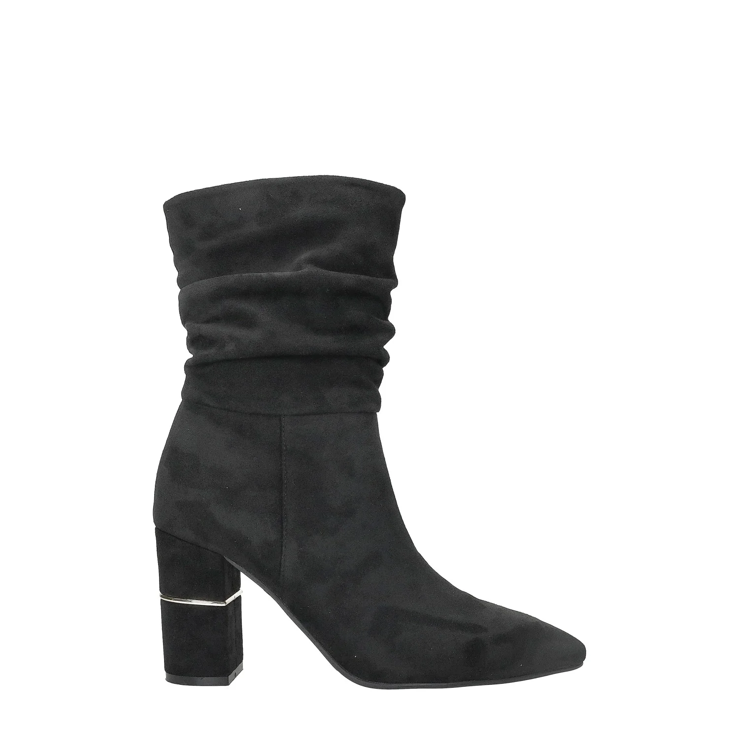 Stivaletti con struttura morbida che si raccoglie sulle caviglie. punte affusolate e tacchi doppi.Chiusura con zip laterale.Dettaglio metallizzato sul tacco.Altezza gambale: 23cmCirconferenza gambale: 32cmAltezza tacco: 9cm