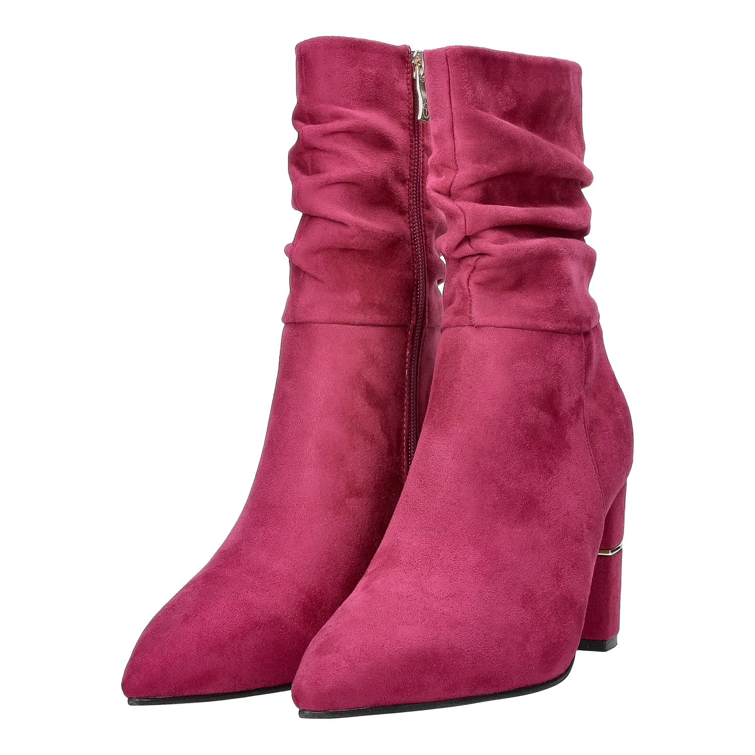 Stivaletti con struttura morbida che si raccoglie sulle caviglie. punte affusolate e tacchi doppi.